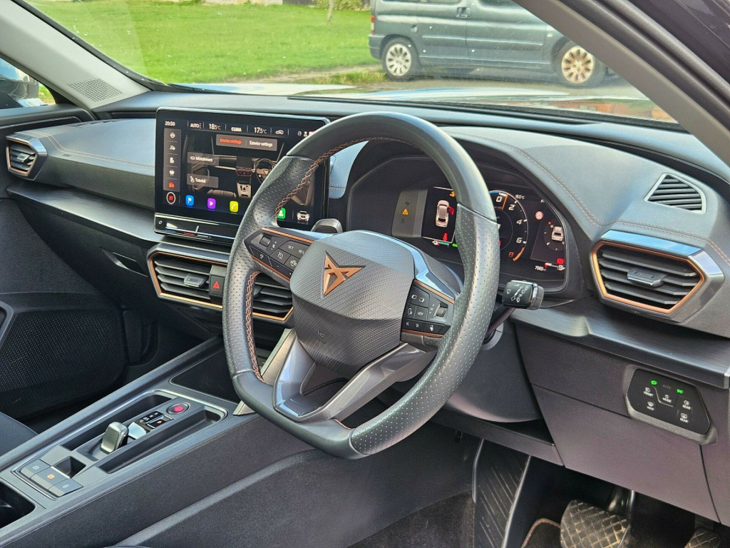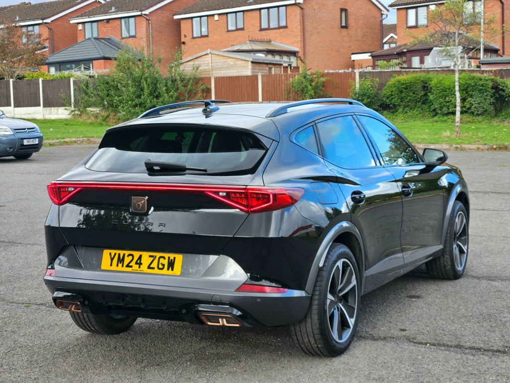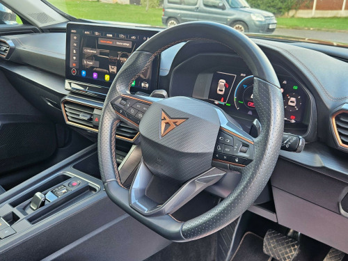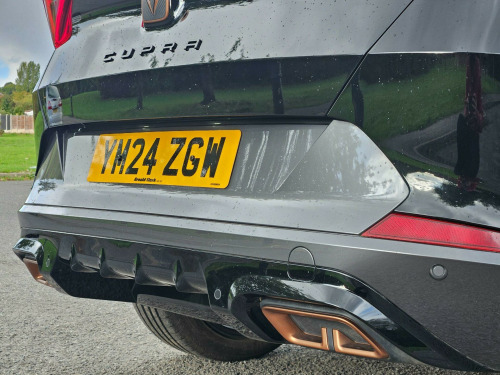 Discover this exceptional 2024 CUPRA Formentor eHybrid V1, boasting remarkably low mileage for its year at just 7968 miles. This Euro 6 compliant model features a 1.4 litre petrol plug in hybrid engine, offering an efficient and dynamic driving experience. It comes equipped with stylish 18 inch Performance Machined Sport alloy wheels in matt black and silver, alongside Kessy keyless entry and start for ultimate convenience. You'll also benefit from LED headlights for enhanced visibility and rear parking sensors to assist with manoeuvring. still under warranty from CUPRAThe Formentor eHybrid V1 also includes predictive adaptive cruise control with a speed limiter, making longer journeys more relaxed. These features collectively demonstrate how this CUPRA Formentor stands out from other vehicles in its class, providing a blend of advanced technology, comfort, and striking design. It represents a superb opportunity to own a nearly new, high specification plug in hybrid from a premium brand.. 12V Socket, 18in Alloy Wheels - Performance Machined Sport - Black and Silver, 60-40 Rear Seats with Central Armrest and Mechanical Seat Release, ABS - Anti-Lock Braking System, Airbag on Driver and Front Passenger Side with Front Passenger Airbag Deactivation, Anti-Theft Alarm, Auto Dimming Rear View Mirror, Black Sports Seats with Copper Stitching, Breakdown Kit, CUPRA Connect - Safety - Service - Remote and Online, Charging Cable - Mode 2 - 10amp, Charging Cable - Mode 3 - 16amp, Copper and Aluminium Interior Detailing, Daytime Running Lights with Automatic Headlight Control and Coming-Leaving Home Lights, Digital Cockpit and Configurable Dashboard, Door Mirrors Electrically Adjustable - Folding and Heated, Driver Alert System, Driving Profile Selection, Dynamic Headlight Range Control, Electric Window - Front, Electronic Locking Differential with Dynamic Traction Support, Electronic Parking Brake, Forward Collision Warning with Automatic Braking, Front Centre Armrest, Front Fog Lights with Cornering Function, Front Side Curtain Airbag, Front and Rear Head Restraints, Gloss Black Roof Rails and Window Surrounds, Headlining - Grey, ISOFIX, Illuminated Interior Front Door Sills, Illuminated Sunvisor with Mirror, Interior Ambient Lighting, Kessy - Keyless Entry and Start, LED Headlight, LED Taillights with Dynamic Indicator, Lane Assist, Leather Multi-function Steering Wheel - Heated with Gear Shift Paddles, Locking Wheel Bolts, Manually Adjustable Height and Lumbar Support for Front Seats, Navigation System, Power Steering, Predictive Adaptive Cruise Control with Speed Limiter, Rain Sensing Wipers, Reading Lights - 2x Front - 2x Rear, Rear Diffuser with Black Simulated Exhaust Pipes, Rear Parking Sensors, Safety and Driving Pack M, Seat Belt Reminder, Three Zone Climate Control with Control Panel in the Rear, Tinted Rear Windows, Tyre Pressure Monitoring System, USB Type C x4 - x2 Front and x2 Rear, Welcome Lights, Wireless Phone Charger, 18in Alloy Wheels - Performance Machined Sport - Matt Black and Silver, Part PVC - Part Cloth - Black with Copper Stitching.