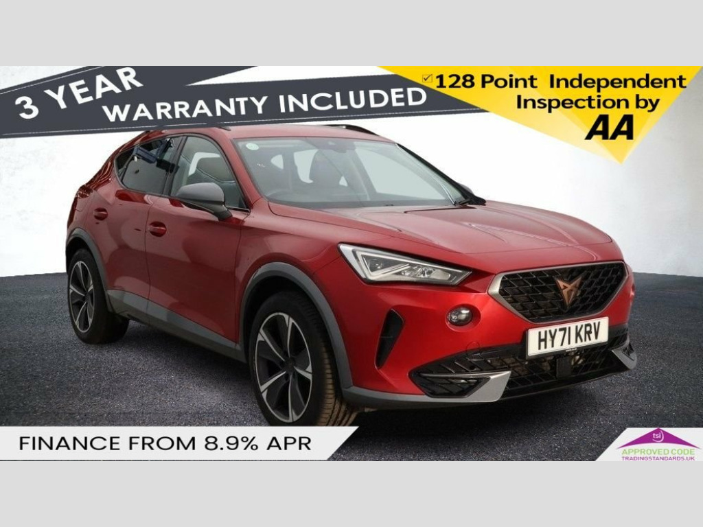 This 2021 CUPRA Formentor eHybrid V1 offers a unique ownership proposition, having been meticulously maintained by just one owner from new. This stylish SUV boasts a 1.4 litre petrol plug in hybrid engine, aligning with Euro 6 emissions standards. The Formentor V1 is equipped with a range of desirable features designed to enhance your driving experience. These include bright LED headlights for improved visibility, rear parking sensors to assist with manoeuvring, and three zone climate control with a dedicated panel for rear passengers, ensuring everyone's comfort. The leather multi function steering wheel is heated and includes gear shift paddles for a more engaging drive, while predictive adaptive cruise control with a speed limiter helps to make longer journeys more relaxed. 12V Socket in Front, Navigation System, USB Type C x4 - x2 Front and x2 Rear, Wireless Phone Charger, 18in Alloy Wheels - Performance Machined, Door Mirrors Electrically Adjustable - F, Electric Window - Front, Electronic Locking Differential with Dyn, Gloss Black Roof Rails and Window Surrou, Rear Diffuser with Black Simulated Exhau, Tinted Rear Windows, 60-40 Rear Seats with Central Armrest an, Auto Dimming Rear View Mirror, Black Sports Seats with Copper Stitching, Copper and Aluminium Interior Detailing, Front and Rear Head Restraints, Front Centre Armrest, Headlining - Grey, Illuminated Interior Front Door Sills, Illuminated Sunvisor with Mirror, Interior Ambient Lighting, Leather Multi
