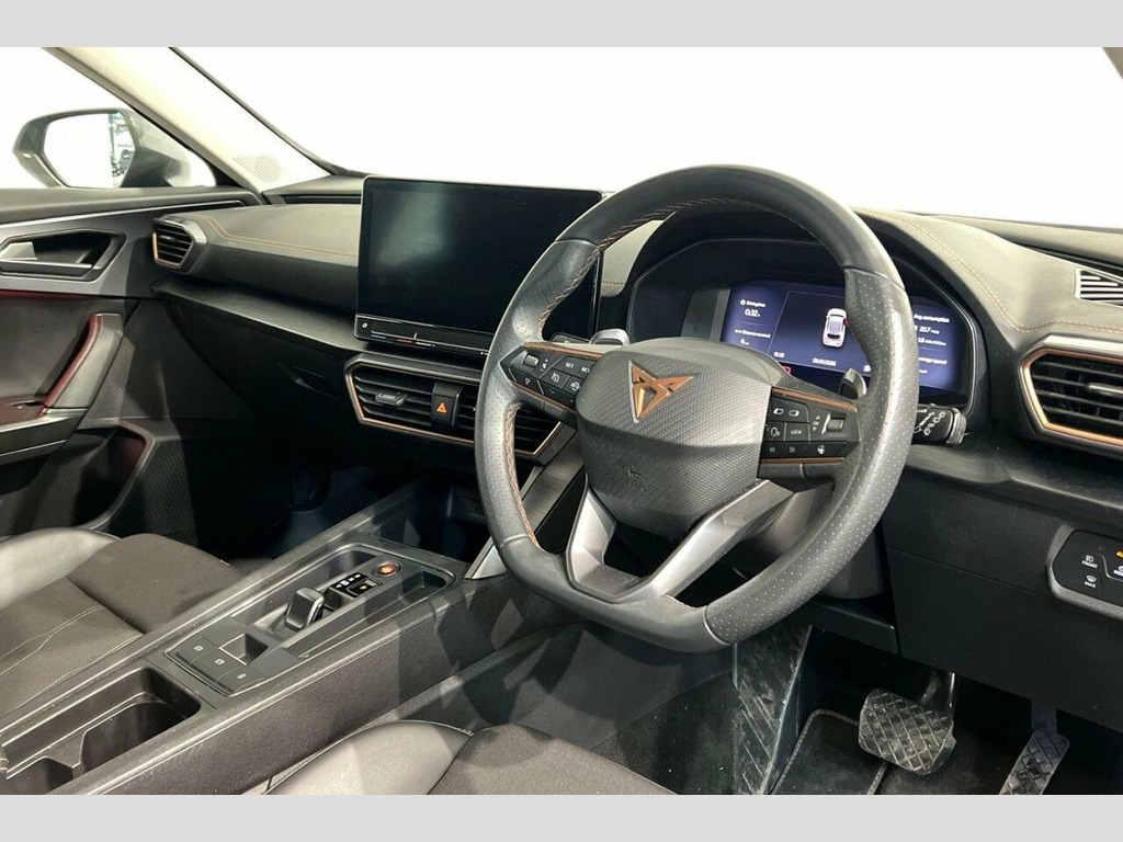 This 2024 CUPRA Formentor eHybrid V1 boasts a pristine record, having had only one owner and a clear vehicle history check. This Euro 6 compliant plug in hybrid features a 1.4 litre petrol engine and offers an MOT valid until January 2027. You will appreciate the convenience of rear parking sensors, which work alongside the parking assistance system to make manoeuvring easier. The V1 trim also includes daytime running lights with automatic headlight control, ensuring you are always visible. Inside, the Formentor eHybrid V1 offers a refined driving experience. The leather multi function steering wheel is heated for comfort and features gear shift paddles for manual control. Predictive adaptive cruise control with a speed limiter helps maintain a set speed and distance from the vehicle ahead, enhancing your journey. Furthermore, enjoy personalised comfort with three zone climate control, complete with a control panel for rear passengers. These features collectively demonstrate the advanced technology and thoughtful design present in this CUPRA Formentor. 12V Socket, 18in Alloy Wheels - Performance Machined, 60-40 Rear Seats with Central Armrest an, ABS - Anti-Lock Braking System, Airbag on Driver and Front Passenger Sid, Anti-Theft Alarm, Auto Dimming Rear View Mirror, Black Sports Seats with Copper Stitching, Breakdown Kit, Charging Cable - Mode 2 - 10amp, Charging Cable - Mode 3 - 16amp, Copper and Aluminium Interior Detailing, CUPRA Connect - Safety - Service - Remot, Daytime Running Lights with Automatic He, Digital Cockpit and Configurable Dashboa, Door Mirrors Electrically Adjustable - F, Driver Alert System, Driving Profile Selection, Dynamic Headlight Range Control, Electric Window - Front, Electronic Locking Differential with Dyn, E
