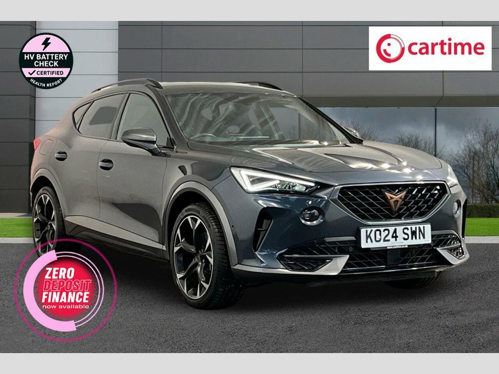This 2024 CUPRA Formentor eHybrid V2 presents a superb ownership proposition, having had only one owner since new. This stylish SUV boasts a 1.4 litre petrol plug in hybrid engine, meeting Euro 6 emission standards. Its MOT is valid until July 2027, offering excellent peace of mind. Notable features include a rear view camera with parking assistance, predictive adaptive cruise control with a speed limiter, and LED headlights with automatic headlight control and coming leaving home functionality. The Formentor eHybrid V2 is equipped with park assist, which includes front and rear sensors, further enhancing its usability. Daytime running lights ensure visibility in various conditions. These features collectively demonstrate a higher level of specification and driver convenience compared to many other vehicles in its class, making this CUPRA a well appointed and practical choice for discerning drivers. 12V Socket, 19in Alloy Wheels - Exclusive Machined S, 60-40 Rear Seats with Central Armrest an, ABS - Anti-Lock Braking System, Airbag on Driver and Front Passenger Sid, Anti-Theft Alarm, Auto Dimming Rear View Mirror, Breakdown Kit, Charging Cable - Mode 2 - 10amp, Charging Cable - Mode 3 - 16amp, Copper and Aluminium Interior Detailing, CUPRA Connect - Safety - Service - Remot, Daytime Running Lights with Automatic He, Digital Cockpit and Configurable Dashboa, Driver Alert System, Driving Profile Selection, Dynamic Headlight Range Control, Electric Window - Front, Electrically Adjustable - Folding and He, Electronic Locking Differential with Dyn, Electronic Parking Brake, Forward Collision