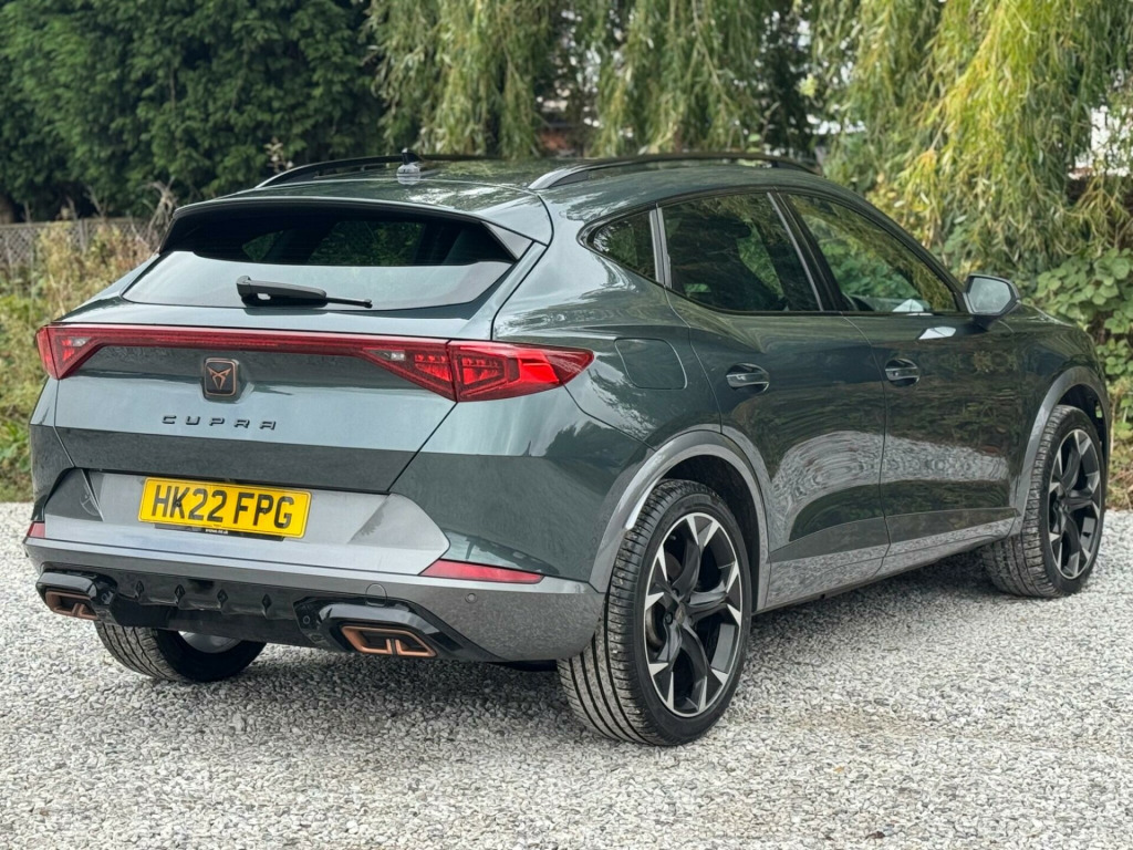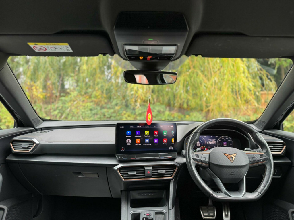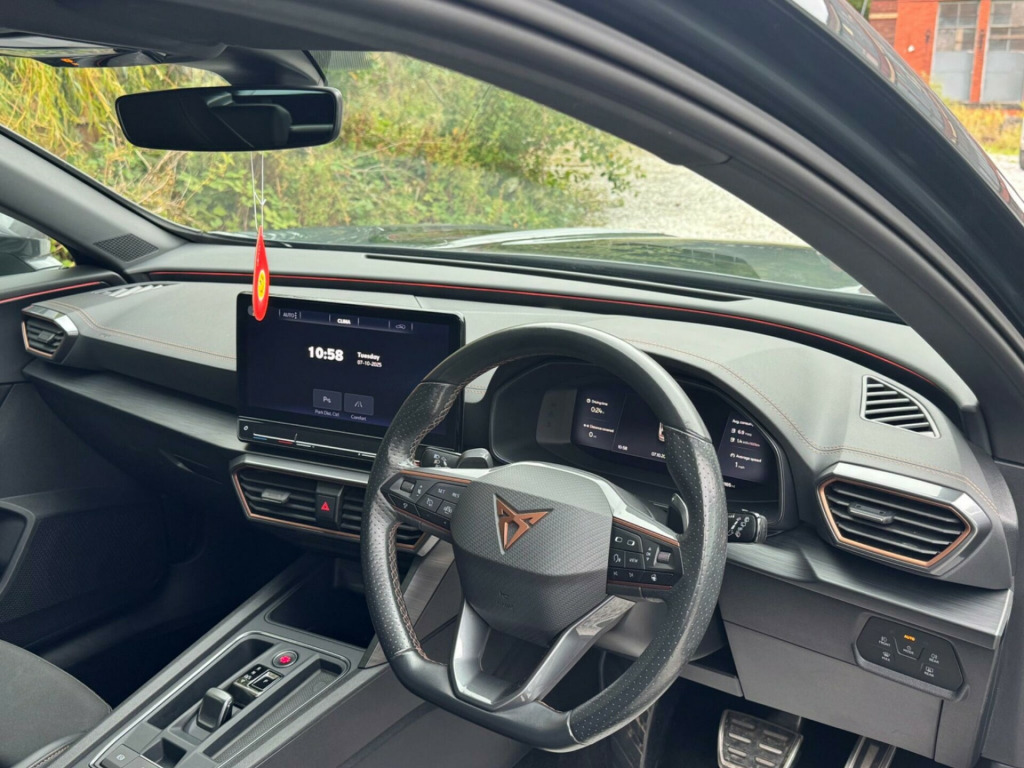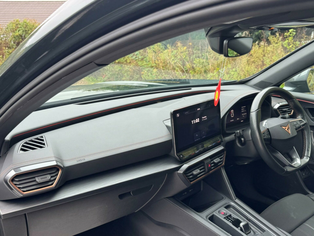 1 OWNER FROM NEW2 KEYSFULL SERVICE HISTORY - 8 SERVICES - SERVICE INTERVALS 12K, 28K, 46K, 61K, 71K, 84K, 95K, 117KEquipment:Privacy GlassRear Parking SensorsReversing cameraTraction ControlAuto Climate ControlAutomatic LightsAutomatic WipersBluetoothCruise ControlDABThis 2022 CUPRA Formentor eHybrid VZ1 is a superb example, having been owned by only one person since new. It features a 1.4 litre petrol plug in hybrid engine, meeting the Euro 6 emission class. This VZ1 trim level comes equipped with a wireless phone charger, wireless Apple CarPlay, and predictive adaptive cruise control with a speed limiter for effortless journeys. For convenience and safety, it also includes a rear view camera and three zone climate control with a control panel in the rear.The CUPRA Formentor eHybrid VZ1 offers a compelling blend of performance and technology. The inclusion of wireless Apple CarPlay and a wireless phone charger means you can connect your devices seamlessly and keep them powered up without the need for cables. Predictive adaptive cruise control enhances the driving experience by intelligently adjusting your speed, while the rear view camera aids in parking. The three zone climate control ensures all occupants can enjoy their preferred temperature, setting this vehicle apart from others in its class. in alloy wheels - exclusive machined sport - matt black and silver, 60-40 rear seats with central armrest and mechanical seat release, abs - anti-lock braking system, airbag on driver and front passenger side with front passenger airbag deactivation, anti-theft alarm, auto dimming rear view mirror, black bucket seats with copper stitching, body coloured door mirror, breakdown kit, cupra connect - safety - service - remote and online, charging cable - mode 3 - 16amp, copper and aluminium interior detailing, cupra sport pedals, dab radio, daytime running lights with automatic headlight control and coming-leaving home lights, digital cockpit and configurable dashboard, door mirrors electrically adjustable - folding and heated, driver alert system, driving profile selection, dynamic chassis control, dynamic headlight range control, electric window - front, electronic locking differential with dynamic traction support, electronic parking brake, forward collision warning with automatic braking, front centre armrest, front fog lights with cornering function, front and rear head restraints, gloss black roof rails and window surrounds, headlining - black, isofix, illuminated interior front door sills, illuminated sunvisor with mirror, interior ambient lighting, kessy - keyless entry and start, led headlight, led taillights with dynamic indicator, lane assist, leather multifunction steering wheel, locking wheel bolts, manually adjustable height and lumbar support for front seats, navigation system, park assist - including front and rear sensors, predictive adaptive cruise control with speed limiter, rain sensing wipers, reading lights - 2x front - 2x rear, rear diffuser with single exhaust pipe on each side, rear view camera, safety and driving pack l, seat belt reminder, speed sensitive power steering, sports bumpers, sports suspension with front shock absorbtion, three zone climate control with control panel in the rear, tinted rear windows, tyre pressure monitoring system, usb type c x4 - x2 front and x2 rear, virtual pedal and electric tailgate, welcome lights, wireless apple carplay, wireless phone charger