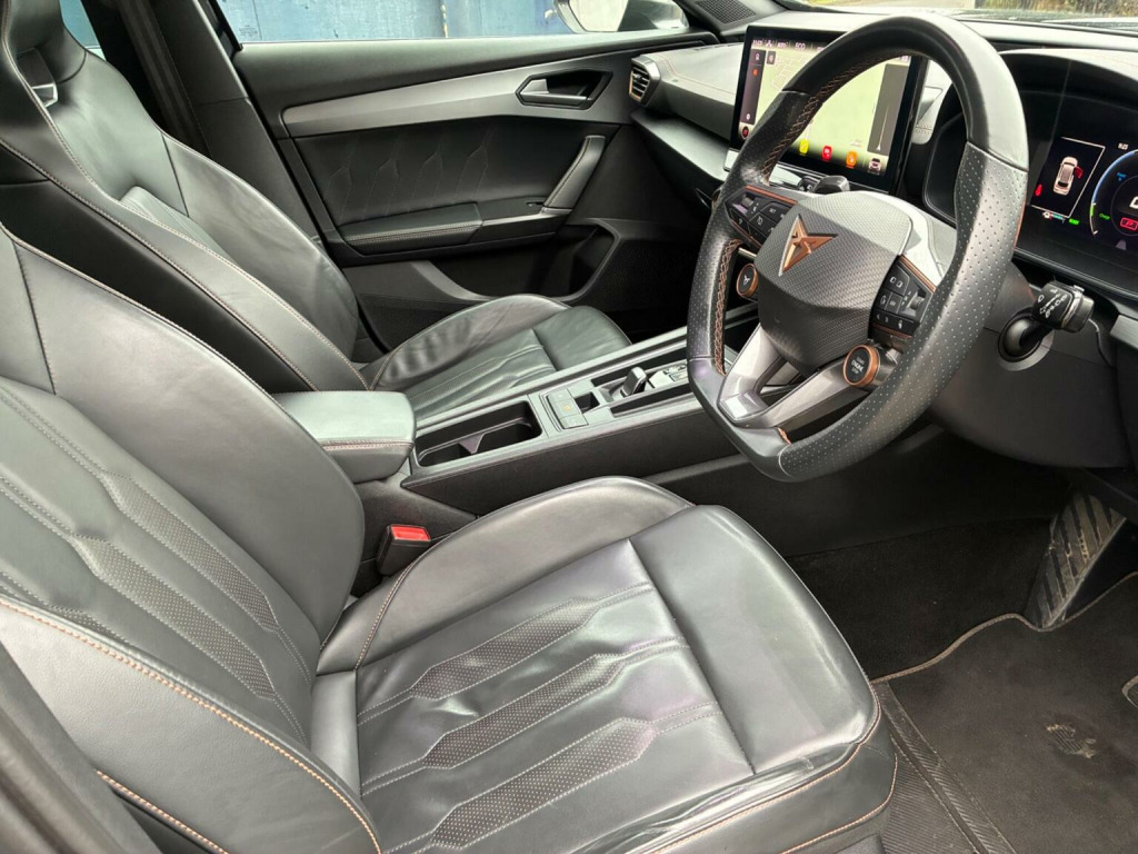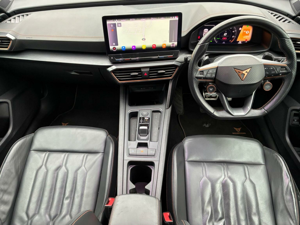 With only one owner, a Full Service History comprising 6 services and 4th Dec 2026 MOT with No Advisories, this 2022 CUPRA Formentor eHybrid VZ2 is a superb example of a modern plug-in hybrid. Featuring a 1.4L petrol engine, this Euro 6 compliant vehicle comes with a 3-month warranty for peace of mind. The VZ2 trim adds a touch of luxury and convenience, with features such as wireless Apple CarPlay, allowing seamless smartphone integration, and predictive adaptive cruise control with speed limiter, making long journeys a breeze. The heated steering wheel provides added comfort during colder months, while the Safety and Driving Pack XL, including blind spot assistance, enhances safety on the road. Automatic headlights and daytime running lights add to the vehicles modern appeal. The specification of the car includes: Black Leather with copper stitching, Sat Nav, Auto On LED Headlights, Rain Sensitive Wipers, Electric Windows, Power Folding/Heated Door Mirrors, Privacy Glass, DAB Radio with USB, Auto Hold, Lane & Front Assist, Digital Dash, ISOFIX. PLEASE NOTE This Cupra is fully prepared for sale and can be driven away the same day as viewing. Good set of tyres with fronts on 7.5mm and rears on 4&3mm. Book pack present plus 2 remote keys. Competitive finance terms available. Please visit our website www.berkshireusedcars.co.uk for PDF copies of the V5, MOT & Service History, online reservation facility, extensive photography and a walk round video along with our independently verified customer Reviews. Viewings by appointment, please call the office on 01491 826870