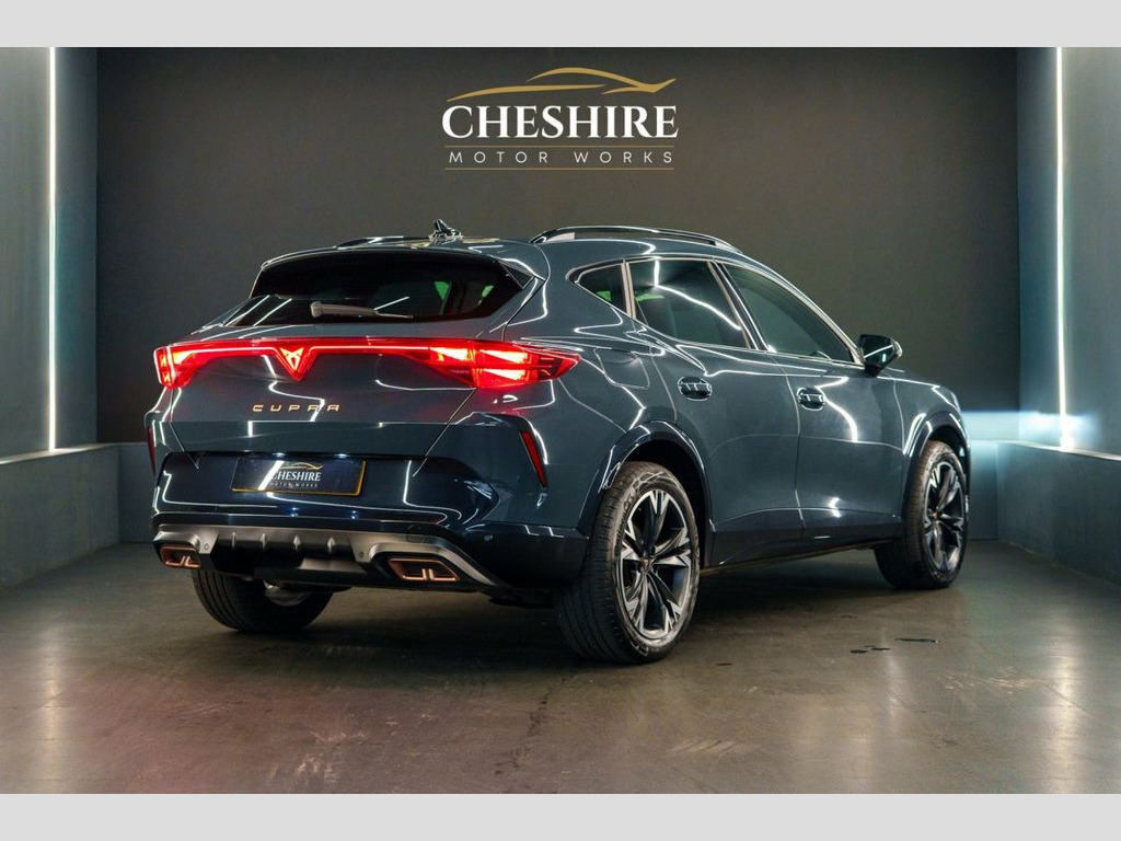 Cheshire Motor Works are delighted to present this stunning Cupra Formentor finished in the stunning Fiord Blue paint. This vehicle features 1.5 petrol-hybrid engine paired with a automatic gearbox. The Formentor meets the latest Euro 6 emission requirements. This vehicle was first registered in 2025. This Formentor is comprehensively equipped with a range of sought-after features including; * Apple CarPlay & Android Auto * Keyless Start * Heated Steering Wheel * Parking Sensors * Folding Mirrors * Lane Assist / High Beam Assist * Privacy Glass * Adaptive Cruise Control * Electric Parking Brake * Virtual Dash * 18" Diamond Cut Alloys with 4 Continental Tyres * Ambient Interior Lighting * Wireless Phone Charging & USB Type C Ports * Driving Modes (Comfort/Performance/Individual) * Auto Hold Handbrake *Additionally offering a high level of specification as standard, ensuring both luxury and practicality. For added peace of mind, At Cheshire Motor Works, we take exceptional care in our vehicle preparation standards. This Formentor has passed an extensive 156-point inspection heath check and has been fully detailed. Additionally, we will provide a complimentary platinum 6-month warranty with this vehicle, if the manufacturer's warranty is no longer valid. You have the option to extend this coverage up to 48 months for continued peace of mind. Paint protection options are also available to help maintain its pristine condition. We would be delighted for you Fiord Blue, 10.25in Digital Cockpit and Configurable, 12V Socket, 18in Alloy Wheels - Sonora - Machined - , 2 Front and 2 Rear USB Type C Sockets, 5 Year - 90000 Miles Warranty, 60-40 Rear Seats with Central Armrest an, Adaptive Cruise Control with Follow-to-S, Airbag on Driver and Front Passenger Sid, Anti-Theft Alarm, Auto Dimming Rear View Mirror, Brake Control System - ESC and Brake Boo, Breakdown Kit and Toolkit for Tyre Punct, CUPRA Connect PLUS - Safety - Service - , Central Locking System and Keyless Go, Charging Cable - Mode 2 - 10amp, Charging Cable - Mode 3 - 32amp, Copper and Aluminium Interior Detailing, Cupra Sport Pedals, Daytime Running Lights with Automatic He, Disc Brakes F