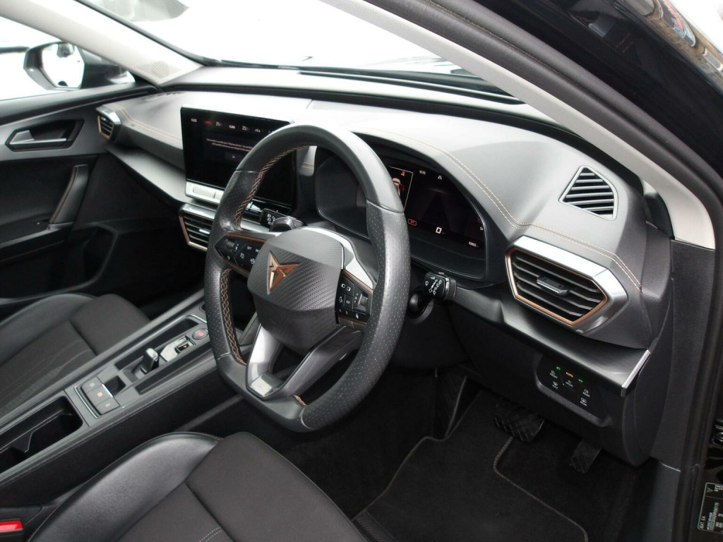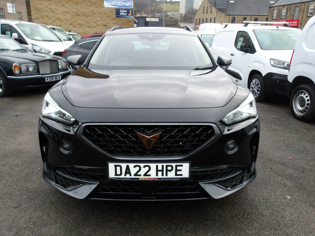 This 2022 CUPRA Formentor TSI V1 boasts exceptionally low mileage for its age, having covered just 20,000 miles, and comes with a clear vehicle history check. This Euro 6 compliant 1.5 litre petrol model is presented in V1 trim and benefits from a full service history, ensuring its excellent provenance. For your peace of mind, it includes a 6 month warranty and its MOT is valid until November 2026. Notable features include striking LED headlights, Kessy keyless entry and start, and rear parking sensors for added convenience. Experience effortless driving with the Formentors Predictive Adaptive Cruise Control with Speed Limiter, and keep your devices powered up with the integrated wireless phone charger. These features, combined with its impressive 0-62mph acceleration time of just 8.9 seconds, demonstrate how this CUPRA Formentor offers a superior driving experience compared to other vehicles in its class.
