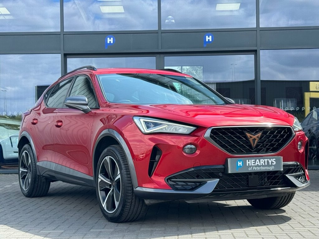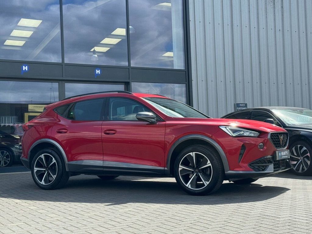 DRIVE HOME TODAY IN THIS SUPER FUNKY 2022 CUPRA FORMENTOR 1.5 TSI V1 5 DOOR DSG EURO 6 150 BHP FINISHED IN DESIRE RED AND TRIMMED WITH BLACK PART LEATHER SEATING. FULL CUPRA MAIN DEALER SERVICE HISTORY INC 3XSERVICES AND JUST SERVICED @ 56,007 MILES ON THE 25/03/2025 A SUPERB COMBINATION OF STYLE, LUXURY AND ECONOMY. WONDERFUL SPEC INC 18"ALLOY WHEELS, FRONT & REAR SENSORS, WIRE LESS CHARGER, VIRTUAL DASH, CAR PLAY, HEATED STEERING WHEEL, PARK ASSIST, CLIMATE & CRUISE CONTROL, ELECTRIC FOLDING MIRRORS, SAT-NAV. Part PVC - Part Cloth - Black with Coppe, Desire Red, 12V Socket, 18in Alloy Wheels - Performance Machined, 60-40 Rear Seats with Central Armrest an, ABS - Anti-Lock Braking System, Airbag on Driver and Front Passenger Sid, Anti-Theft Alarm, Auto Dimming Rear View Mirror, Black Sports Seats with Copper Stitching, Breakdown Kit, Copper and Aluminium Interior Detailing, Cupra Connect - Safety - Service - Remot, Daytime Running Lights with Automatic He, Digital Cockpit and Configurable Dashboa, Door Mirrors Electrically Adjustable - F, Driver Alert System, Driving Profile Selection, Dynamic Headlight Range Control, Electric Window - Front, Electronic Locking Differential with Dyn, Electronic Pa