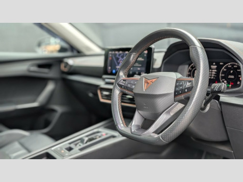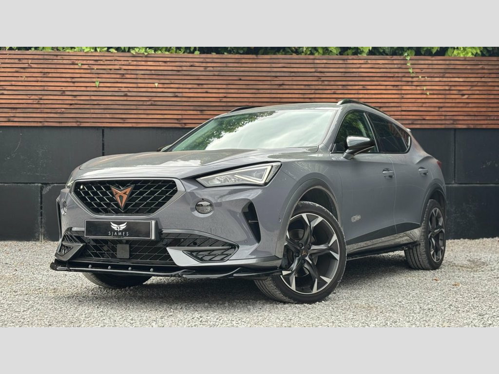 GRAPHEN GREY WITH BLACK LEATHER AND ORANGE STITCHING ELECTRIC SEATS WITH DRIVER MEMORY-EXTRAS INCLUDE 19 INCH ALLOYS-WIRELESS PHONE CHARGER-REAR VIEW CAMERA-LANE ASSIST- LED HEADLIGHTS-DIGITAIL DASHBOARD-NAVIGATION SYSTEM WITH 12" TOUCHSCREEN-WIRELESS APPLE PLAY. BODY STYLING KIT INCLUDING FRONT SPLITTER-SIDE SKIRTS AND REAR DIFFUSER FINISHED IN A BLACK GLOSS FINISH. The styling parts are subject to a fee of £249. This will also warrant the fitted parts for 12 months. - Optional 3 year manufacturer equivalent warranty available to purchase. Nappa Leather - Black with Copper Stitch, Graphene Grey, 12V Socket in Front, 19in Alloy Wheels - Exclusive Machined S, 60-40 Rear Seats with Central Armrest an, ABS - Anti-Lock Braking System, Airbag on Driver and Front Passenger Sid, Anti-Theft Alarm, Auto Dimming Rear View Mirror, Breakdown Kit, CUPRA Connect - Safety - Service - Remot, Copper and Aluminium Interior Detailing, Daytime Running Lights with Automatic He, Digital Cockpit and Configurable Dashboa, Door Mirrors Electrically Adjustable - F, Driver Alert System, Driving Profile Selection, Dynamic Headlight Range Control, Electric Window - Front, Electrically Adjustable - Folding and He, Electronic Locking Differential with Dyn, E