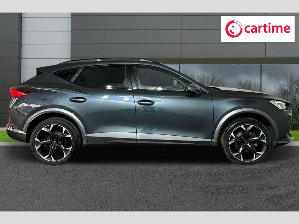 This 2022 CUPRA Formentor TSI V2 offers excellent provenance, having had only one owner and boasting an MOT valid until April 2026, with a clear vehicle history check. This Euro 6 compliant 1.5 litre petrol model comes in the V2 trim and features Kessy keyless entry and start, LED headlights for enhanced visibility, and a heated leather multi-function steering wheel complete with gear shift paddles for an engaging driving experience. The Formentor TSI V2 also includes a rear view camera and park assist with both front and rear sensors, making manoeuvring simpler. Its performance is highlighted by a swift 0-60mph acceleration time of just 8.9 seconds, demonstrating its capability compared to other vehicles in its class. This combination of advanced features and strong performance makes the CUPRA Formentor a compelling choice. 12V Socket in Front, 19in Alloy Wheels - Exclusive Machined S, 60-40 Rear Seats with Central Armrest an, ABS - Anti-Lock Braking System, Airbag on Driver and Front Passenger Sid, Anti-Theft Alarm, Auto Dimming Rear View Mirror, Breakdown Kit, Copper and Aluminium Interior Detailing, CUPRA Connect - Safety - Service - Remot, Daytime Running Lights with Automatic He, Digital Cockpit and Configurable Dashboa, Door Mirrors Electrically Adjustable - F, Driver Alert System, Driving Profile Selection, Dynamic Headlight Range Control, Electric Window - Front, Electrically Adjustable - Folding and He, Electronic Locking Differential with Dyn, Electronic Parking Brake, Forward Collision Warning with A