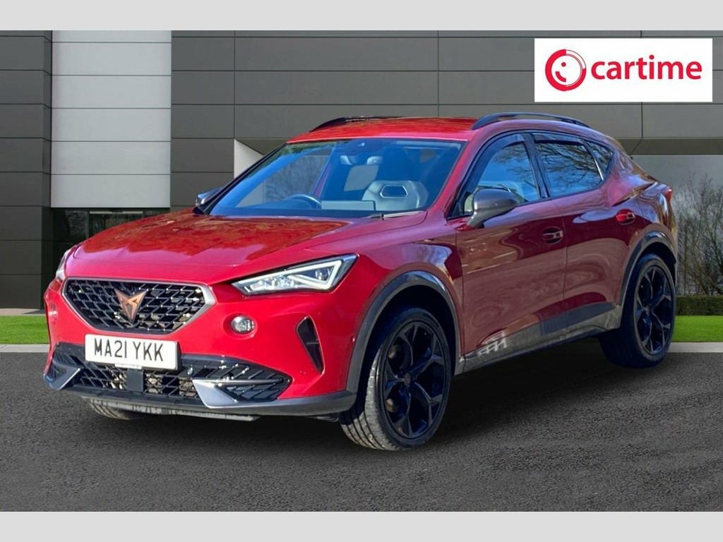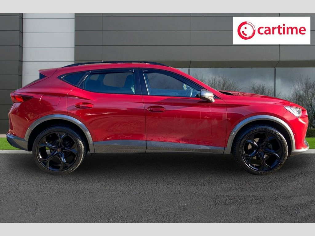 This 2021 CUPRA Formentor TSI V2 offers excellent peace of mind with its MOT valid until September 2026. This stylish SUV is equipped with a 1.5 litre Euro 6 compliant petrol engine, making it a practical choice for everyday driving. The V2 trim level ensures a comfortable and convenient experience, featuring Kessy keyless entry and start, allowing you to unlock and ignite the engine without needing to find your keys. You can also enjoy your favourite music and navigation seamlessly with wireless Apple CarPlay, while the LED headlights and automatic headlight control provide excellent visibility in all conditions. The Formentor TSI V2 boasts a responsive performance, accelerating from 0 to 60mph in just 8.9 seconds, demonstrating its capability. This acceleration figure indicates a more engaging driving experience compared to many other vehicles in its class. Furthermore, the three zone climate control, complete with a rear control panel, ensures that all occupants can set their preferred temperature, enhancing comfort for everyone on board. The inclusion of daytime running lights with automatic headlight control and coming leaving home lights adds to both the safety and the sophisticated presence of this CUPRA. 19in Alloy Wheels - Exclusive Machined S, 60-40 Rear Seats with Central Armrest an, ABS - Anti-Lock Braking System, Airbag on Driver and Front Passenger Sid, Anti-Theft Alarm, Auto Dimming Rear View Mirror, Body Coloured Door Mirror, Breakdown Kit, Copper and Aluminium Interior Detailing, CUPRA Connect - Safety - Service - Remot, DAB Radio, Daytime Running Lights with Automatic He, Desire Red, Digital Cockpit and Configurable Dashboa, Door Mirrors Electrically Adjustable - F, Driver Alert System, Driving Profile Selection, Dynamic Headlight Range Control, Electric Window - Front, Electronic Locking Differential with Dyn, Electronic Parking Brake, Forward Collision Warning with Automatic, Fro