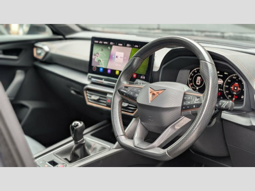 MAGNETIC TECH GREYWITH BLACK LEATHER AND ORANGE STITCHING ELECTRIC SEATS WITH DRIVER MEMORY-EXTRAS INCLUDE 19 INCH ALLOYS-WIRELESS PHONE CHARGER-REAR VIEW CAMERA-LANE ASSIST- LED HEADLIGHTS-DIGITAIL DASHBOARD-NAVIGATION SYSTEM WITH 12" TOUCHSCREEN-WIRELESS APPLE PLAY. HEATED STEERING WHEEL- BODY STYLING KIT INCLUDING FRONT SPLITTER-SIDE SKIRTS AND REAR DIFFUSER FINISHED IN A BLACK GLOSS FINISH. The styling parts are subject to a fee of £249. This will also warrant the fitted parts for 12 months. - Optional 3 year manufacturer equivalent warranty available to purchase. Nappa Leather - Black with Copper Stitch, Magnetic Grey, 12V Socket in Front, 19in Alloy Wheels - Exclusive Machined S, 60-40 Rear Seats with Central Armrest an, ABS - Anti-Lock Braking System, Airbag on Driver and Front Passenger Sid, Anti-Theft Alarm, Auto Dimming Rear View Mirror, Breakdown Kit, CUPRA Connect - Safety - Service - Remot, Copper and Aluminium Interior Detailing, Daytime Running Lights with Automatic He, Digital Cockpit and Configurable Dashboa, Door Mirrors Electrically Adjustable - F, Driver Alert System, Driving Profile Selection, Dynamic Headlight Range Control, Electric Window - Front, Electrically Adjustable - Folding and He, Electronic Locking Differential with Dyn, E