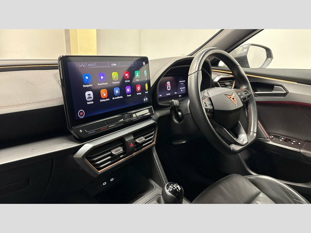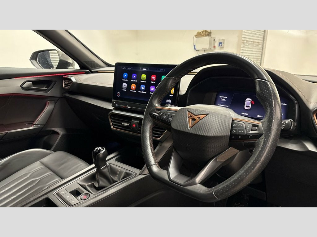 Withadditional transport protection measures, Headlining for Panoramic Roof (V1 & V2only), Rear view camera, Parking Steering Assistant, Smart Wraparound interior lighting, 19-inch alloy wheels "Exclusive" 38/3,machined, Matte Sports Black, Black Leather inc winter pack 12V Socket, 19in Alloy Wheels - Exclusive Machined S, 60-40 Rear Seats with Central Armrest an, ABS - Anti-Lock Braking System, Airbag on Driver and Front Passenger Sid, Anti-Theft Alarm, Auto Dimming Rear View Mirror, Breakdown Kit, CUPRA Connect - Safety - Service - Remot, Copper and Aluminium Interior Detailing, Daytime Running Lights with Automatic He, Digital Cockpit and Configurable Dashboa, Driver Alert System, Driving Profile Selection, Dynamic Headlight Range Control, Electric Window - Front, Electrically Adjustable - Folding and He, Electronic Locking Differential with Dyn, Electronic Parking Brake, Forward Collision Warning with Automatic, Front Centre Armrest, Front Fog Lights wi
