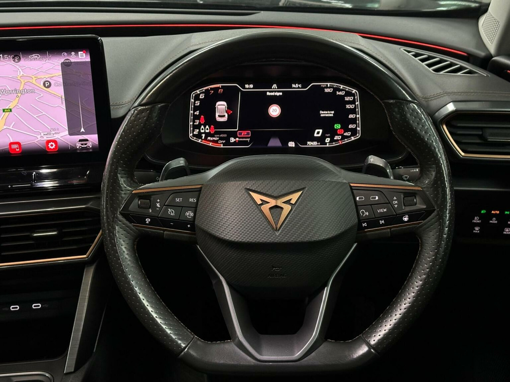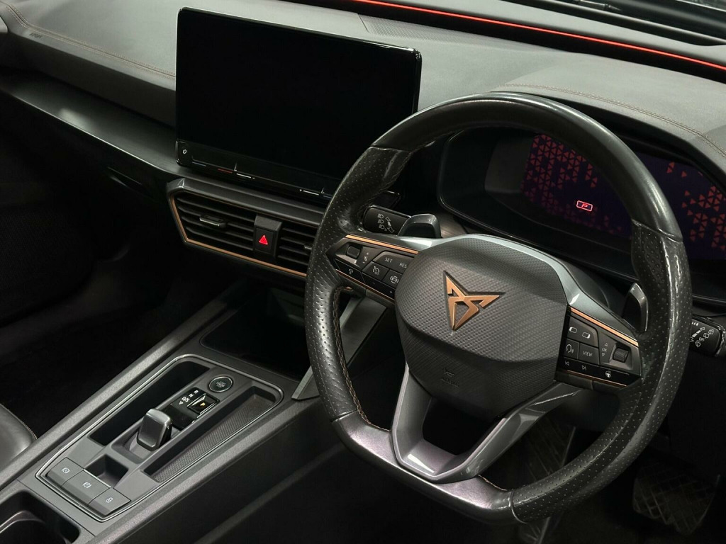 This 2021 CUPRA Formentor TSI V2 offers a compelling blend of performance and advanced technology. As a Euro 6 compliant model, this four wheel drive estate features a potent 2.0 litre petrol engine, delivering an impressive 0-62mph acceleration in just 7.1 seconds. The V2 trim enhances the driving experience with a heated steering wheel for those colder mornings, and the Park Assist system, complete with front and rear sensors and a rear view camera, makes manoeuvring in tight spaces effortless. Further enhancing its appeal, this CUPRA Formentor is equipped with Predictive Adaptive Cruise Control, which intelligently adjusts your speed to maintain a safe distance from the vehicle ahead, alongside a useful speed limiter. Connectivity is seamless with wireless Apple CarPlay, allowing you to easily access your favourite apps and music on the go. These features collectively demonstrate how this Formentor provides a superior and more convenient driving experience compared to other vehicles in its class.