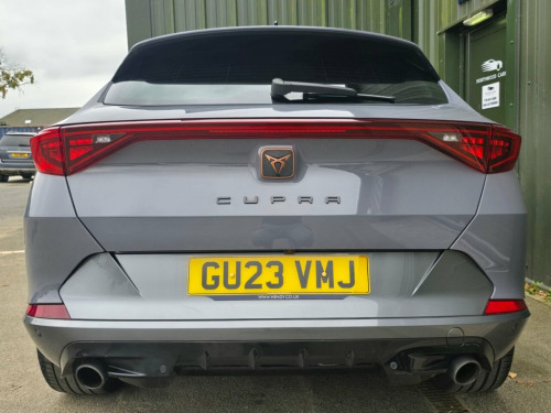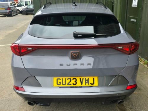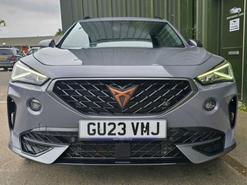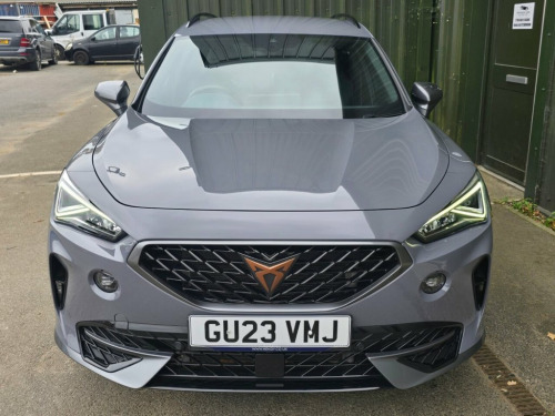We are pleased to offer this outstanding CUPRA Formentor 2.0 TSI VZ2, presented in excellent condition and offering a superb balance of performance, practicality and style. Powered by a 2.0-litre turbocharged petrol engine producing 245 PS, and paired with a DSG automatic gearbox, this Euro 6-compliant SUV delivers an exhilarating drive while maintaining efficiency and everyday usability. This vehicle comes with a full service history, two keys, and has had one owner from new, making it a particularly well-cared-for and desirable example. The VZ2 trim level includes an impressive specification as standard, with key features such as: Heated front sports seats with premium upholstery for added comfort Digital Cockpit and a large touchscreen infotainment system with satellite navigation Adaptive Cruise Control and Front Assist for safer driving Dynamic Chassis Control for a tailored driving experience Full LED headlights and rear lights with dynamic indicators 19-inch alloy wheels and sporty exterior styling Dual-zone climate control and wireless phone charging Rear parking sensors and a reversing camera for easier manoeuvring Keyless entry and start for convenience The CUPRA Formentor offers a striking design, advanced technology, and an engaging drive – all in a practical SUV package. This particular example is ready to be enjoyed and represents a great opportunity for any driver seeking performance with style and peace of mind. For more details or to arrange a view Nappa Leather - Petrol Blue with Copper , 12V Socket, 19in Alloy Wheels - Exclusive Machined S, 60-40 Rear Seats with Central Armrest an, ABS - Anti-Lock Braking System, Airbag on Driver and Front Passenger Sid, Anti-Theft Alarm, Auto Dimming Rear View Mirror, CUPRA Connect - Safety - Service - Remot, Copper and Aluminium Interior Detailing, Cupra Sport Pedals, Daytime Running Lights with Automatic He, Digital Cockpit and Configurable Dashboa, Driver Alert System, Dynamic Chassis Control, Dynamic Headlight Range Control, Electric Window - Front, Electrically Adjustable - Folding and He, Electronic Locking Differential with Dyn, Electronic Parking Brake, Forward Collision Warning with Automat