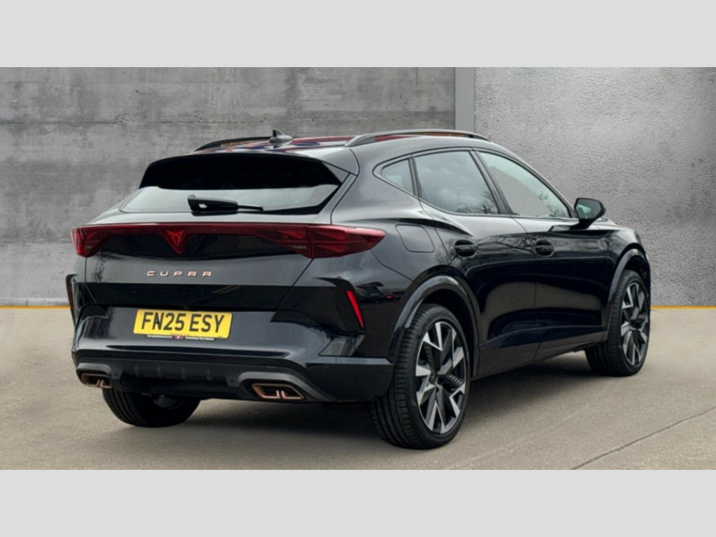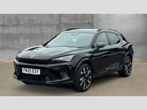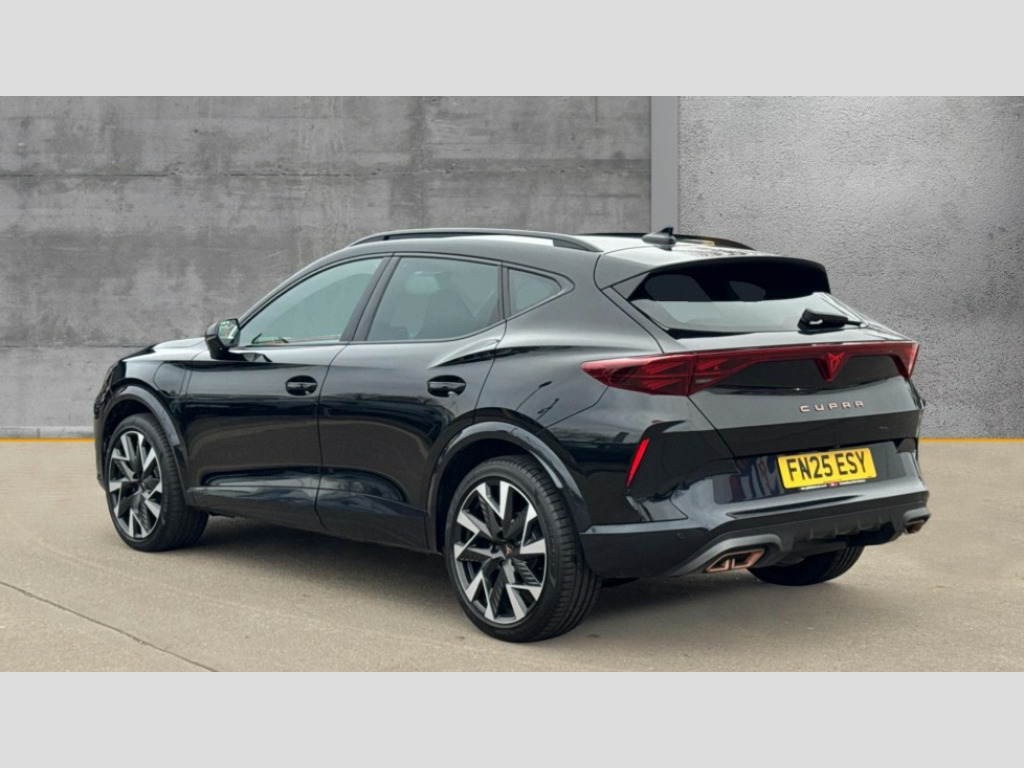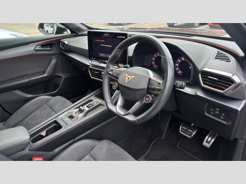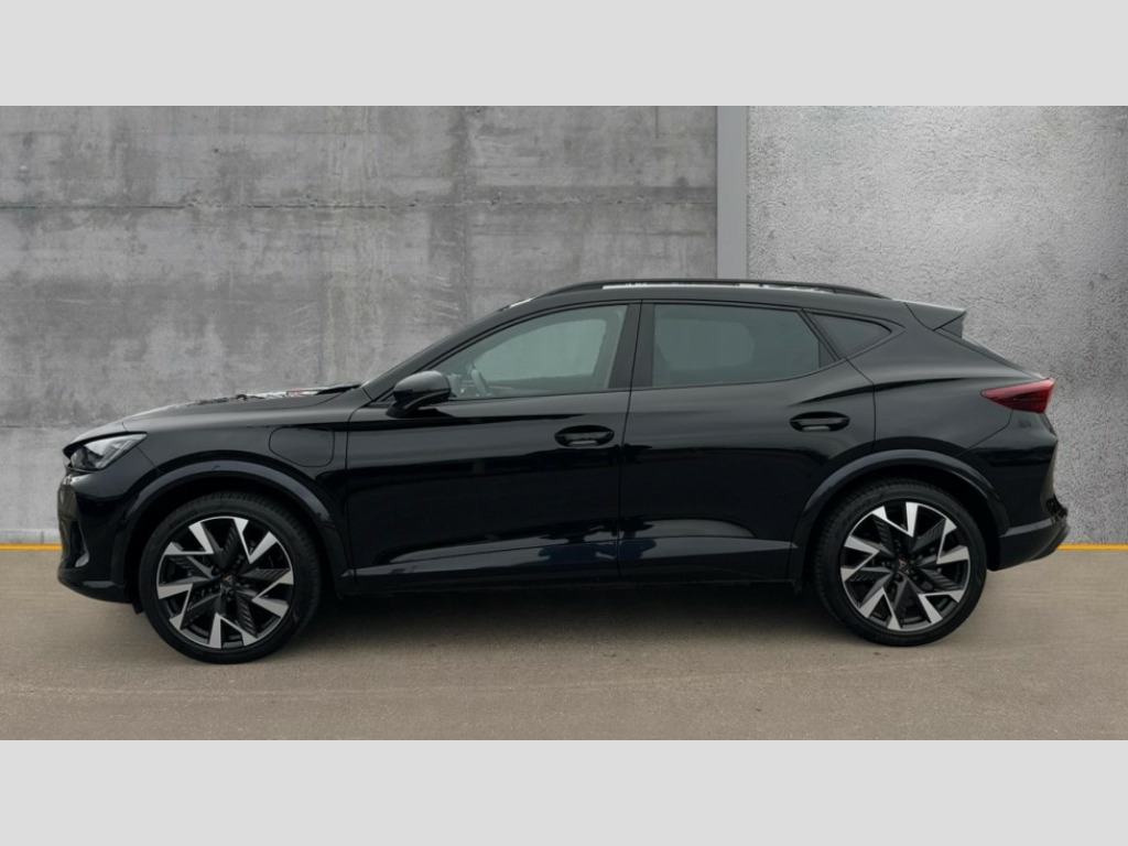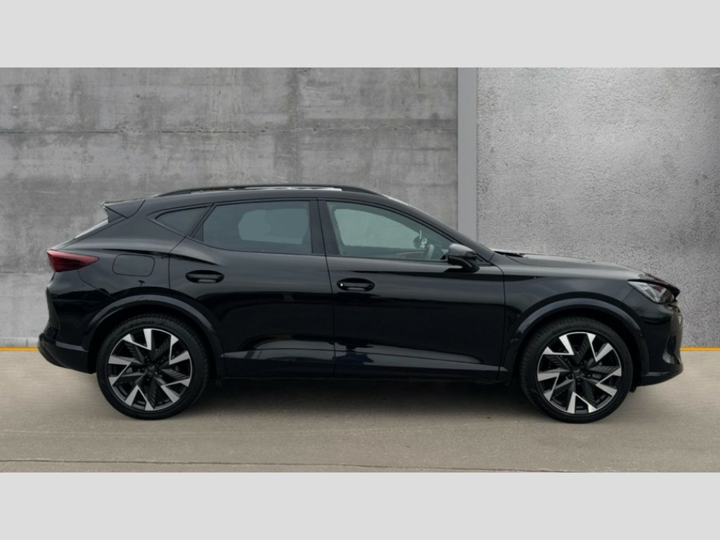 Cupra Formentor 1.5 eHybrid 204 V2 5dr DSG 10.25" digital cockpit and configurable dashboard, Adaptive cruise control with follow-to-stop and speed limiter, Advanced driver alert system, Driving profile selection, Dynamic road sign display, Emergency steering support with turn assist, Forward collision warning with automatic braking, Front and rear parking sensors, Full link phone integration, Lane assist, Progressive steering, Rear view camera, RPM, trip computer, outside temp gauge, instrument light brightness, low fuel warning light, lights on reminder, gearshift indicator, Service interval indicator, Start/stop system with regenerative braking, Virtual pedal and electric tailgate, Voice control system, Wired Android Auto, Wireless apple carplay, Wireless phone charger, 10 amp mode 2 charging cable, 32 amp mode 3 charging cable, CUPRA sport suspension, Electronic locking differential and dynamic traction support, 2 front and 2 rear USB type C sockets, Media system with navigation, 12.9" touchscreen display, voice control, DAB, steering wheel mounted controls, Auto dimming rear view mirror, Body colour door handles, Body coloured bumpers, Dark grey wing mirror, Daytime running light with automatic headlight control and coming home feature, Door panel ambient lighting, Dynamic headlight range control, Electric front/rear windows, Electrically adjustable heated and folding door mirrors with memory function, Gloss black roof rails and window surrounds, High beam assist, LED 3rd brake light, LED front fog lamps with cornering function, LED Headlights, LED Taillights with dynamic indicator, Rain sensing wipers, Rear diffuser with copper simulated exhaust pipes, Rear fog lights, Rear side wing doors, Rear wash/wipe, Tinted rear windows, Welcome lights (within exterior mirror housing), 12V socket, 2 front and 2 rear reading lights, 3 seat bench in 2nd row, 60/40 split rear bench seat with armrest and mechanical seat release, Black headlining, Black interior roof lining, Cupra sports pedals, Dust/pollen filter, Electrically adjustable driver's seat with memory and lumbar support, Front and rear head restraints, Front centre armrest, Heated front seats, Heated supersports multifunction leather steering wheel with satellite buttons and gear shift paddles, Height/reach adjust steering wheel, Illuminated aluminium doorsteps, Illuminated interior front door sills, Illuminated sunvisor with mirror, Isofix, Leather dashboard, door insert and side trim panel, LED smart wraparound lighting, PVC/Dinamica microfiber upholstery + bucket seats, Satellite steering wheel, Single front passenger seat, Storage pockets on rear of front seats, Three zone climate control with control panel in rear, 3 point seatbelts on all rear seats, ABS, Brake control system - ESC and brake booster, Child proof door locks, Driver and front passenger airbags with front passenger airbag de-activation, Electronic parking brake, Front and rear disc brakes, Front side curtain airbags, Hill hold control, Public e-call, Seat belt reminder for front and rear seats, Tyre pressure monitoring system, Anti theft alarm system, KESSY Advanced - Keyless start, keyless entry with SAFELOCK, Locking wheel bolts, Copper and aluminium interior detailing, 19" Sandstorm machined sport black and silver alloy wheels, Breakdown and tool kit