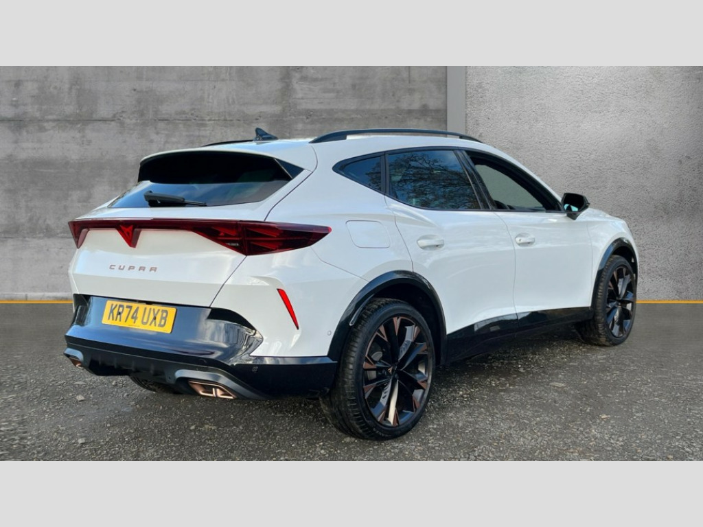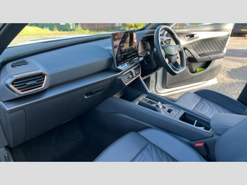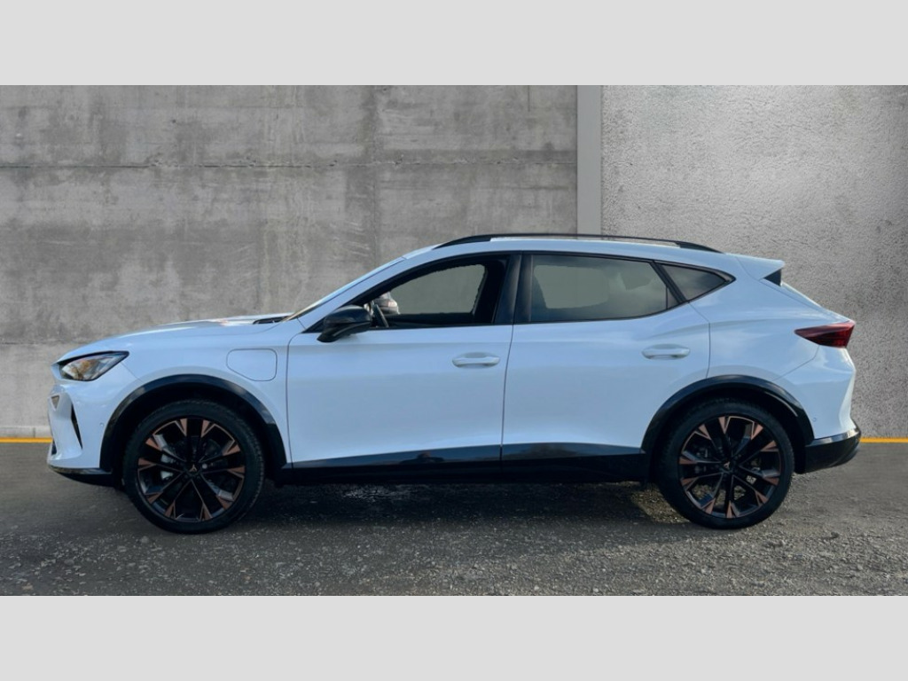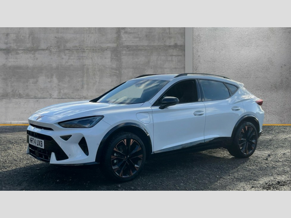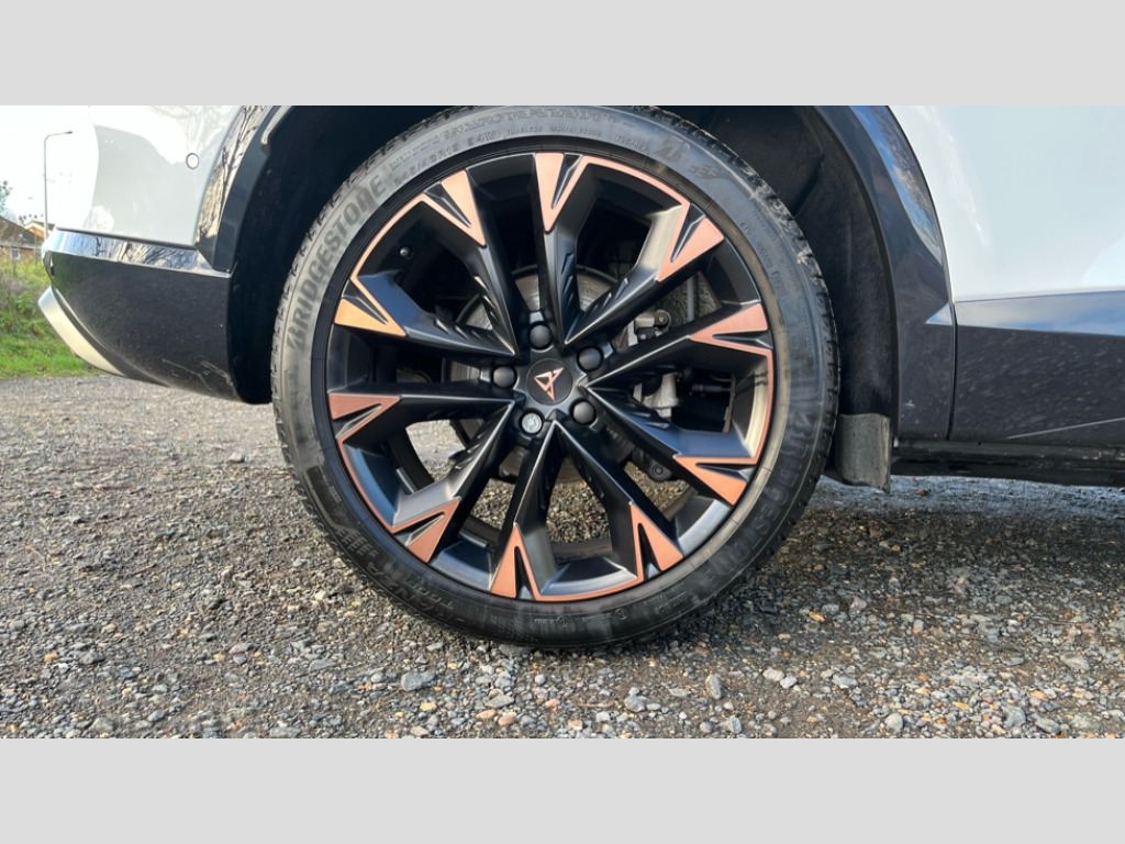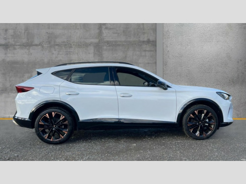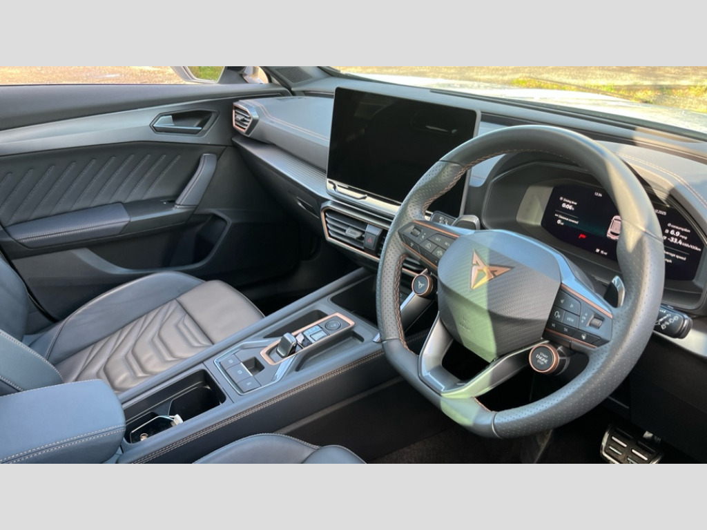 Cupra Formentor 1.5 eHybrid 204 V3 5dr DSG 10.25" digital cockpit and configurable dashboard, Adaptive cruise control with follow-to-stop and speed limiter, Advanced driver alert system, Advanced lane assist with semi-automatic vehicle control in a medical emergency and traffic jam assist, Driving profile selection, Dynamic road sign display, Emergency steering support with turn assist, Forward collision warning with automatic braking, Full link phone integration, Intelligent park assist, Progressive steering, RPM, trip computer, outside temp gauge, instrument light brightness, low fuel warning light, lights on reminder, gearshift indicator, Service interval indicator, Side and exit assist, Start/stop system with regenerative braking, Top view camera, Virtual pedal and electric tailgate, Voice control system, Wired Android Auto, Wireless apple carplay, Wireless phone charger, 10 amp mode 2 charging cable, 32 amp mode 3 charging cable, CUPRA sport suspension, Electronic locking differential and dynamic traction support, 2 front and 2 rear USB type C sockets, Media system with navigation, 12.9" touchscreen display, voice control, DAB, steering wheel mounted controls, Auto dimming rear view mirror, Body colour door handles, Body coloured bumpers, Dark grey wing mirror, Daytime running light with automatic headlight control and coming home feature, Door panel ambient lighting, Dynamic headlight range control, Electric front/rear windows, Electrically adjustable heated and folding door mirrors with memory function, Gloss black roof rails and window surrounds, High beam assist, LED 3rd brake light, LED front fog lamps with cornering function, LED Headlights, LED Taillights with dynamic indicator, Rain sensing wipers, Rear diffuser with copper simulated exhaust pipes, Rear fog lights, Rear side wing doors, Rear wash/wipe, Tinted rear windows, Welcome lights (within exterior mirror housing), 12V socket, 2 front and 2 rear reading lights, 3 seat bench in 2nd row, 60/40 split rear bench seat with armrest and mechanical seat release, Black headlining, Black interior roof lining, Cupra sports pedals, Dust/pollen filter, Electrically adjustable front seats with lumbar support and memory function, Front and rear head restraints, Front centre armrest, Heated front seats, Heated supersports multifunction leather steering wheel with satellite buttons and gear shift paddles, Height/reach adjust steering wheel, Illuminated aluminium doorsteps, Illuminated interior front door sills, Illuminated sunvisor with mirror, Isofix, Leather dashboard, door insert and side trim panel, LED smart wraparound lighting, PVC/Leather upholstery, Satellite steering wheel, Single front passenger seat, Storage pockets on rear of front seats, Three zone climate control with control panel in rear, 3 point seatbelts on all rear seats, ABS, Brake control system - ESC and brake booster, Child proof door locks, Driver and front passenger airbags with front passenger airbag de-activation, Electronic parking brake, Front and rear disc brakes, Front side curtain airbags, Hill hold control, Pre-crash front and rear seat belt tensioner, window closure and hazard lights, Public e-call, Seat belt reminder for front and rear seats, Tyre pressure monitoring system, Anti theft alarm system, KESSY Advanced - Keyless start, keyless entry with SAFELOCK, Locking wheel bolts, Copper and aluminium interior detailing, Breakdown and tool kit