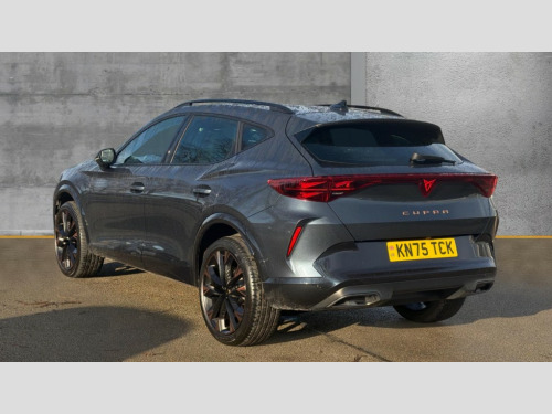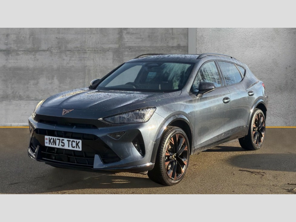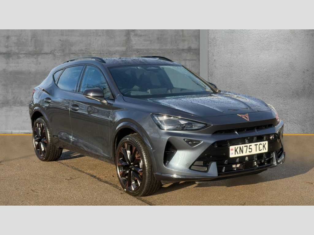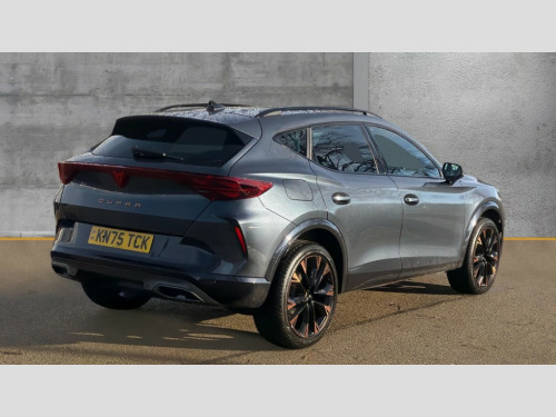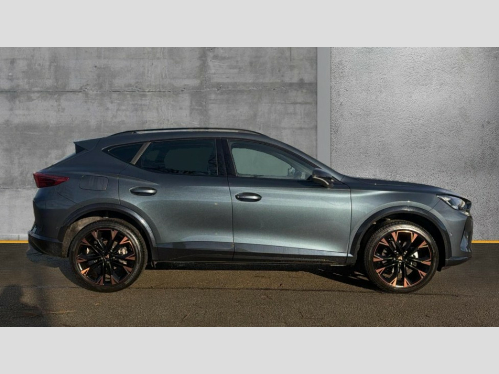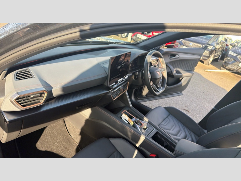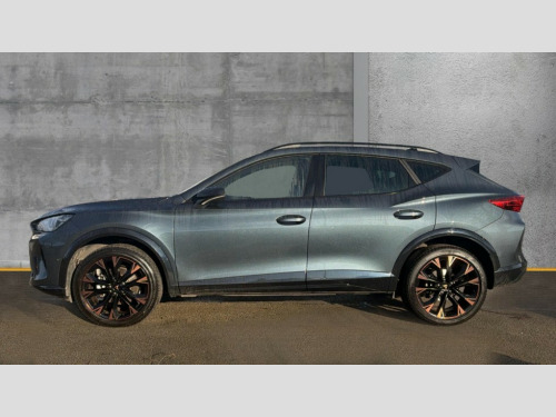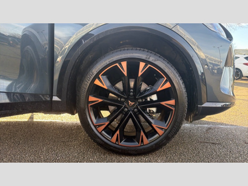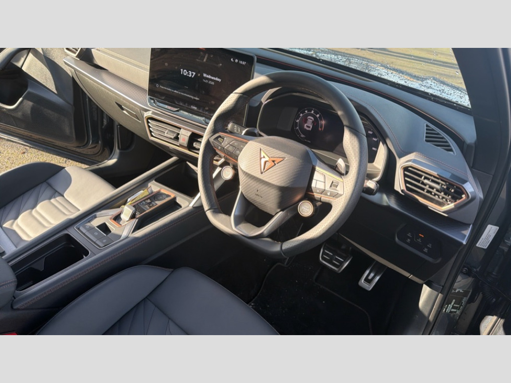 Cupra Formentor 1.5 eTSI 150 V3 5dr DSG 10.25" digital cockpit and configurable dashboard, Adaptive cruise control with follow-to-stop and speed limiter, Advanced driver alert system, Advanced lane assist with semi-automatic vehicle control in a medical emergency and traffic jam assist, Driving profile selection, Dynamic road sign display, Emergency steering support with turn assist, Forward collision warning with automatic braking, Front cross traffic assist, Full link phone integration, Intelligent park assist, Progressive steering, RPM, trip computer, outside temp gauge, instrument light brightness, low fuel warning light, lights on reminder, gearshift indicator, Service interval indicator, Side and exit assist, Start/stop system with regenerative braking, Top view camera, Virtual pedal and electric tailgate, Voice control system, Wired Android Auto, Wireless apple carplay, Wireless phone charger, CUPRA sport suspension, Electronic locking differential and dynamic traction support, 2 front and 2 rear USB type C sockets, Media system with navigation, 12.9" touchscreen display, voice control, DAB, steering wheel mounted controls, Auto dimming rear view mirror, Body colour door handles, Body coloured bumpers, Dark grey wing mirror, Daytime running light with automatic headlight control and coming home feature, Door panel ambient lighting, Dynamic headlight range control, Electric front/rear windows, Electrically adjustable heated and folding door mirrors with memory function, Gloss black roof rails and window surrounds, High beam assist, LED 3rd brake light, LED front fog lamps with cornering function, LED Headlights, LED Taillights with dynamic indicator, Rain sensing wipers, Rear diffuser with black simulated exhaust pipes, Rear fog lights, Rear side wing doors, Rear wash/wipe, Tinted rear windows, Welcome lights (within exterior mirror housing), 12V socket, 2 front and 2 rear reading lights, 3 seat bench in 2nd row, 60/40 split rear bench seat with armrest and mechanical seat release, Black headlining, Black interior roof lining, Cupra sports pedals, Dust/pollen filter, Electrically adjustable front seats with lumbar support and memory function, Front and rear head restraints, Front centre armrest, Heated front seats, Heated supersports multifunction leather steering wheel with satellite buttons and gear shift paddles, Height/reach adjust steering wheel, Illuminated aluminium doorsteps, Illuminated interior front door sills, Illuminated sunvisor with mirror, Isofix, Leather dashboard, door insert and side trim panel, LED smart wraparound lighting, PVC/Leather upholstery, Satellite steering wheel, Single front passenger seat, Storage pockets on rear of front seats, Three zone climate control with control panel in rear, Variable luggage/load compartment floor, 3 point seatbelts on all rear seats, ABS, Brake control system - ESC and brake booster, Child proof door locks, Driver and front passenger airbags with front passenger airbag de-activation, Electronic parking brake, Front and rear disc brakes, Front side curtain airbags, Hill hold control, Pre-crash front and rear seat belt tensioner, window closure and hazard lights, Public e-call, Seat belt reminder for front and rear seats, Tyre pressure monitoring system, Anti theft alarm system, KESSY Advanced - Keyless start, keyless entry with SAFELOCK, Locking wheel bolts, Warranty - 5 years/90,000 miles, Copper and aluminium interior detailing