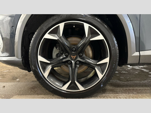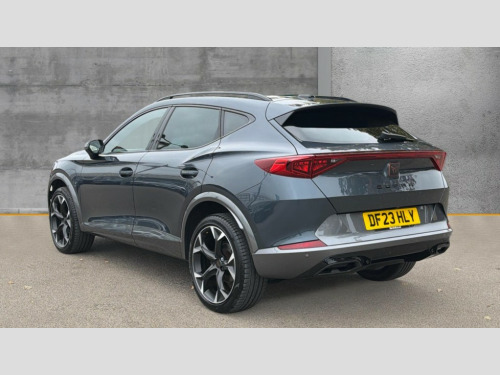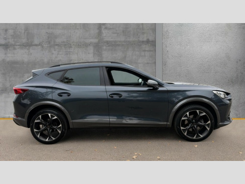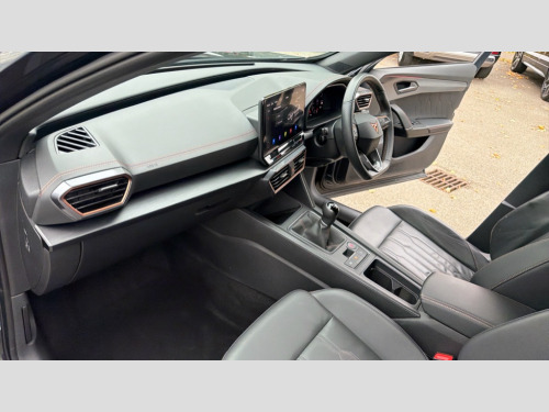 Cupra Formentor 1.5 TSI 150 V2 5dr Digital cockpit and configurable dashboard, Driver alert system, Driving profile selection, Forward collision warning with automatic braking, Lane assist, Navigation system with 12'' Touchscreen Display, Park assist (inc front/rear parking sensors), PAS, Predictive adaptive cruise control with speed limiter, Rear view camera, RPM, trip computer, outside temp gauge, instrument light brightness, low fuel warning light, lights on reminder, gearshift indicator, Service interval indicator, Start/stop system with regenerative braking, Voice control system, Wired Android Auto, Wireless apple carplay, Wireless phone charger, Electronic locking differential and dynamic traction support, Standard suspension, 2 front and 2 rear USB type C sockets, Auxiliary input socket, DAB radio, Auto dimming rear view mirror, Body colour door handles, Body coloured bumpers, Dark grey wing mirror, Daytime running light with automatic headlight control and coming home feature, Dynamic headlight range control, Electric front/rear windows, Electrically adjustable heated and folding door mirrors with memory function, Front fog lamps with cornering function, Gloss black roof rails and window surrounds, LED Headlights, LED Taillights with dynamic indicator, Rain sensing wipers, Rear diffuser with black simulated exhaust pipes, Rear side wing doors, Rear wash/wipe, Third brake light, Tinted rear windows, Welcome lights, 12v power supply in centre console, 12V socket, 12v socket in loadspace, 2 front and 2 rear reading lights, 230V socket, 3 seat bench in 2nd row, 60/40 split rear bench seat with armrest and mechanical seat release, Black headlining, Dust/pollen filter, Front and rear head restraints, Front centre armrest, Height/reach adjust steering wheel, Illuminated interior front door sills, Illuminated sunvisor with mirror, Isofix, Leather multi function steering wheel, Luggage tie-down hooks, Single front passenger seat, Three zone climate control with control panel in rear, Variable luggage/load compartment floor, Wraparound lighting, Genuine Nappa leather Pack - Cupra, Safety and driving pack (M) - Formentor, 3 point seatbelts on all rear seats, ABS, Brake control system - ESC and brake booster, Child proof door locks, Driver and front passenger airbags with front passenger airbag de-activation, Electronic parking brake, Front and rear disc brakes, Front side curtain airbags, Hill hold control, Public e-call, Seat belt reminder for front and rear seats, Tyre pressure monitoring system, Anti theft alarm system, Keyless entry and start system (KESSY), Locking wheel bolts, Copper and aluminium interior detailing, 19" 'Exclusive' machined sport matte black and silver alloy wheels