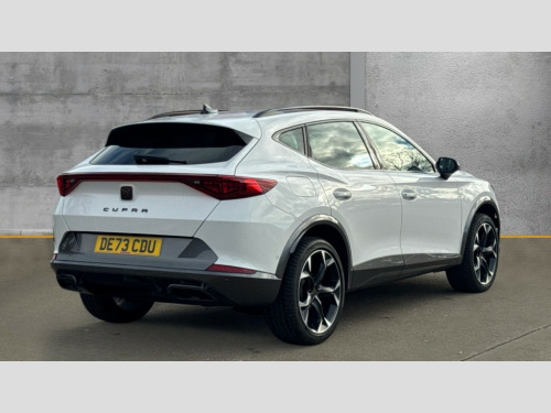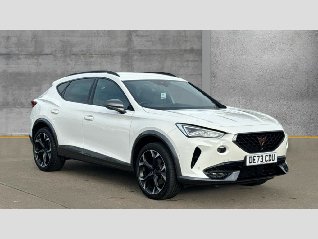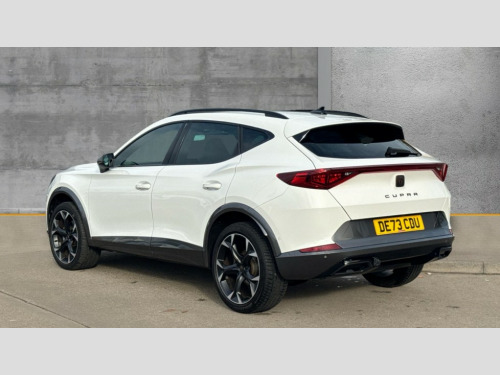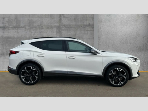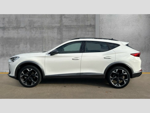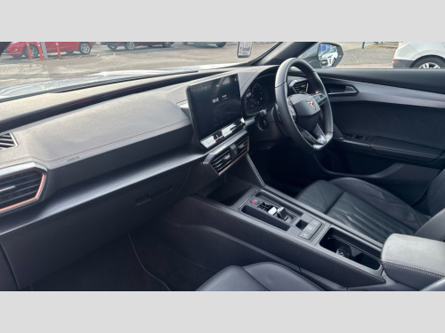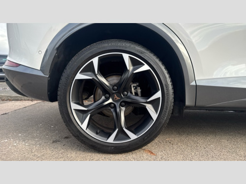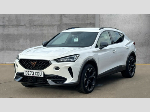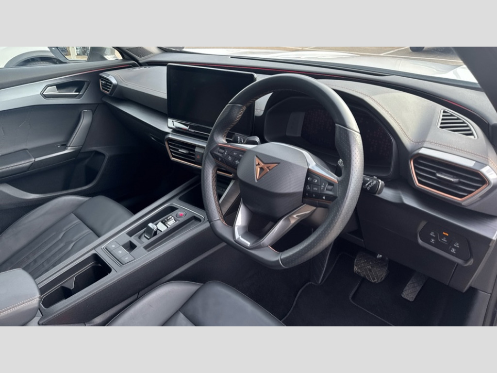 Cupra Formentor 1.5 TSI 150 V2 5dr DSG Digital cockpit and configurable dashboard, Driver alert system, Driving profile selection, Forward collision warning with automatic braking, Lane assist, Navigation system with 12'' Touchscreen Display, Park assist (inc front/rear parking sensors), PAS, Predictive adaptive cruise control with speed limiter, Rear view camera, RPM, trip computer, outside temp gauge, instrument light brightness, low fuel warning light, lights on reminder, gearshift indicator, Service interval indicator, Start/stop system with regenerative braking, Voice control system, Wired Android Auto, Wireless apple carplay, Wireless phone charger, Electronic locking differential and dynamic traction support, Standard suspension, 2 front and 2 rear USB type C sockets, Auxiliary input socket, DAB radio, Auto dimming rear view mirror, Body colour door handles, Body coloured bumpers, Dark grey wing mirror, Daytime running light with automatic headlight control and coming home feature, Dynamic headlight range control, Electric front/rear windows, Electrically adjustable heated and folding door mirrors with memory function, Front fog lamps with cornering function, Gloss black roof rails and window surrounds, LED Headlights, LED Taillights with dynamic indicator, Rain sensing wipers, Rear diffuser with black simulated exhaust pipes, Rear side wing doors, Rear wash/wipe, Third brake light, Tinted rear windows, Welcome lights, 12v power supply in centre console, 12V socket, 12v socket in loadspace, 2 front and 2 rear reading lights, 230V socket, 3 seat bench in 2nd row, 60/40 split rear bench seat with armrest and mechanical seat release, Black headlining, Dust/pollen filter, Front and rear head restraints, Front centre armrest, Height/reach adjust steering wheel, Illuminated interior front door sills, Illuminated sunvisor with mirror, Isofix, Leather multi function heated steering wheel with gear shift paddles, Luggage tie-down hooks, Single front passenger seat, Three zone climate control with control panel in rear, Variable luggage/load compartment floor, Wraparound lighting, Genuine Nappa leather Pack - Cupra, 3 point seatbelts on all rear seats, ABS, Brake control system - ESC and brake booster, Child proof door locks, Driver and front passenger airbags with front passenger airbag de-activation, Electronic parking brake, Front and rear disc brakes, Front side curtain airbags, Hill hold control, Public e-call, Seat belt reminder for front and rear seats, Tyre pressure monitoring system, Anti theft alarm system, Keyless entry and start system (KESSY), Locking wheel bolts, Copper and aluminium interior detailing, 19" 'Exclusive' machined sport matte black and silver alloy wheels