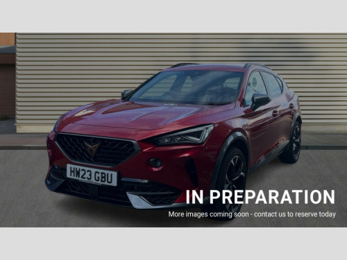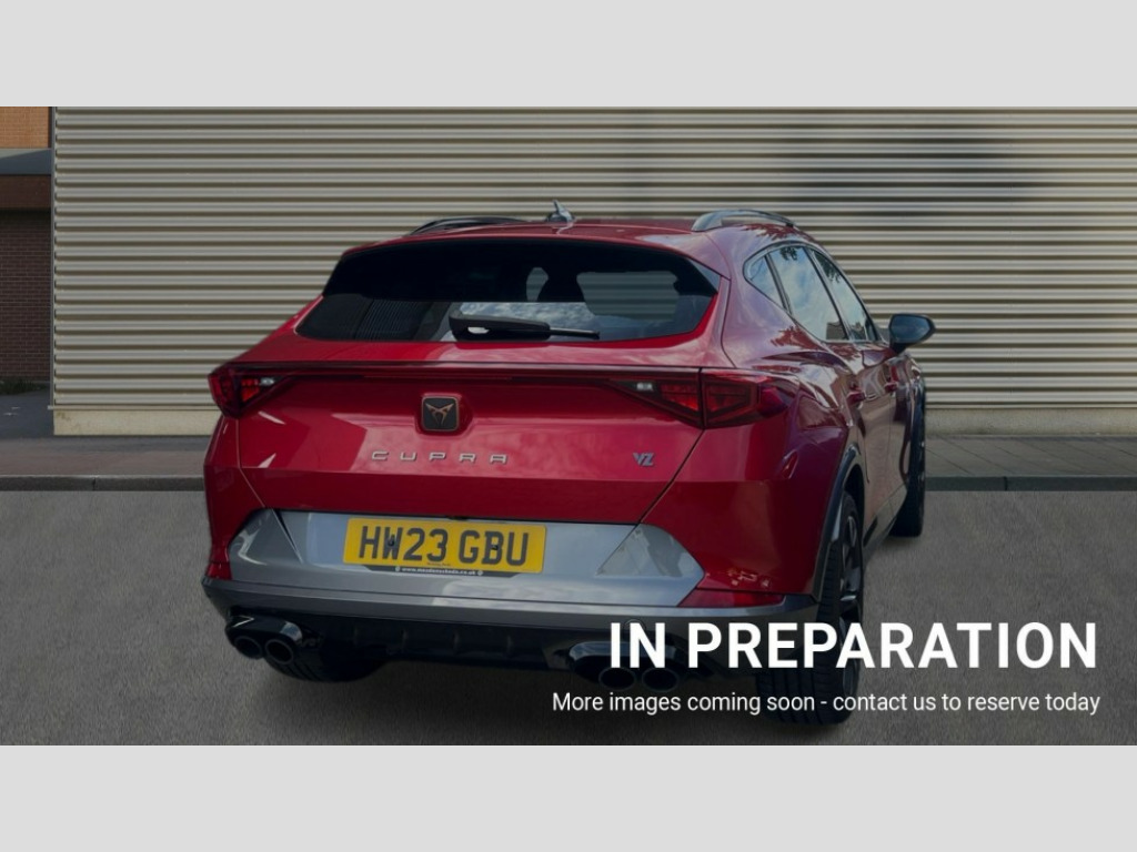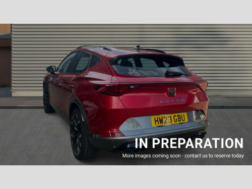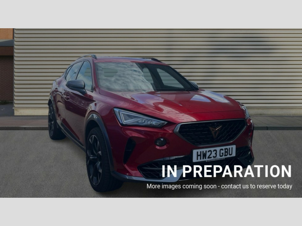 Cupra Formentor 2.0 TSI 310 VZ2 5dr DSG 4Drive Digital cockpit and configurable dashboard, Driver alert system, Dynamic chassis control with driving profile selection (Comfort, Sport, CUPRA, Individual), Forward collision warning with automatic braking, Lane assist, Navigation system with 12'' Touchscreen Display, Park assist (inc front/rear parking sensors), Predictive adaptive cruise control with speed limiter, RPM, trip computer, outside temp gauge, instrument light brightness, low fuel warning light, lights on reminder, gearshift indicator, Service interval indicator, Speed sensitive power steering, Start/stop system with regenerative braking, Virtual pedal and electric tailgate, Voice control system, Wireless apple carplay, Wireless phone charger, Electronic locking differential and dynamic traction support, Sports suspension with front shock absoption, 2 front and 2 rear USB type C sockets, Auxiliary input socket, DAB radio, Auto dimming rear view mirror, Body colour door handles, Body coloured bumpers, Dark grey wing mirror, Daytime running light with automatic headlight control and coming home feature, Dynamic headlight range control, Electric front/rear windows, Electrically adjustable heated and folding door mirrors with memory function, Front fog lamps with cornering function, Gloss black roof rails and window surrounds, LED Headlights, LED Taillights with dynamic indicator, Rain sensing wipers, Rear diffuser with twin exhaust pipe on each side, Rear side wing doors, Rear wash/wipe, Sports bumpers, Third brake light, Tinted rear windows, VZ logo rear badging, Welcome lights, 12v power supply in centre console, 12V socket, 12v socket in loadspace, 2 front and 2 rear reading lights, 230V socket, 3 seat bench in 2nd row, 60/40 split rear bench seat with armrest and mechanical seat release, Black headlining, Cupra sports pedals, Dust/pollen filter, Front and rear head restraints, Front centre armrest, Height/reach adjust steering wheel, Illuminated interior front door sills, Illuminated sunvisor with mirror, Isofix, Leather heated multi-function sports steering wheel with start stop, CUPRA mode button and gear shift paddles, Luggage tie-down hooks, Single front passenger seat, Three zone climate control with control panel in rear, Variable luggage/load compartment floor, Wraparound lighting, Genuine Nappa leather Pack - Cupra, Safety and driving pack (XL) - Formentor, 3 point seatbelts on all rear seats, ABS, Brake control system - ESC and brake booster, Child proof door locks, Driver and front passenger airbags with front passenger airbag de-activation, Electronic parking brake, Front and rear disc brakes, Front side curtain airbags, Hill hold control, Public e-call, Seat belt reminder for front and rear seats, Tyre pressure monitoring system, Anti theft alarm system, Keyless entry and start system (KESSY), Locking wheel bolts, Copper and aluminium interior detailing, 19" 'Exclusive' machined sport matte black and silver alloy wheels, Space saver spare wheel