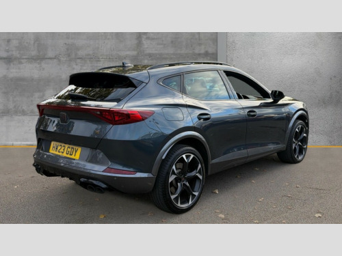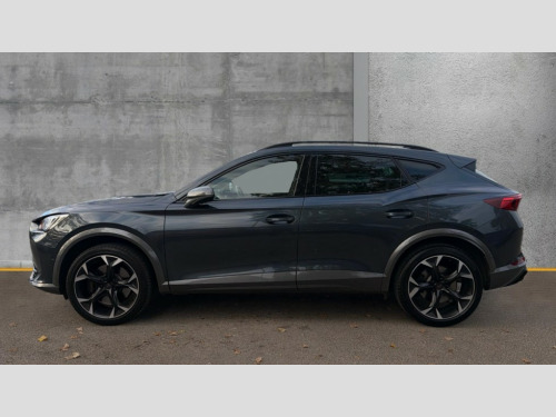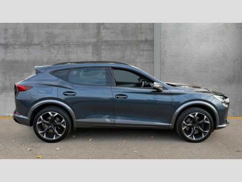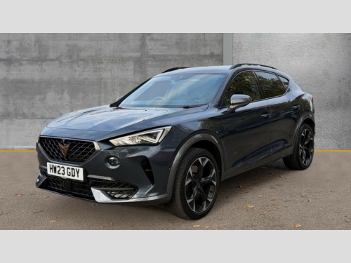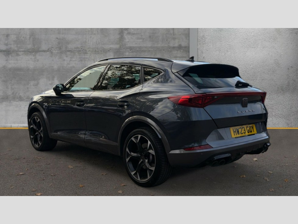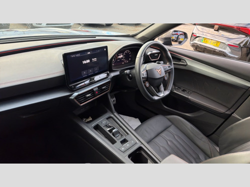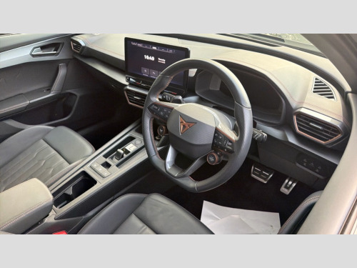 Cupra Formentor 2.0 TSI 310 VZ2 5dr DSG 4Drive Digital cockpit and configurable dashboard, Driver alert system, Dynamic chassis control with driving profile selection (Comfort, Sport, CUPRA, Individual), Forward collision warning with automatic braking, Lane assist, Navigation system with 12'' Touchscreen Display, Park assist (inc front/rear parking sensors), Predictive adaptive cruise control with speed limiter, RPM, trip computer, outside temp gauge, instrument light brightness, low fuel warning light, lights on reminder, gearshift indicator, Service interval indicator, Speed sensitive power steering, Start/stop system with regenerative braking, Virtual pedal and electric tailgate, Voice control system, Wireless apple carplay, Wireless phone charger, Electronic locking differential and dynamic traction support, Sports suspension with front shock absoption, 2 front and 2 rear USB type C sockets, Auxiliary input socket, DAB radio, Auto dimming rear view mirror, Body colour door handles, Body coloured bumpers, Dark grey wing mirror, Daytime running light with automatic headlight control and coming home feature, Dynamic headlight range control, Electric front/rear windows, Electrically adjustable heated and folding door mirrors with memory function, Front fog lamps with cornering function, Gloss black roof rails and window surrounds, LED Headlights, LED Taillights with dynamic indicator, Rain sensing wipers, Rear diffuser with twin exhaust pipe on each side, Rear side wing doors, Rear wash/wipe, Sports bumpers, Third brake light, Tinted rear windows, VZ logo rear badging, Welcome lights, 12v power supply in centre console, 12V socket, 12v socket in loadspace, 2 front and 2 rear reading lights, 230V socket, 3 seat bench in 2nd row, 60/40 split rear bench seat with armrest and mechanical seat release, Black headlining, Cupra sports pedals, Dust/pollen filter, Front and rear head restraints, Front centre armrest, Height/reach adjust steering wheel, Illuminated interior front door sills, Illuminated sunvisor with mirror, Isofix, Leather heated multi-function sports steering wheel with start stop, CUPRA mode button and gear shift paddles, Luggage tie-down hooks, Single front passenger seat, Three zone climate control with control panel in rear, Variable luggage/load compartment floor, Wraparound lighting, Genuine Nappa leather Pack - Cupra, Safety and driving pack (XL) - Formentor, 3 point seatbelts on all rear seats, ABS, Brake control system - ESC and brake booster, Child proof door locks, Driver and front passenger airbags with front passenger airbag de-activation, Electronic parking brake, Front and rear disc brakes, Front side curtain airbags, Hill hold control, Public e-call, Seat belt reminder for front and rear seats, Tyre pressure monitoring system, Anti theft alarm system, Keyless entry and start system (KESSY), Locking wheel bolts, Copper and aluminium interior detailing, 19" 'Exclusive' machined sport matte black and silver alloy wheels, Space saver spare wheel