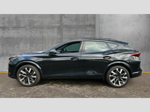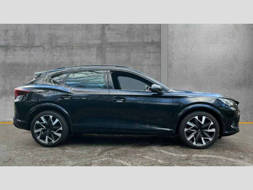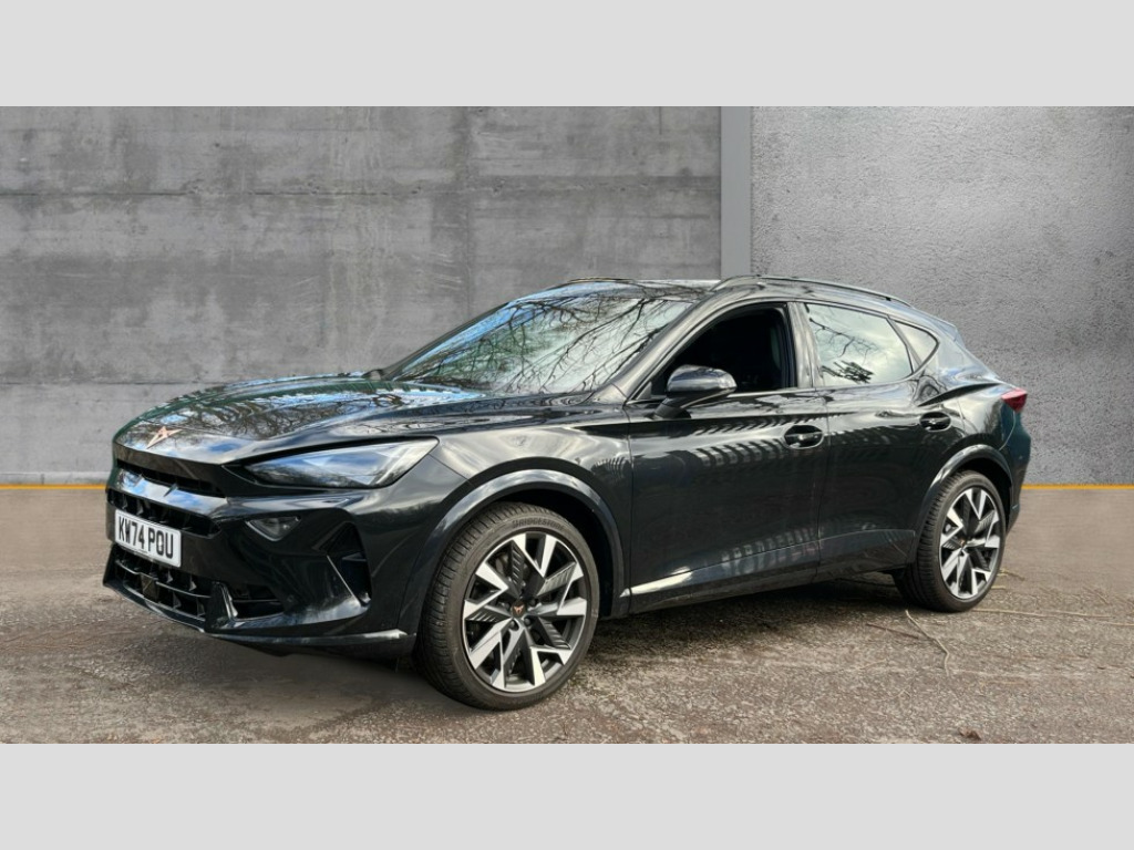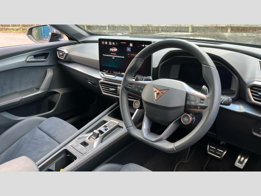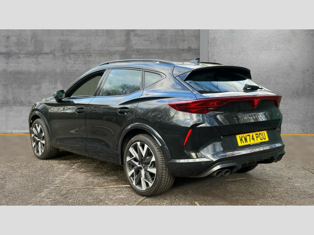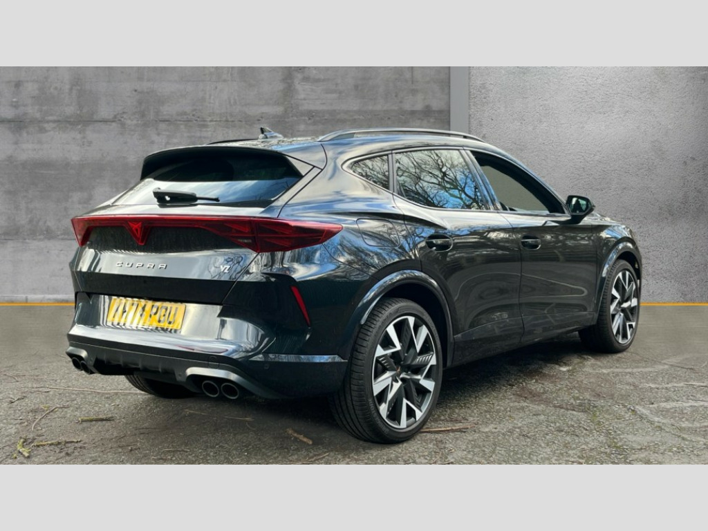 Cupra Formentor 2.0 TSI 333 VZ1 5dr DSG 4Drive 10.25" digital cockpit and configurable dashboard, Adaptive cruise control with follow-to-stop and speed limiter, Advanced driver alert system, Dynamic chassis control with driving profile selection (Comfort, Sport, CUPRA, Individual), Dynamic road sign display, Emergency steering support with turn assist, Forward collision warning with automatic braking, Front and rear parking sensors, Full link phone integration, Lane assist, Rear view camera, RPM, trip computer, outside temp gauge, instrument light brightness, low fuel warning light, lights on reminder, gearshift indicator, Service interval indicator, Speed sensitive power steering, Start/stop system with regenerative braking, Virtual pedal and electric tailgate, Voice control system, Wired Android Auto, Wireless apple carplay, Wireless phone charger, Adaptive chassis control with continuous operation, CUPRA sport suspension, Electronic locking differential and dynamic traction support, 2 front and 2 rear USB type C sockets, Media system with navigation, 12.9" touchscreen display, voice control, DAB, steering wheel mounted controls, Auto dimming rear view mirror, Body colour door handles, Body coloured bumpers, Dark grey wing mirror, Daytime running light with automatic headlight control and coming home feature, Door panel ambient lighting, Dynamic headlight range control, Electric front/rear windows, Electrically adjustable heated and folding door mirrors with memory function, Gloss black roof rails and window surrounds, High beam assist, LED 3rd brake light, LED front fog lamps with cornering function, LED Taillights with dynamic indicator, Matrix LED headlights with multifunction camera, Rain sensing wipers, Rear diffuser with twin exhaust pipe on each side, Rear fog lights, Rear side wing doors, Rear wash/wipe, Tinted rear windows, Welcome lights (within exterior mirror housing), 12V socket, 2 front and 2 rear reading lights, 3 seat bench in 2nd row, 60/40 split rear bench seat with armrest and mechanical seat release, Black headlining, Black interior roof lining, Cupra sports pedals, Dust/pollen filter, Electrically adjustable front seats with lumbar support and memory function, Front and rear head restraints, Front centre armrest, Heated front seats, Heated supersports multifunction leather steering wheel with satellite buttons and gear shift paddles, Height/reach adjust steering wheel, Illuminated aluminium doorsteps, Illuminated interior front door sills, Illuminated sunvisor with mirror, Isofix, Leather dashboard, door insert and side trim panel, LED smart wraparound lighting, PVC/Dinamica microfiber upholstery + bucket seats, Satellite steering wheel, Single front passenger seat, Storage pockets on rear of front seats, Three zone climate control with control panel in rear, Variable luggage/load compartment floor, 3 point seatbelts on all rear seats, ABS, Brake control system - ESC and brake booster, Child proof door locks, Driver and front passenger airbags with front passenger airbag de-activation, Electronic parking brake, Front and rear disc brakes, Front side curtain airbags, Hill hold control, Public e-call, Seat belt reminder for front and rear seats, Tyre pressure monitoring system, Anti theft alarm system, KESSY Advanced - Keyless start, keyless entry with SAFELOCK, Locking wheel bolts, Copper and aluminium interior detailing, 19" Sandstorm machined sport black and silver alloy wheels, Breakdown and tool kit