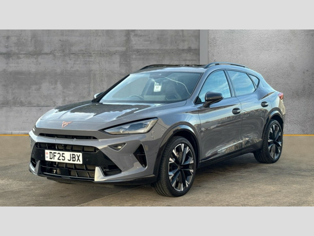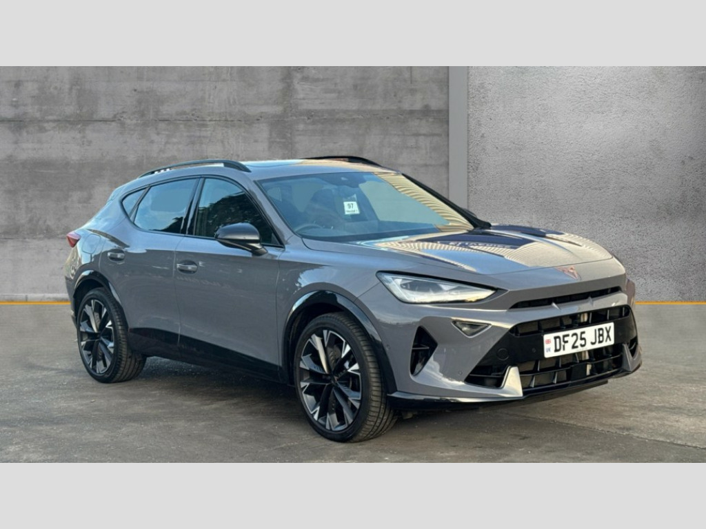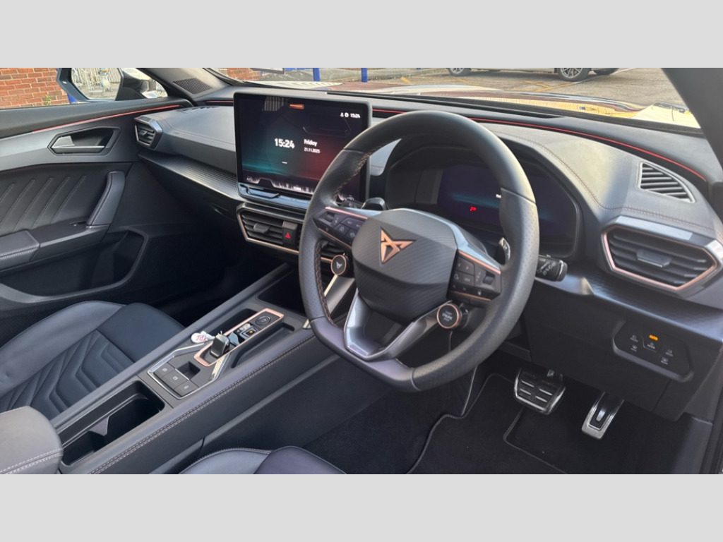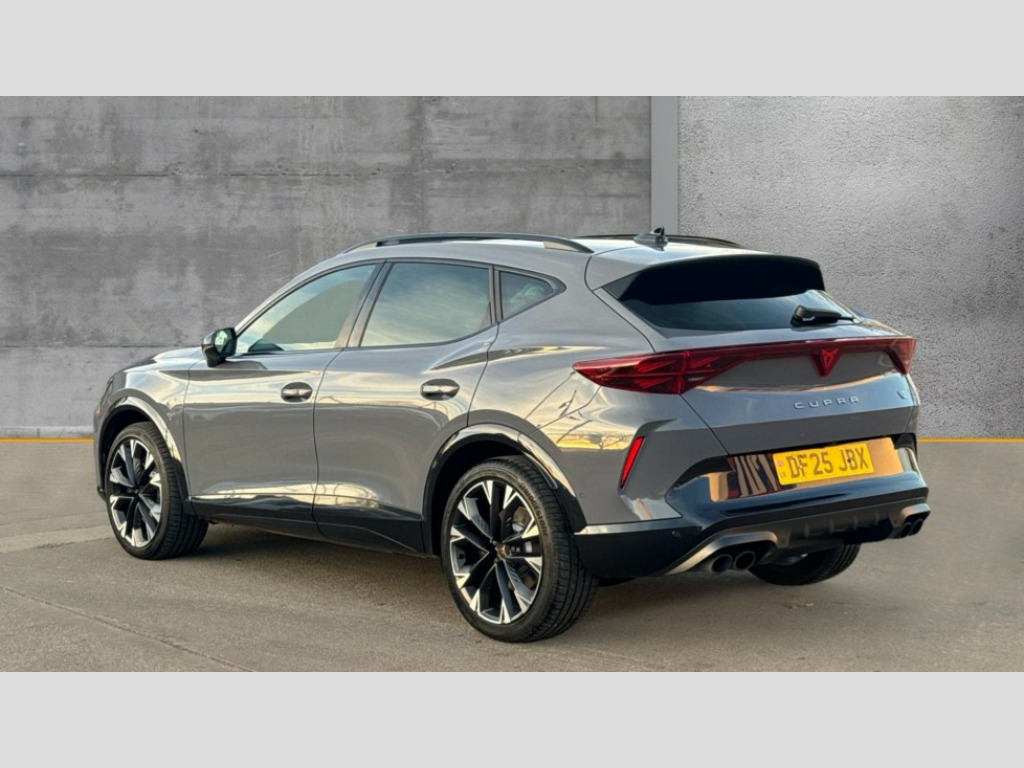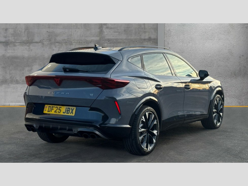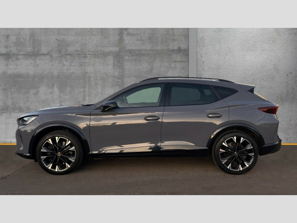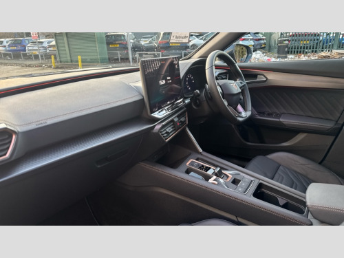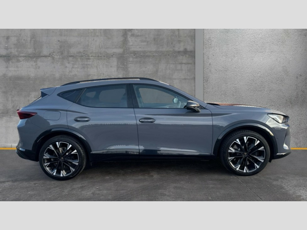 Cupra Formentor 2.0 TSI 333 VZ2 5dr DSG 4Drive 10.25" digital cockpit and configurable dashboard, Adaptive cruise control with follow-to-stop and speed limiter, Advanced driver alert system, Advanced lane assist with semi-automatic vehicle control in a medical emergency and traffic jam assist, Dynamic chassis control with driving profile selection (Comfort, Sport, CUPRA, Individual), Dynamic road sign display, Emergency steering support with turn assist, Forward collision warning with automatic braking, Full link phone integration, Intelligent park assist, RPM, trip computer, outside temp gauge, instrument light brightness, low fuel warning light, lights on reminder, gearshift indicator, Service interval indicator, Side and exit assist, Speed sensitive power steering, Start/stop system with regenerative braking, Top view camera, Virtual pedal and electric tailgate, Voice control system, Wired Android Auto, Wireless apple carplay, Wireless phone charger, Adaptive chassis control with continuous operation, CUPRA sport suspension, Electronic locking differential and dynamic traction support, 2 front and 2 rear USB type C sockets, Media system with navigation, 12.9" touchscreen display, voice control, DAB, steering wheel mounted controls, Auto dimming rear view mirror, Body colour door handles, Body coloured bumpers, Dark grey wing mirror, Daytime running light with automatic headlight control and coming home feature, Door panel ambient lighting, Dynamic headlight range control, Electric front/rear windows, Electrically adjustable heated and folding door mirrors with memory function, Gloss black roof rails and window surrounds, High beam assist, LED 3rd brake light, LED front fog lamps with cornering function, LED Taillights with dynamic indicator, Matrix LED headlights with multifunction camera, Rain sensing wipers, Rear diffuser with twin exhaust pipe on each side, Rear fog lights, Rear side wing doors, Rear wash/wipe, Tinted rear windows, Welcome lights (within exterior mirror housing), 12V socket, 2 front and 2 rear reading lights, 3 seat bench in 2nd row, 60/40 split rear bench seat with armrest and mechanical seat release, Black headlining, Black interior roof lining, Cupra sports pedals, Dust/pollen filter, Electrically adjustable front seats with lumbar support and memory function, Front and rear head restraints, Front centre armrest, Heated front seats, Heated supersports multifunction leather steering wheel with satellite buttons and gear shift paddles, Height/reach adjust steering wheel, Illuminated aluminium doorsteps, Illuminated interior front door sills, Illuminated sunvisor with mirror, Isofix, Leather dashboard, door insert and side trim panel, LED smart wraparound lighting, PVC/Leather upholstery, Satellite steering wheel, Single front passenger seat, Storage pockets on rear of front seats, Three zone climate control with control panel in rear, Variable luggage/load compartment floor, 3 point seatbelts on all rear seats, ABS, Brake control system - ESC and brake booster, Child proof door locks, Driver and front passenger airbags with front passenger airbag de-activation, Electronic parking brake, Front and rear disc brakes, Front side curtain airbags, Hill hold control, Pre-crash front and rear seat belt tensioner, window closure and hazard lights, Public e-call, Seat belt reminder for front and rear seats, Tyre pressure monitoring system, Anti theft alarm system, KESSY Advanced - Keyless start, keyless entry with SAFELOCK, Locking wheel bolts, Copper and aluminium interior detailing, 19" Artic machined sport black and silver alloy wheels, Breakdown and tool kit