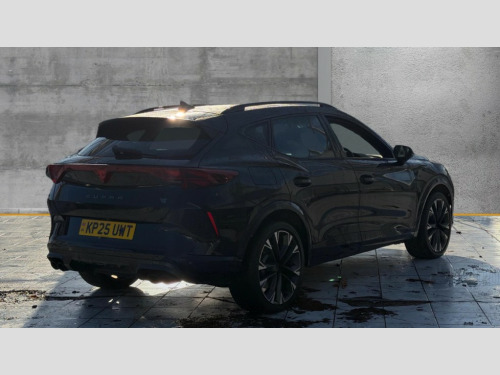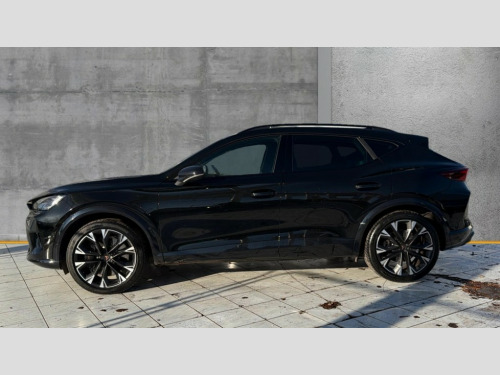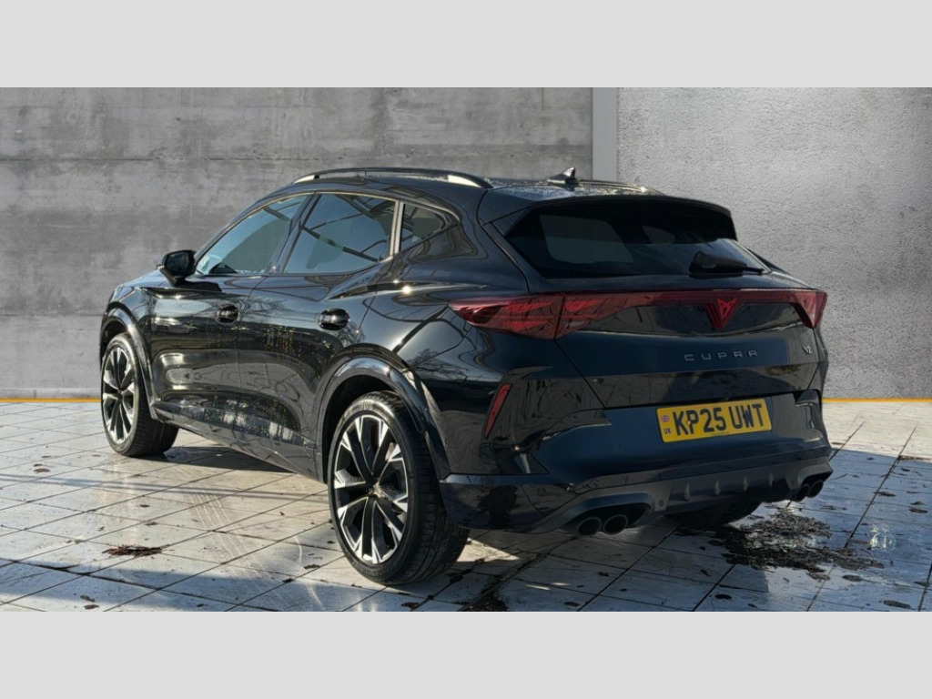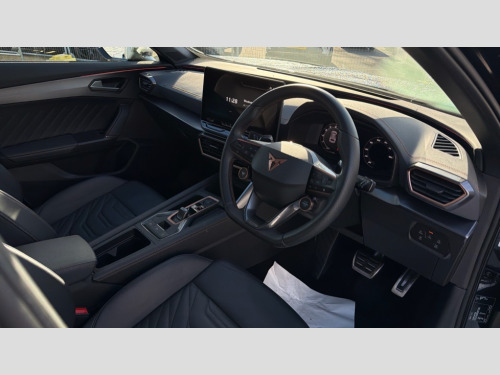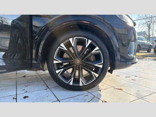 Cupra Formentor 2.0 TSI 333 VZ2 5dr DSG 4Drive 10.25" digital cockpit and configurable dashboard, Adaptive cruise control with follow-to-stop and speed limiter, Advanced driver alert system, Advanced lane assist with semi-automatic vehicle control in a medical emergency and traffic jam assist, Dynamic chassis control with driving profile selection (Comfort, Sport, CUPRA, Individual), Dynamic road sign display, Emergency steering support with turn assist, Forward collision warning with automatic braking, Full link phone integration, Intelligent park assist, RPM, trip computer, outside temp gauge, instrument light brightness, low fuel warning light, lights on reminder, gearshift indicator, Service interval indicator, Side and exit assist, Speed sensitive power steering, Start/stop system with regenerative braking, Top view camera, Virtual pedal and electric tailgate, Voice control system, Wired Android Auto, Wireless apple carplay, Wireless phone charger, Adaptive chassis control with continuous operation, CUPRA sport suspension, Electronic locking differential and dynamic traction support, 2 front and 2 rear USB type C sockets, Media system with navigation, 12.9" touchscreen display, voice control, DAB, steering wheel mounted controls, Auto dimming rear view mirror, Body colour door handles, Body coloured bumpers, Dark grey wing mirror, Daytime running light with automatic headlight control and coming home feature, Door panel ambient lighting, Dynamic headlight range control, Electric front/rear windows, Electrically adjustable heated and folding door mirrors with memory function, Gloss black roof rails and window surrounds, High beam assist, LED 3rd brake light, LED front fog lamps with cornering function, LED Taillights with dynamic indicator, Matrix LED headlights with multifunction camera, Rain sensing wipers, Rear diffuser with twin exhaust pipe on each side, Rear fog lights, Rear side wing doors, Rear wash/wipe, Tinted rear windows, Welcome lights (within exterior mirror housing), 12V socket, 2 front and 2 rear reading lights, 3 seat bench in 2nd row, 60/40 split rear bench seat with armrest and mechanical seat release, Black headlining, Black interior roof lining, Cupra sports pedals, Dust/pollen filter, Electrically adjustable front seats with lumbar support and memory function, Front and rear head restraints, Front centre armrest, Heated front seats, Heated supersports multifunction leather steering wheel with satellite buttons and gear shift paddles, Height/reach adjust steering wheel, Illuminated aluminium doorsteps, Illuminated interior front door sills, Illuminated sunvisor with mirror, Isofix, Leather dashboard, door insert and side trim panel, LED smart wraparound lighting, PVC/Leather upholstery, Satellite steering wheel, Single front passenger seat, Storage pockets on rear of front seats, Three zone climate control with control panel in rear, Variable luggage/load compartment floor, 3 point seatbelts on all rear seats, ABS, Brake control system - ESC and brake booster, Child proof door locks, Driver and front passenger airbags with front passenger airbag de-activation, Electronic parking brake, Front and rear disc brakes, Front side curtain airbags, Hill hold control, Pre-crash front and rear seat belt tensioner, window closure and hazard lights, Public e-call, Seat belt reminder for front and rear seats, Tyre pressure monitoring system, Anti theft alarm system, KESSY Advanced - Keyless start, keyless entry with SAFELOCK, Locking wheel bolts, Copper and aluminium interior detailing, 19" Artic machined sport black and silver alloy wheels, Breakdown and tool kit
