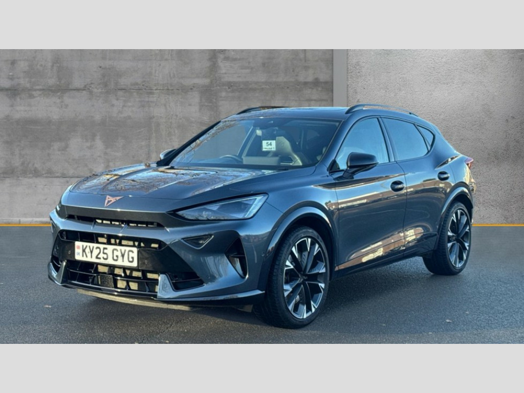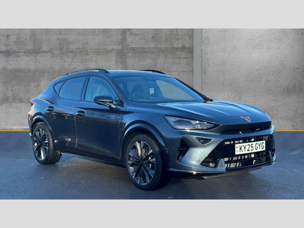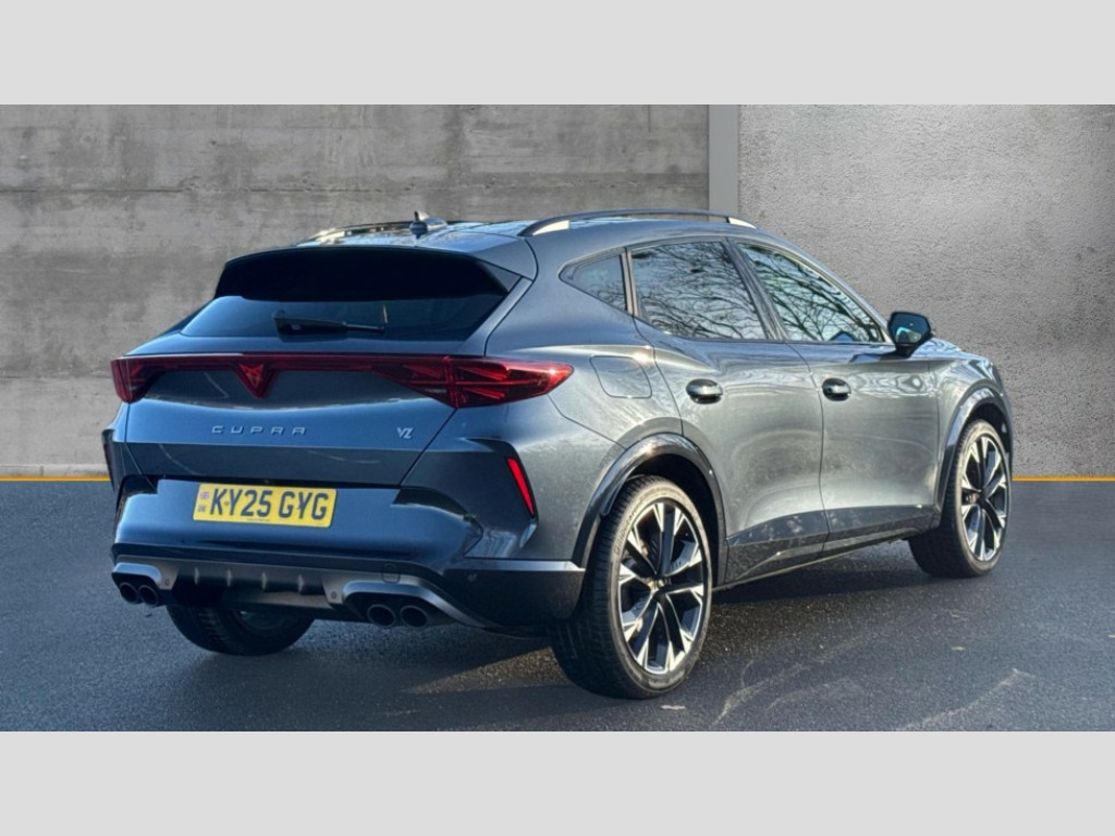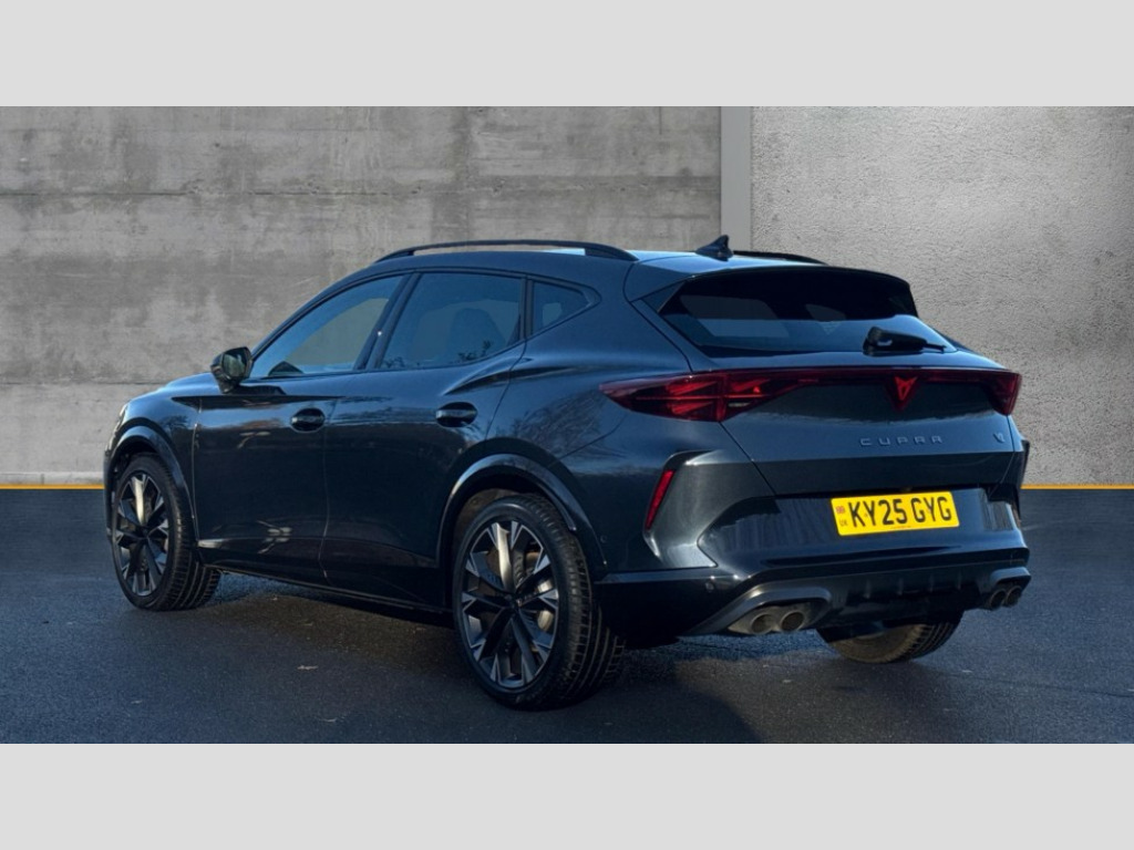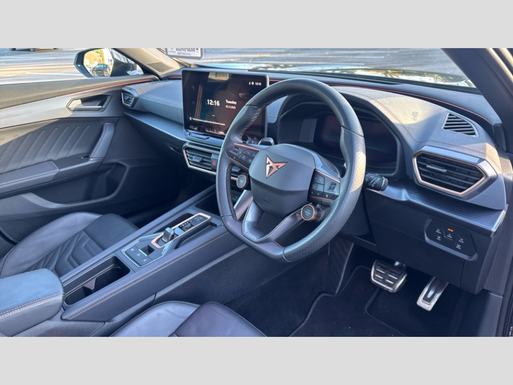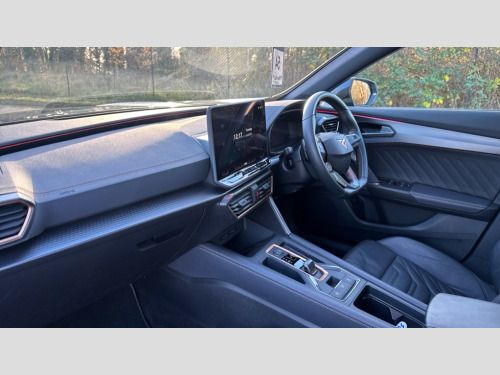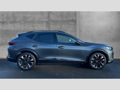Cupra Formentor 2.0 TSI 333 VZ2 5dr DSG 4Drive 10.25" digital cockpit and configurable dashboard, Adaptive cruise control with follow-to-stop and speed limiter, Advanced driver alert system, Advanced lane assist with semi-automatic vehicle control in a medical emergency and traffic jam assist, Dynamic chassis control with driving profile selection (Comfort, Sport, CUPRA, Individual), Dynamic road sign display, Emergency steering support with turn assist, Forward collision warning with automatic braking, Full link phone integration, Intelligent park assist, RPM, trip computer, outside temp gauge, instrument light brightness, low fuel warning light, lights on reminder, gearshift indicator, Service interval indicator, Side and exit assist, Speed sensitive power steering, Start/stop system with regenerative braking, Top view camera, Virtual pedal and electric tailgate, Voice control system, Wired Android Auto, Wireless apple carplay, Wireless phone charger, Adaptive chassis control with continuous operation, CUPRA sport suspension, Electronic locking differential and dynamic traction support, 2 front and 2 rear USB type C sockets, Media system with navigation, 12.9" touchscreen display, voice control, DAB, steering wheel mounted controls, Auto dimming rear view mirror, Body colour door handles, Body coloured bumpers, Dark grey wing mirror, Daytime running light with automatic headlight control and coming home feature, Door panel ambient lighting, Dynamic headlight range control, Electric front/rear windows, Electrically adjustable heated and folding door mirrors with memory function, Gloss black roof rails and window surrounds, High beam assist, LED 3rd brake light, LED front fog lamps with cornering function, LED Taillights with dynamic indicator, Matrix LED headlights with multifunction camera, Rain sensing wipers, Rear diffuser with twin exhaust pipe on each side, Rear fog lights, Rear side wing doors, Rear wash/wipe, Tinted rear windows, Welcome lights (within exterior mirror housing), 12V socket, 2 front and 2 rear reading lights, 3 seat bench in 2nd row, 60/40 split rear bench seat with armrest and mechanical seat release, Black headlining, Black interior roof lining, Cupra sports pedals, Dust/pollen filter, Electrically adjustable front seats with lumbar support and memory function, Front and rear head restraints, Front centre armrest, Heated front seats, Heated supersports multifunction leather steering wheel with satellite buttons and gear shift paddles, Height/reach adjust steering wheel, Illuminated aluminium doorsteps, Illuminated interior front door sills, Illuminated sunvisor with mirror, Isofix, Leather dashboard, door insert and side trim panel, LED smart wraparound lighting, PVC/Leather upholstery, Satellite steering wheel, Single front passenger seat, Storage pockets on rear of front seats, Three zone climate control with control panel in rear, Variable luggage/load compartment floor, 3 point seatbelts on all rear seats, ABS, Brake control system - ESC and brake booster, Child proof door locks, Driver and front passenger airbags with front passenger airbag de-activation, Electronic parking brake, Front and rear disc brakes, Front side curtain airbags, Hill hold control, Pre-crash front and rear seat belt tensioner, window closure and hazard lights, Public e-call, Seat belt reminder for front and rear seats, Tyre pressure monitoring system, Anti theft alarm system, KESSY Advanced - Keyless start, keyless entry with SAFELOCK, Locking wheel bolts, Copper and aluminium interior detailing, 19" Artic machined sport black and silver alloy wheels, Breakdown and tool kit