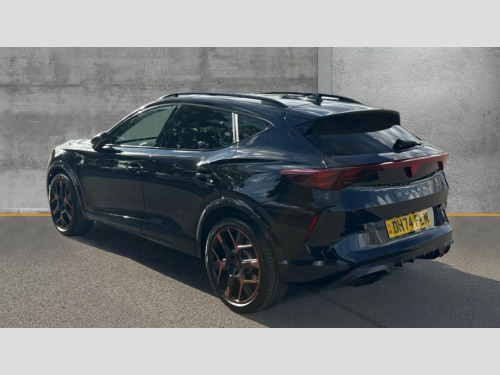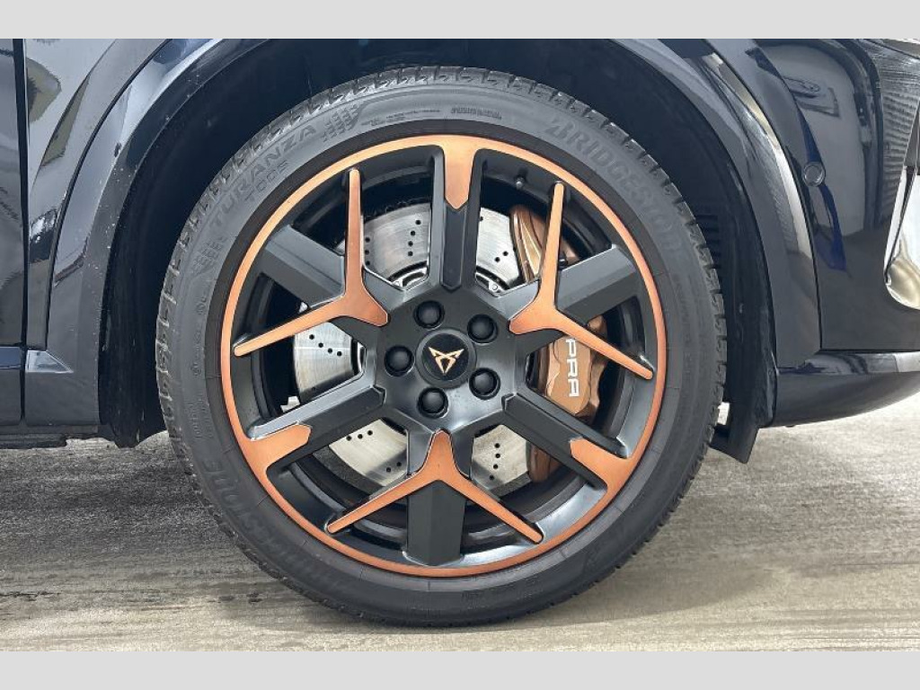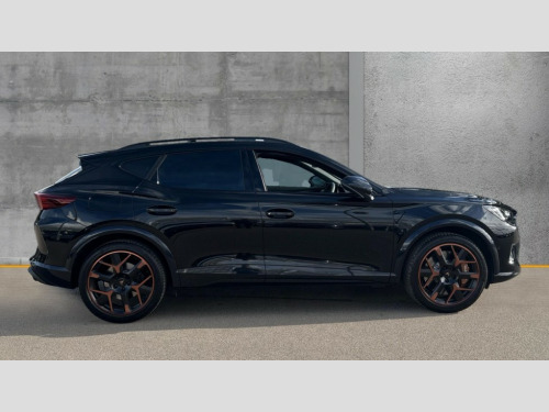 Cupra Formentor 2.0 TSI 333 VZ3 5dr DSG 4Drive 10.25" digital cockpit and configurable dashboard, Adaptive cruise control with follow-to-stop and speed limiter, Advanced driver alert system, Advanced lane assist with semi-automatic vehicle control in a medical emergency and traffic jam assist, Dynamic chassis control with driving profile selection (Comfort, Sport, CUPRA, Individual), Dynamic road sign display, Emergency steering support with turn assist, Forward collision warning with automatic braking, Full link phone integration, Intelligent park assist, RPM, trip computer, outside temp gauge, instrument light brightness, low fuel warning light, lights on reminder, gearshift indicator, Service interval indicator, Side and exit assist, Speed sensitive power steering, Start/stop system with regenerative braking, Top view camera, Virtual pedal and electric tailgate, Voice control system, Wired Android Auto, Wireless apple carplay, Wireless phone charger, Adaptive chassis control with continuous operation, CUPRA sport suspension, Electronic locking differential and dynamic traction support, 2 front and 2 rear USB type C sockets, Immersive by Sennheiser TM - 10 speakers, 1 central speaker, 1 subwoofer, Media system with navigation, 12.9" touchscreen display, voice control, DAB, steering wheel mounted controls, Auto dimming rear view mirror, Black roof spoiler, Body colour door handles, Body coloured bumpers, Dark grey wing mirror, Daytime running light with automatic headlight control and coming home feature, Door panel ambient lighting, Dynamic headlight range control, Electric front/rear windows, Electrically adjustable heated and folding door mirrors with memory function, Gloss black roof rails and window surrounds, High beam assist, LED 3rd brake light, LED front fog lamps with cornering function, LED Taillights with dynamic indicator, Matrix LED headlights with multifunction camera, Rain sensing wipers, Rear diffuser with twin exhaust pipe on each side, Rear fog lights, Rear side wing doors, Rear wash/wipe, Side skirts, Tinted rear windows, Welcome lights (within exterior mirror housing), 12V socket, 2 front and 2 rear reading lights, 3 seat bench in 2nd row, 60/40 split rear bench seat with armrest and mechanical seat release, Black headlining, Black interior roof lining, Cupra sports pedals, Dust/pollen filter, Electrically adjustable front seats with lumbar support and memory function, Front and rear head restraints, Front centre armrest, Heated front seats, Heated supersports multifunction leather steering wheel with satellite buttons and gear shift paddles, Height/reach adjust steering wheel, Illuminated aluminium doorsteps, Illuminated interior front door sills, Illuminated sunvisor with mirror, Isofix, Leather dashboard, door insert and side trim panel, LED smart wraparound lighting, PVC/Textile upholstery + cup bucket seats, Satellite steering wheel, Single front passenger seat, Three zone climate control with control panel in rear, Variable luggage/load compartment floor, 3 point seatbelts on all rear seats, ABS, Akebono brakes, Brake control system - ESC and brake booster, Child proof door locks, Driver and front passenger airbags with front passenger airbag de-activation, Driver and front passenger knee airbag, Electronic parking brake, Hill hold control, Performance brakes with front brembo calipers, Pre-crash front and rear seat belt tensioner, window closure and hazard lights, Public e-call, Seat belt reminder for front and rear seats, Side airbag for front and rear with curtain airbags, Tyre pressure monitoring system, Anti theft alarm system, KESSY Advanced - Keyless start, keyless entry with SAFELOCK, Locking wheel bolts, Copper and aluminium interior detailing, 19" Hailstorm forged machined R black and copper alloy wheels, Breakdown and tool kit