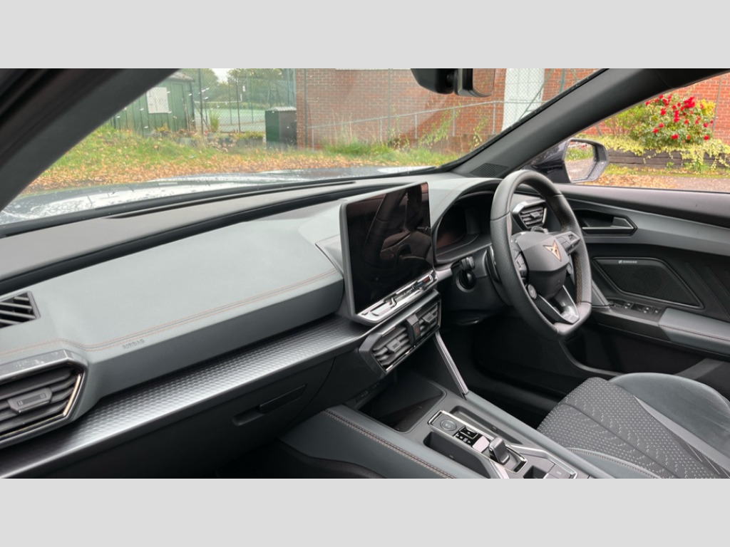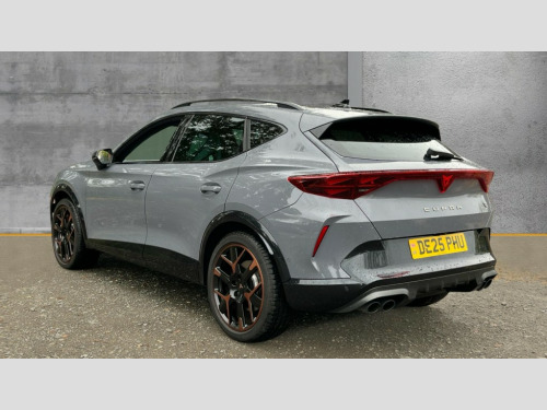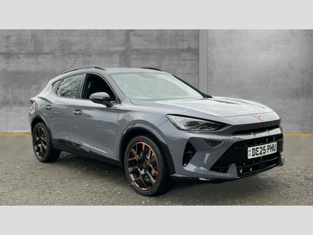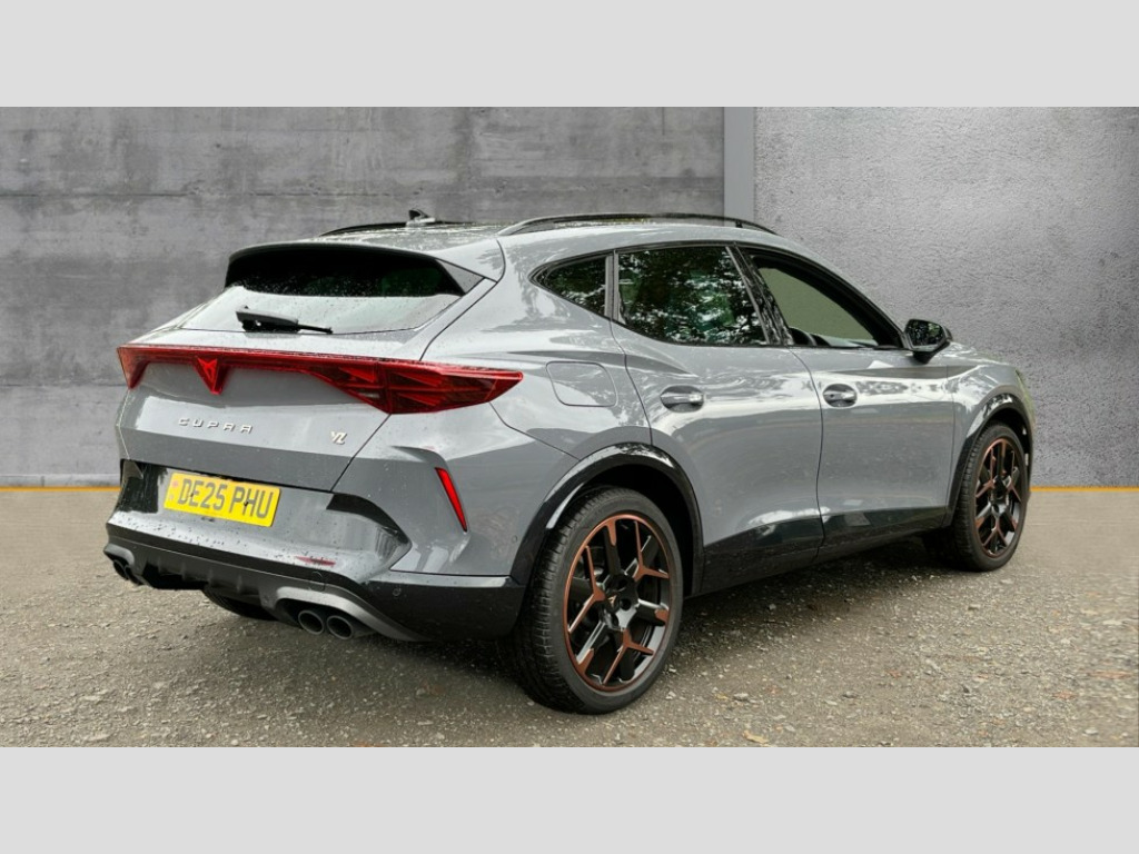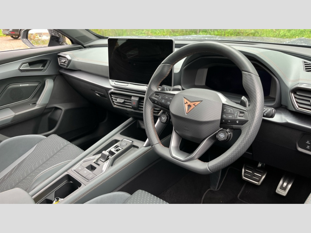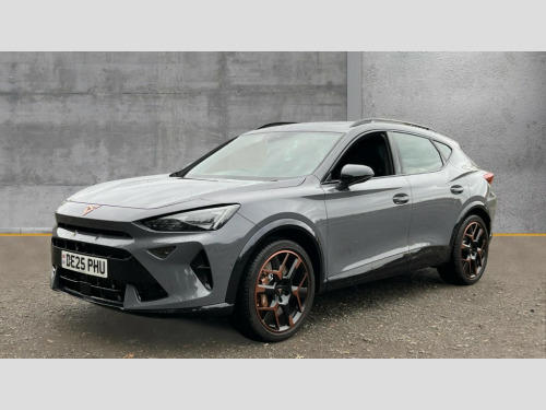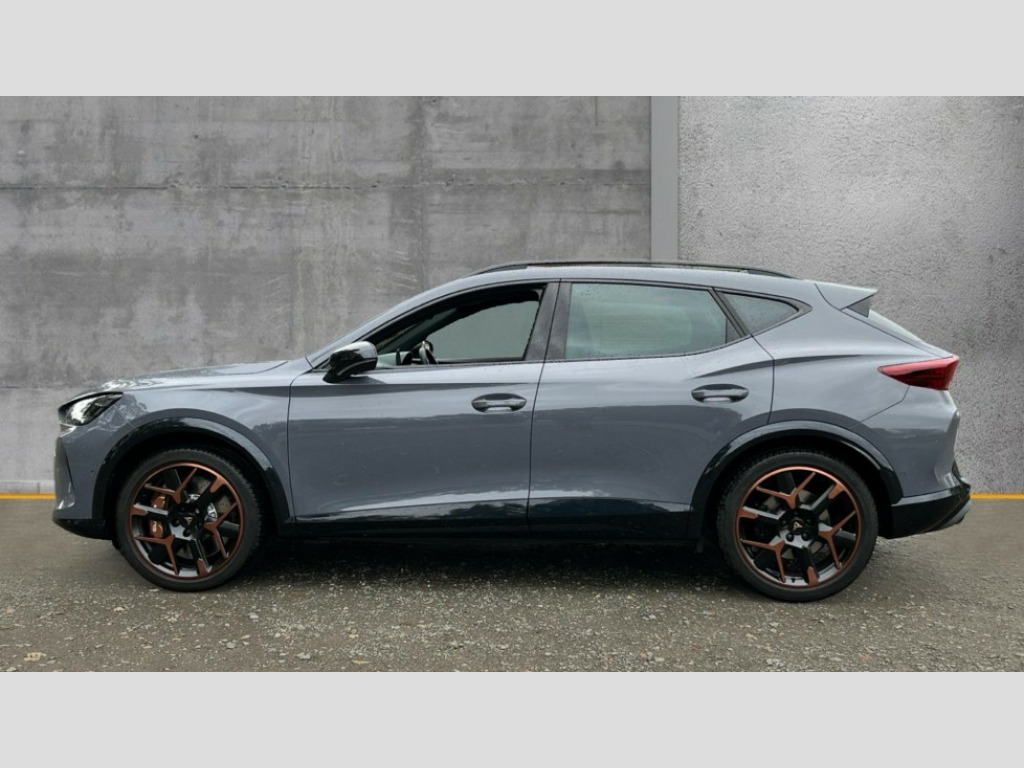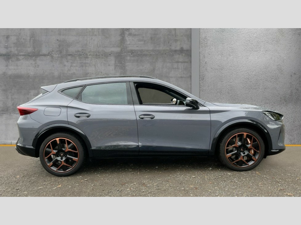 Cupra Formentor 2.0 TSI 333 VZ3 5dr DSG 4Drive 10.25" digital cockpit and configurable dashboard, Adaptive cruise control with follow-to-stop and speed limiter, Advanced driver alert system, Advanced lane assist with semi-automatic vehicle control in a medical emergency and traffic jam assist, Dynamic chassis control with driving profile selection (Comfort, Sport, CUPRA, Individual), Dynamic road sign display, Emergency steering support with turn assist, Forward collision warning with automatic braking, Full link phone integration, Intelligent park assist, RPM, trip computer, outside temp gauge, instrument light brightness, low fuel warning light, lights on reminder, gearshift indicator, Service interval indicator, Side and exit assist, Speed sensitive power steering, Start/stop system with regenerative braking, Top view camera, Virtual pedal and electric tailgate, Voice control system, Wired Android Auto, Wireless apple carplay, Wireless phone charger, Adaptive chassis control with continuous operation, CUPRA sport suspension, Electronic locking differential and dynamic traction support, 2 front and 2 rear USB type C sockets, Immersive by Sennheiser TM - 10 speakers, 1 central speaker, 1 subwoofer, Media system with navigation, 12.9" touchscreen display, voice control, DAB, steering wheel mounted controls, Auto dimming rear view mirror, Black roof spoiler, Body colour door handles, Body coloured bumpers, Dark grey wing mirror, Daytime running light with automatic headlight control and coming home feature, Door panel ambient lighting, Dynamic headlight range control, Electric front/rear windows, Electrically adjustable heated and folding door mirrors with memory function, Gloss black roof rails and window surrounds, High beam assist, LED 3rd brake light, LED front fog lamps with cornering function, LED Taillights with dynamic indicator, Matrix LED headlights with multifunction camera, Rain sensing wipers, Rear diffuser with twin exhaust pipe on each side, Rear fog lights, Rear side wing doors, Rear wash/wipe, Side skirts, Tinted rear windows, Welcome lights (within exterior mirror housing), 12V socket, 2 front and 2 rear reading lights, 3 seat bench in 2nd row, 60/40 split rear bench seat with armrest and mechanical seat release, Black headlining, Black interior roof lining, Cupra sports pedals, Dust/pollen filter, Electrically adjustable front seats with lumbar support and memory function, Front and rear head restraints, Front centre armrest, Heated front seats, Heated supersports multifunction leather steering wheel with satellite buttons and gear shift paddles, Height/reach adjust steering wheel, Illuminated aluminium doorsteps, Illuminated interior front door sills, Illuminated sunvisor with mirror, Isofix, Leather dashboard, door insert and side trim panel, LED smart wraparound lighting, PVC/Textile upholstery + cup bucket seats, Satellite steering wheel, Single front passenger seat, Three zone climate control with control panel in rear, Variable luggage/load compartment floor, 3 point seatbelts on all rear seats, ABS, Akebono brakes, Brake control system - ESC and brake booster, Child proof door locks, Driver and front passenger airbags with front passenger airbag de-activation, Driver and front passenger knee airbag, Electronic parking brake, Hill hold control, Performance brakes with front brembo calipers, Pre-crash front and rear seat belt tensioner, window closure and hazard lights, Public e-call, Seat belt reminder for front and rear seats, Side airbag for front and rear with curtain airbags, Tyre pressure monitoring system, Anti theft alarm system, KESSY Advanced - Keyless start, keyless entry with SAFELOCK, Locking wheel bolts, Copper and aluminium interior detailing, 19" Hailstorm forged machined R black and copper alloy wheels, Breakdown and tool kit
