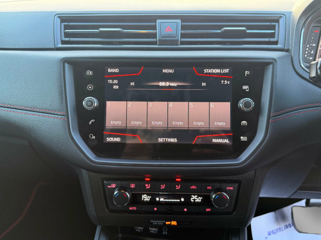 This 2020 SEAT Ibiza 1.0 Ibiza FR Sport TSi Semi-Auto 5dr Hatchback is currently available for £13,495 in Manchester with Petrol engine and Automatic gearbox. For more information or to arrange a viewing, click here to send us an email using form below.