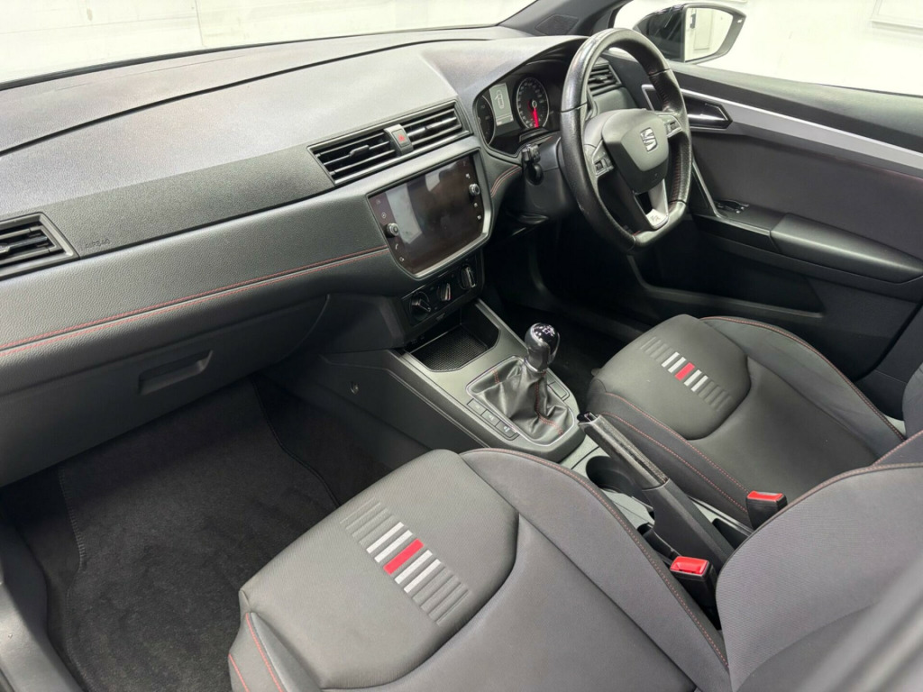 This one owner vehicle is a Euro 6 compliant 1.0 litre petrol model, presented in the sporty FR trim. It comes equipped with essential features such as air conditioning, a Bluetooth audio streaming system with handsfree capability, and auto headlights. For enhanced visibility and a modern look, it also features full LED headlights. Connectivity is made simple with Full Link smartphone integration, supporting both Android Auto and Apple CarPlay. A 3 month warranty is included for your added security.The SEAT Ibiza TSI FR stands out with its impressive fuel economy, achieving up to 52 miles per gallon, which is excellent for its class and will help keep running costs down. Furthermore, you'll appreciate the large boot space, providing ample room for shopping, luggage, or sports equipment. These highlights demonstrate how this Ibiza offers a practical and economical driving experience.. 17in Alloy Wheels - Dynamic, Air Conditioning, Alarm - Perimeter and Interior Monitoring with Back-up Horn and Tow-Away Protection, Anti-Lock Braking System - ABS, Auto Dimming Rear View Mirror, Auto-Headlights, Black Window Trim, Bluetooth Audio Streaming with Handsfree System, Brilliant Black Painted Door Mirrors, Coming Home - Leaving Home Headlight Function, Cruise Control, DAB- Digital Audio Broadcasting, Dark Tinted Rear Windows, Digital Clock, Door and Steering Wheel Decorative Inserts - Ice Metal, Driver Sunvisor with Mirror and Card Holder, Driver and Front Passenger Airbags, Dust and Pollen Filter, ESC - Electronic Stability Control with EBA - Emergency Brake Assist, Electric Front Windows, Electrically Adjustable Folding and Heated Door Mirrors, Electro-Mechanical Power Steering - Speed-Sensitive, Electronic Engine Immobiliser, Emergency Tyre Repair Kit, Exclusive FR Rear Bumpers, Exhaust Pipe - Twin, Front Assist, Front Courtesy Light with Front Reading Lights, Front Fog Lights with Cornering Function, Front Passenger Airbag De-Activation, Front Side and Curtain Airbags, Front and Rear Seatbelt Reminders, Full LED Headlights, Full Link Smartphone Integration, Gearshift Indicator, Height Adjustable Front Passenger Seat, Height-Adjustable Drivers Seat, Hill Hold Control, ISOFIX Points in Outer Rear Seats with Top Tether Anchorage Points, Instrument Lighting with Brightness Control, LED Daytime Running Lights, LED Taillights, Leather Handbrake, Leatherette Dashboard, Lights Left On Warning Buzzer, Locking Wheel Bolts, Low Fuel Warning Light, Multi Coloured Ambient Lighting, Multi-Collision Braking System, Navigation System, Outside Temperature Gauge, Passenger Sunvisor with Mirror, Perforated Leather Flat-Bottomed Steering Wheel with Red Stitching and FR Logo with Leather Gear Knob, RPM Counter, Radiator Grille Frame in Chrome, Rain Sensing Wipers, Rear Fog Light, SEAT Drive Profile, SEAT Logo Tailgate Release, Six Speakers, Split Folding Rear Seats - 60-40, Sports Suspension, Third Rear Headrest, Three-Point Seatbelts on All Rear Seats, Tiredness Recognition System, Trip Computer, Two Height-Adjustable Front and Rear Headrests, Tyre Pressure Monitoring System. Full service history