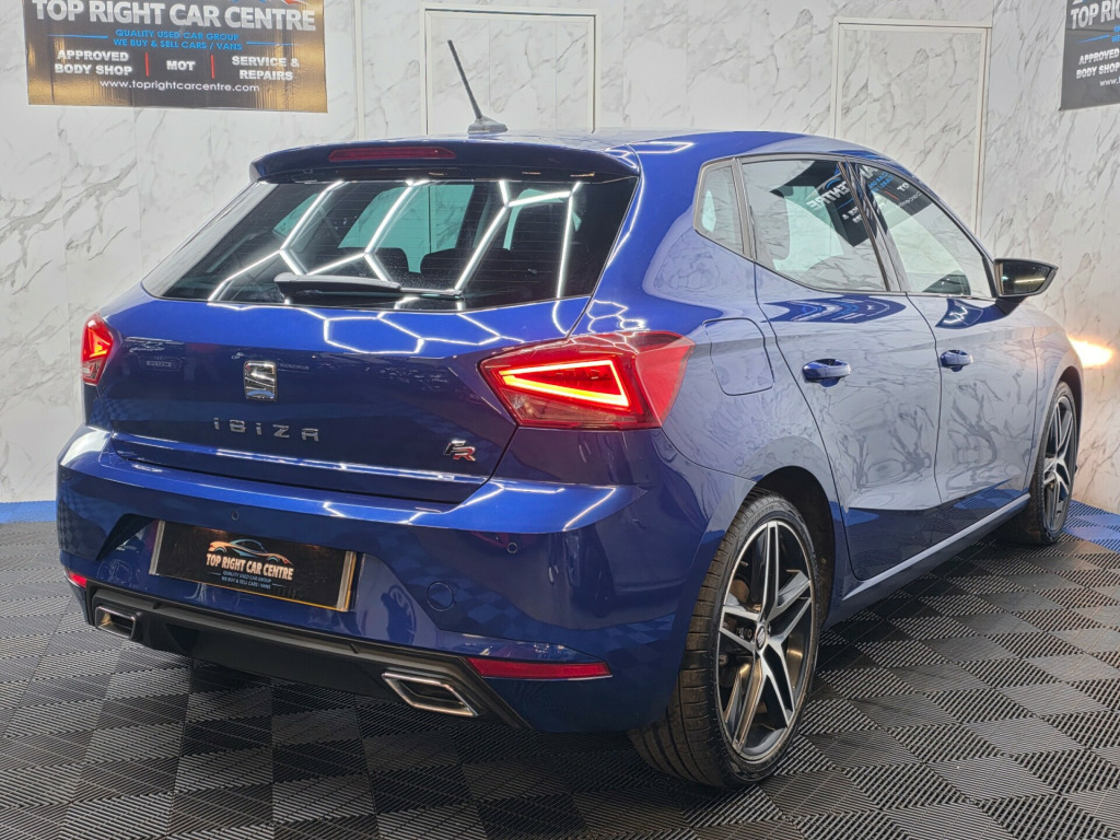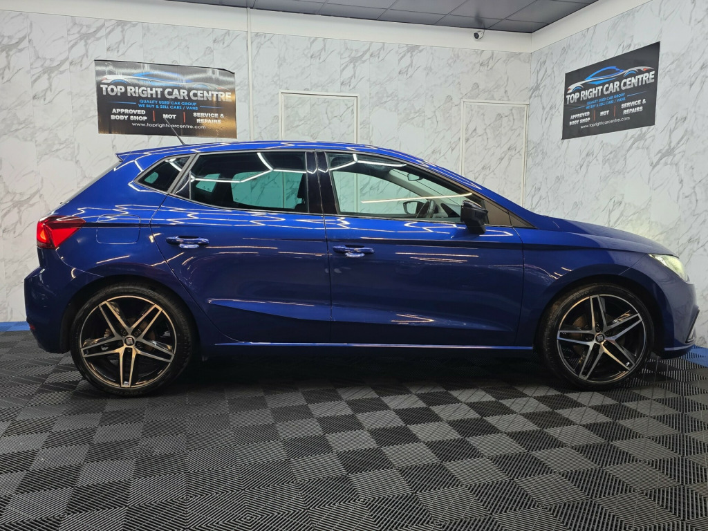*** NIL DEPOSIT FINANCE AVAILABLE *** ***HPI CLEAR ***6 MONTHS WARRANTY AND BREAKDOWN COVER WITH THIS CAR.2 former keepers only. 70k miles only.FULL SERVICE HISTORY. FULL MOT on sale. Fresh service just been done and front discs pads replaced.This stunning SEAT Ibiza has been sourced directly from its Previous Private Owner. Every now and again, a car comes into stock at Top Right Car Centre, that you cannot help but fall in love with.Top Spec FR has massive centre touch screen SATNAV, has mirror link, apply car play, android auto, 4 driving modes, ambient lights. daytime running LED lights, electric windows, privacy glass, parking sensors, cruise control. Clean Car in Blue colour. Great comfortable car. Well maintained body work and interior. Bullet fast response. Checked by our engineers. Professionally detailed. Good reliable runner. Price checked. We've just completed a full pre delivery inspection on the car to give you complete piece of mind. central locking key. Smooth gear box. Clean alloy wheels. Excellent condition tyres. Multimedia has Bluetooth DABRADIO mp3 2xUSB AUX. Run with no fault strong reliable engine. Good fuel economy. First to see will buy it this well looked after car. p/x welcome. We do price our cars/van as competitively as possible and because of this we sell cars/vans very quickly. BE QUICK! MISS IT - MISS OUT. With so much variety, quality and highly rated award winner 2024, it is no wonder we are super busy all the time. Why Buy From Top Right Car Centre?Thoroughly Inspected Cars. All our vehicles are quality-checked and HPi verified, giving you peace of mind with every purchase.Multi Award-Winning Family Business. As a trusted family-run business, we have earned awards for our customer service and expertise.Hand-Picked, Quality Cars. We carefully select only the finest cars with full service histories, so you can drive away with confidence.Test Driven for Assurance. Each car is personally test-driven by our team, ensuring it meets our high standards.Delivery Service available. in alloy wheels - dynamic, body-coloured door handles, brilliant black painted door mirrors, dark tinted rear windows, electric windows - front with one-touch and anti-squeeze, electrically folding door mirrors, emergency tyre repair kit, exclusive fr rear bumpers, exhaust pipe - twin, locking wheel bolts, radiator grille frame in chrome, seat logo tailgate release, 6 litre glovebox, active front head restraints, air conditioning, auto dimming rear view mirror, convenience pack, dimming interior rear view mirror, driver pack, driver sunvisor with mirror and card holder, driver and passengers sunvisors, dust and pollen filter, exclusive flat-bottomed fr steering wheel and interior details, front courtesy light with front and rear reading lights, height adjustable front passenger seat, height and reach adjustable steering wheel, height-adjustable drivers seat, illuminated boot, instrument lighting with brightness control, leather handbrake, leather steering wheel and gear knob, multi coloured ambient lighting, rain sensing wipers, rear fog light, seats - sports fr, split folding rear seats - 60-40, third rear headrest, two cup holders in cabin, two height-adjustable front and rear headrests, alarm - perimeter and interior monitoring with back-up horn and tow-away protection, anti-lock braking system - abs, automatic warning lights, child locks on rear doors, driver and front passenger airbags, esc - electronic stability control with eba - emergency brake assist, electronic engine immobiliser, front assist, front passenger airbag de-activation, front side and curtain airbags, front and rear seatbelt reminders, hill hold control, isofix points in outer rear seats with top tether anchorage points, multi-collision braking system, remote central locking with deadlocks, three-point seatbelts on all rear seats, two folding remote keys with remote window opening-closing function, visible vin in windscreen, anti-theft roof antenna, bluetooth audio streaming with handsfree system, dab - digital radio, fm-am radio, full link, media system plus, navigation system, six speakers, auto-headlights, coming home - leaving home headlight function, front fog lights with cornering function, led daytime running lights, led taillights, lights left on warning buzzer, twin-bulb front halogen headlights with electrical adjustment, cruise control, digital clock, electro-mechanical power steering - speed-sensitive, gearshift indicator, low fuel warning light, outside temperature gauge, rpm counter, seat drive profile, sports suspension, tiredness recognition system, trip computer, tyre pressure monitoring system