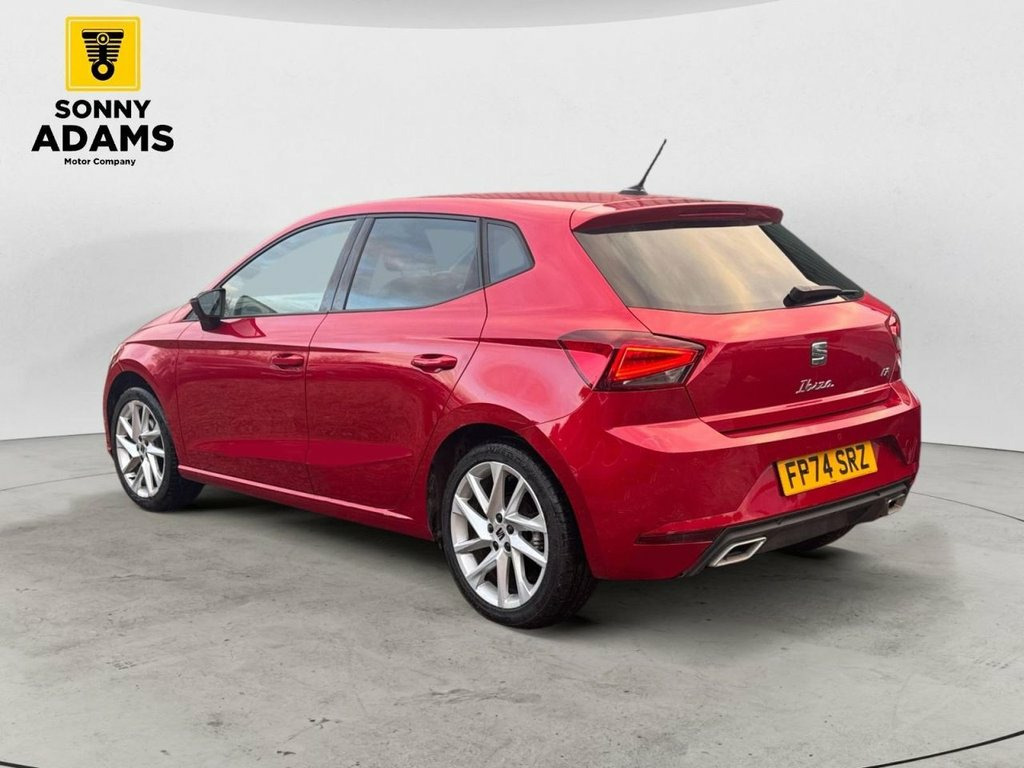 The SEAT Ibiza 1.0 TSI FR is a sporty and stylish hatchback, combining performance, technology, and practicality in a compact package. Powered by a 115 PS petrol engine with DSG automatic transmission, it delivers smooth, responsive driving while meeting Euro 6 emissions standards. Designed to stand out, this Ibiza features 17-inch Brilliant Silver alloy wheels, FR exterior styling, full LED automatic headlights with dynamic range control, LED daytime running lights, LED rear lights, dark-tinted rear windows, and red-accented air vents. It also offers practicality with split-folding 60-40 rear seats, rear parking sensors, electric folding and heated door mirrors, rain-sensing wipers, and an emergency tyre repair kit. Inside, the cabin combines comfort and connectivity. Highlights include an 8-inch digital cockpit, 9.2-inch navigation system, dual-zone climate control with combination filter, ambient interior lighting, sports seats, Nappa leather multifunction flat-bottomed sports steering wheel, Bluetooth audio streaming, Full Link smartphone integration, and height-adjustable front seats and headrests. Safety and convenience are well covered, with front, side, and curtain airbags, front passenger airbag deactivation, ISOFIX child seat anchors, three-point seatbelts on all rear seats, hill hold control, tyre pressure monitoring system, and SEAT Connect with remote access and safety features. This SEAT Ibiza FR offers a perfect balance of sporty driving dynamics, advanced 17in Alloy Wheels - Brilliant Silver, 9.2in Navigation System, Alarm and Electronic Engine Immobiliser, Auto Dimming Rear View Mirror, Bluetooth Audio Streaming with Handsfree, Chrome Interior Detailing - Black Headli, Coloured Air Vent - Red, Cruise Control and Speed Limiter, Dark Tinted Rear Windows, Digital Cockpit - 8in, Dual Zone Climate Control with Combinati, Electric Front Windows, Electric Rear Windows, Electrically Adjustable Folding and Heat, Emergency Tyre Repair Kit, FR Exterior Styling, Fog Lights - Front and Rear, Front Driver and Passenger Side Airbags , Front Reading Lights, Full LED Automatic Headlights with Dynam, Full Link Smartphone Integration, Height Adjustable Front S