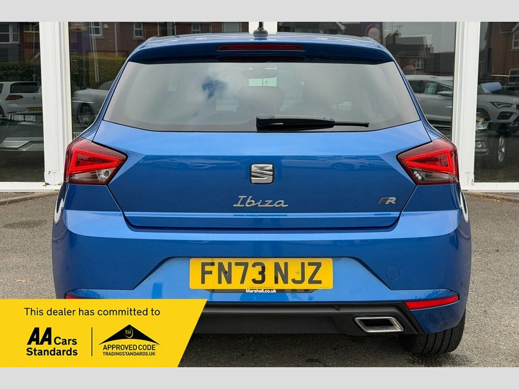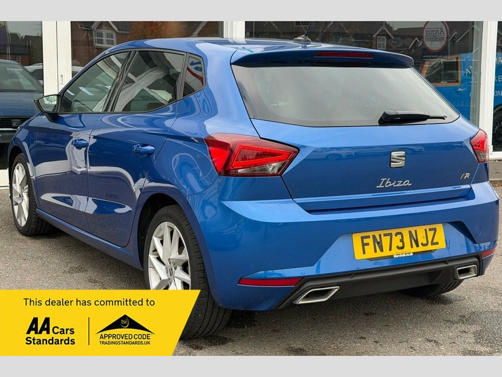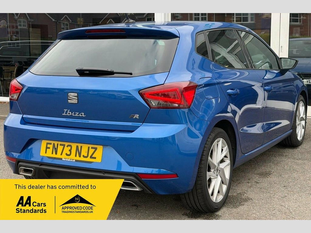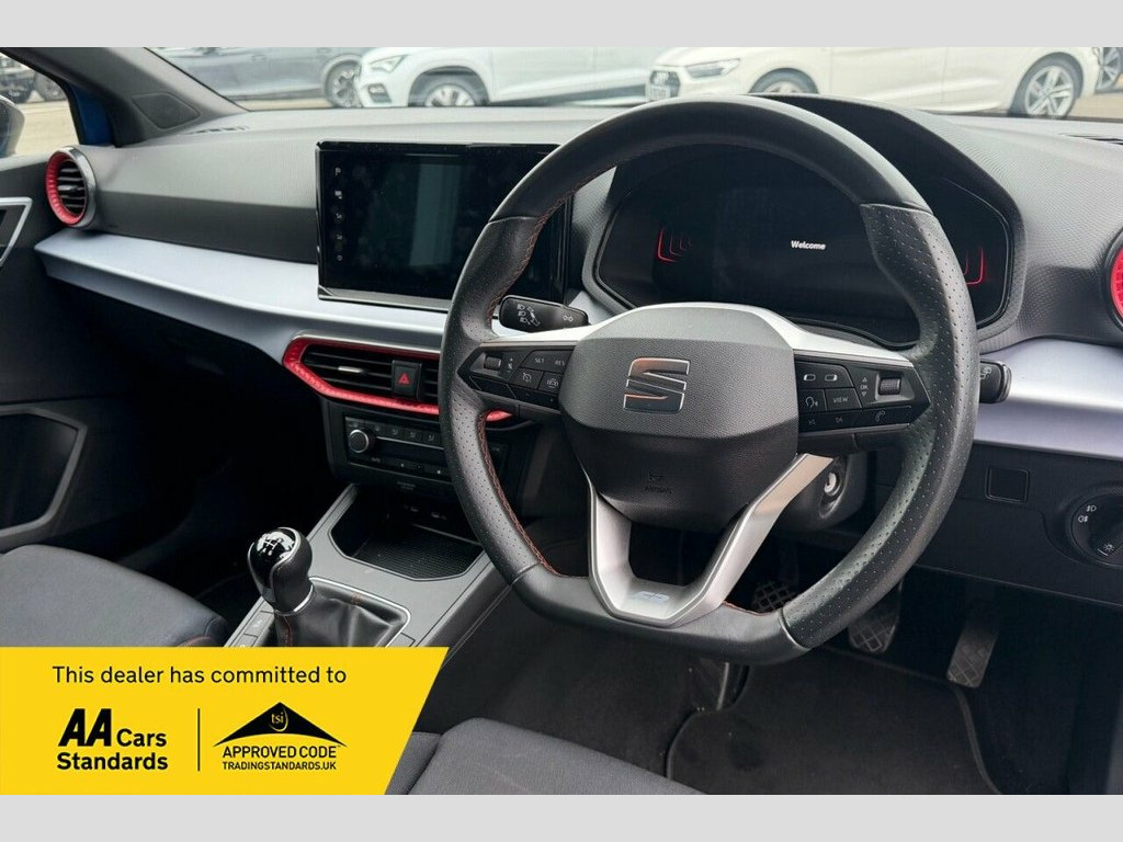 This 2023 SEAT Ibiza TSI FR is a superb example, boasting a full service history and having had only one owner from new. This stylish hatchback features a responsive 1.0 litre petrol engine, meeting Euro 6 emissions standards and offering low CO2 emissions. The FR trim level enhances its appeal with a sporty design and a host of practical features. Inside, you'll find Dual Zone Climate Control to keep everyone comfortable, and the Safety and Driving Pack includes rear parking assistance for added peace of mind. The Full LED Automatic Headlights provide excellent visibility, while Full Link Smartphone Integration with Android Auto and Apple CarPlay keeps you connected on the go. Enjoy your music and calls with the Bluetooth Audio Streaming and Handsfree System. The performance of this Ibiza is also noteworthy, achieving 0 to 60 miles per hour in just 10.3 seconds, demonstrating its agility. These attributes, combined with its valid MOT until September 2026 and a 3 month warranty, indicate that this vehicle offers a superior driving experience and excellent value compared to similar models. This well maintained and feature packed Ibiza is ready for its next adventure. ========= Specification: 9.2in Navigation System Digital Cockpit – 8in Apple CarPlay and Android Auto Full LED Headlights Cruise Control SEAT Drive Profile + ECO Mode FR Sports Styling Dual Zone Climate Control Sports Suspension Rear View Auto-Dim Mirror Nappa Leather Sport Wheel Safety & Drivin 17in Alloy Wheels - Brilliant Silver, 9.2in Navigation System, Alarm and Electronic Engine Immobiliser, Anti-Lock Braking System - ABS, Anti-Theft Wheel Bolts, Auto Dimming Rear View Mirror, Bluetooth Audio Streaming with Handsfree, Chrome Interior Detailing - Black Headli, Cloth - Navy and Black, Coloured Air Vent - Red, Cruise Control, Dark Tinted Rear Windows, Digital Cockpit - 8in, Driver Sunvisor with Mirror and Card Hol, Dual Zone Climate Control, Electric Front Windows, Electric Rear Windows, Electrically Adjustable Folding and Heat, Emergency Tyre Repair Kit, Fog Lights - Front and Rear, FR Exterior Styling, Front and Rear Seatbelt Reminders, Front Driver and Passenger Side Airbags ,