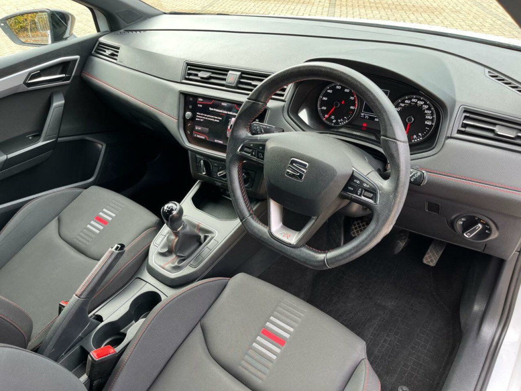 . 17in Alloy Wheels - Dynamic, Air Conditioning, Alarm - Perimeter and Interior Monitoring with Back-up Horn and Tow-Away Protection, Anti-Lock Braking System - ABS, Auto Dimming Rear View Mirror, Auto-Headlights, Black Window Trim, Bluetooth Audio Streaming with Handsfree System, Brilliant Black Painted Door Mirrors, Coming Home - Leaving Home Headlight Function, Cruise Control, DAB- Digital Audio Broadcasting, Dark Tinted Rear Windows, Digital Clock, Door and Steering Wheel Decorative Inserts - Ice Metal, Driver Sunvisor with Mirror and Card Holder, Driver and Front Passenger Airbags, Dust and Pollen Filter, ESC - Electronic Stability Control with EBA - Emergency Brake Assist, Electric Front Windows, Electrically Adjustable Folding and Heated Door Mirrors, Electro-Mechanical Power Steering - Speed-Sensitive, Electronic Engine Immobiliser, Emergency Tyre Repair Kit, Exclusive FR Rear Bumpers, Exhaust Pipe - Twin, Front Assist, Front Courtesy Light with Front Reading Lights, Front Fog Lights with Cornering Function, Front Passenger Airbag De-Activation, Front Side and Curtain Airbags, Front and Rear Seatbelt Reminders, Full LED Headlights, Full Link Smartphone Integration, Gearshift Indicator, Height Adjustable Front Passenger Seat, Height-Adjustable Drivers Seat, Hill Hold Control, ISOFIX Points in Outer Rear Seats with Top Tether Anchorage Points, Instrument Lighting with Brightness Control, LED Daytime Running Lights, LED Taillights, Leather Handbrake, Leatherette Dashboard, Lights Left On Warning Buzzer, Locking Wheel Bolts, Low Fuel Warning Light, Multi Coloured Ambient Lighting, Multi-Collision Braking System, Navigation System, Outside Temperature Gauge, Passenger Sunvisor with Mirror, Perforated Leather Flat-Bottomed Steering Wheel with Red Stitching and FR Logo with Leather Gear Knob, RPM Counter, Radiator Grille Frame in Chrome, Rain Sensing Wipers, Rear Fog Light, SEAT Drive Profile, SEAT Logo Tailgate Release, Six Speakers, Split Folding Rear Seats - 60-40, Sports Suspension, Third Rear Headrest, Three-Point Seatbelts on All Rear Seats, Tiredness Recognition System, Trip Computer, Two Height-Adjustable Front and Rear Headrests, Tyre Pressure Monitoring System, Nevada White, FR Cloth - Nora Black. Full service history