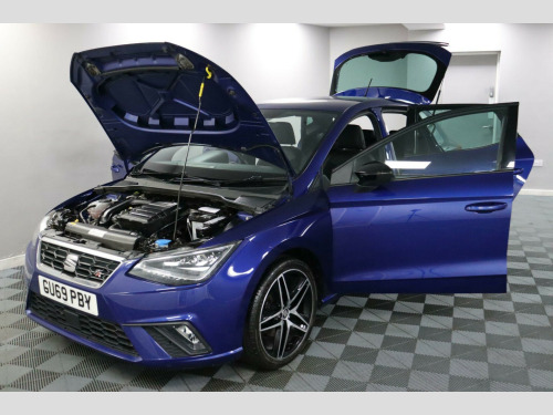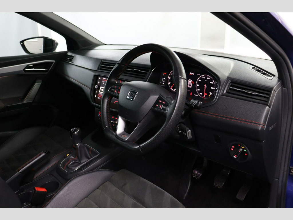 GU69PBY. The SEAT Ibiza has been one of SEAT’s most popular small cars for years, known for being fun to drive, roomy for its size and good-looking without trying too hard. This 1.0 TSI FR Sport keeps that reputation going, bringing Low Mileage, a Bigger Boot and the sportier feel that comes with the FR Sport trim.A 10.1-Inch Colour Touchscreen runs the Navigation System, Apple CarPlay, Android Auto, DAB and Bluetooth. A Digital Cockpit replaces traditional dials with a clean digital display, and Dual Zone Climate Control keeps the temperature settled.Drive Mode Select gives Eco, Normal, Sport and Individual settings, so drivers can pick the feel they prefer. Stop/Start helps with fuel use around town, and Front Assist adds reassurance in traffic. This example also includes Rear Parking Sensors, a rare extra on the Ibiza FR Sport.Hill Hold Control helps on steeper junctions, and Cruise Control with Speed Limiter supports steady motorway driving.Reserve now and book a test drive.This car comes with a Good Service History (5 records), a new 12 month MOT with no advisories, a clear HPI report, two keys, and verified mileage for peace of mind.Finance is available, and we can provide a personalised video on request. Please note that some features (e.g., Navigation/CarPlay) may require an active subscription. Spec details can vary, so just ask if you’d like us to confirm anything.For more info or a finance quote, call ☎️ 0113 257 00 00.. Navigation System, Cruise Control and Speed Limiter, DAB- Digital Audio Broadcasting, Apple CarPlay - Android Auto, Front Assist, Digital Cockpit, Dual Zone Climate Control, Auto Dimming Rear View Mirror, Stop/Start, Electrically Adjustable Folding and Heated Door Mirrors, Bluetooth Audio Streaming with Handsfree System, Dimming Interior Rear View Mirror, Hill Hold Control, 18in Alloy Wheels - Performance - Bi-Coloured Machined, ISOFIX Points in Outer Rear Seats with Top Tether Anchorage Points, 10.1in Colour Touchscreen Infotainment System, Drive Mode Select - Eco, Normal, Sport and Individual, Rear Parking Sensors, Microsuede - Black with Red Stitching.