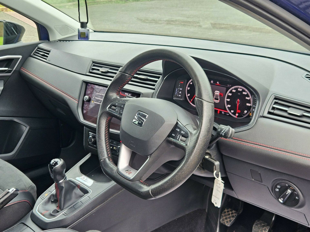 . 18in Alloy Wheels - Performance - Bi-Coloured Machined, 6 Litre Glovebox, Active Front Head Restraints, Alarm - Perimeter and Interior Monitoring with Back-up Horn and Tow-Away Protection, Anti-Lock Braking System - ABS, Anti-Theft Roof Antenna, Auto Dimming Rear View Mirror, Auto-Headlights, Automatic Warning Lights, Bluetooth Audio Streaming with Handsfree System, Body-Coloured Door Handles, Brilliant Black Painted Door Mirrors, Child Locks on Rear Doors, Coming Home - Leaving Home Headlight Function, Cruise Control, DAB- Digital Audio Broadcasting, Dark Tinted Rear Windows, Digital Clock, Digital Cockpit, Dimming Interior Rear View Mirror, Driver Sunvisor with Mirror and Card Holder, Driver and Front Passenger Airbags, Driver and Passengers Sunvisors, Dual Zone Climate Control, Dust and Pollen Filter, ESC - Electronic Stability Control with EBA - Emergency Brake Assist, Electric Windows - Front with One-Touch and Anti-Squeeze, Electrically Adjustable Folding and Heated Door Mirrors, Electro-Mechanical Power Steering - Speed-Sensitive, Electronic Engine Immobiliser, Emergency Tyre Repair Kit, Exclusive FR Rear Bumpers, Exclusive Flat-Bottomed FR Steering Wheel and Interior Details, Exhaust Pipe - Twin, FM-AM Radio, Front Assist, Front Courtesy Light with Front and Rear Reading Lights, Front Fog Lights with Cornering Function, Front Passenger Airbag De-Activation, Front Side and Curtain Airbags, Front and Rear Seatbelt Reminders, Full LED Headlights, Full Link Smartphone Integration, Gearshift Indicator, Height Adjustable Front Passenger Seat, Height and Reach Adjustable Steering Wheel, Height-Adjustable Drivers Seat, Hill Hold Control, ISOFIX Points in Outer Rear Seats with Top Tether Anchorage Points, Ice Metal Side Door Panels, Illuminated Boot, Instrument Lighting with Brightness Control, LED Daytime Running Lights, Leather Handbrake, Leather Steering Wheel and Gear Knob, Leatherette Dashboard, Lights Left On Warning Buzzer, Locking Wheel Bolts, Low Fuel Warning Light, Media System Plus, Multi Coloured Ambient Lighting, Multi-Collision Braking System, Navigation System, Outside Temperature Gauge, RPM Counter, Radiator Grille Frame in Chrome, Rain Sensing Wipers, Rear Fog Light, Remote Central Locking with Deadlocks, SEAT Drive Profile, SEAT Logo Tailgate Release, Seats - Sports FR, Six Speakers, Split Folding Rear Seats - 60-40, Sports Suspension, Third Rear Headrest, Three-Point Seatbelts on All Rear Seats, Tiredness Recognition System, Trip Computer, Two Cup Holders in Cabin, Two Folding Remote Keys with Remote Window Opening-Closing Function, Two Height-Adjustable Front and Rear Headrests, Tyre Pressure Monitoring System, USB Media Cable, Visible VIN in Windscreen, Microsuede - Black with Red Stitching. Part service history