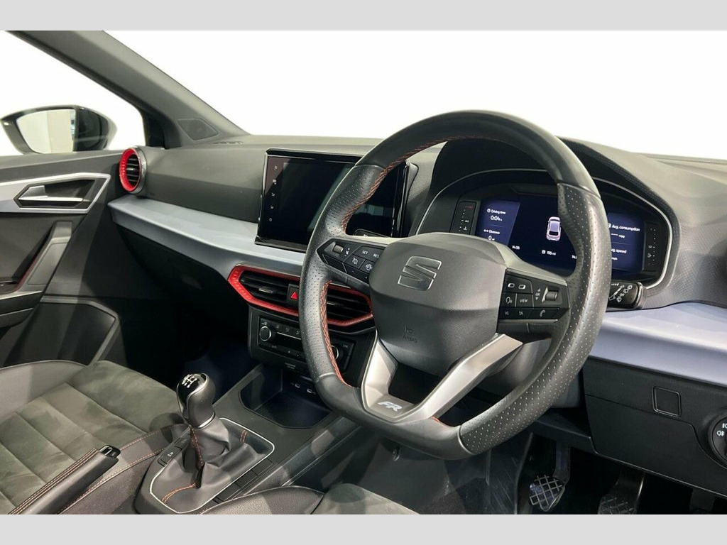This 2023 SEAT Ibiza TSI FR Sport is a superb example, having had only one owner since new. This stylish hatchback boasts a 1.0 litre Euro 6 petrol engine, offering a blend of efficiency and performance. The FR Sport trim level ensures a dynamic driving experience, complemented by a generous boot space perfect for your everyday needs. Inside, you'll find a host of modern conveniences, including Bluetooth audio streaming with a handsfree system, dual zone climate control for personalised comfort, and Full Link smartphone integration which seamlessly connects your Android Auto or Apple CarPlay. The Safety and Driving Pack, featuring rear parking sensors, adds an extra layer of confidence, while the full LED automatic headlights provide excellent visibility. The SEAT Ibiza TSI FR Sport stands out with its impressive acceleration, reaching 0 to 60mph in just 10.3 seconds, demonstrating its responsive nature. Its low CO2 emissions also highlight its efficiency, making it a more environmentally conscious choice compared to many other vehicles in its class. This combination of a single owner, desirable FR Sport specification, and advanced features makes this 2023 Ibiza a compelling option for those seeking a well maintained and feature packed compact car. 18in Alloy Wheels - Performance Machined, 9.2in Navigation System, Alarm and Electronic Engine Immobiliser, Anti-Lock Braking System - ABS, Anti-Theft Wheel Bolts, Auto Dimming Rear View Mirror, Bluetooth Audio Streaming with Handsfree, Chrome Interior Detailing - Black Headli, Coloured Air Vent - Red, Cruise Control, Dark Tinted Rear Windows, Digital Cockpit - 10in, Driver Sunvisor with Mirror and Card Hol, Dual Zone Climate Control, Electric Front Windows, Electric Rear Windows, Electrically Adjustable Folding and Heat, Emergency Tyre Repair Kit, Fog Lights - Front and Rear, FR Exterior Styling, Front and Rear Seatbelt Reminders, Front Driver and Passenger Side Airbags , Front Reading Ligh