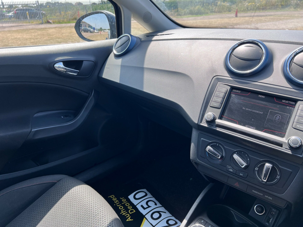 A.G Sons Motors Proud to present you this 2017 SEAT Ibiza 1.2 TSI 110 FR Technology 3dr has only 24073 miles on the clock and is a stylish hatchback perfect for city driving. This petrol car is ULEZ compliant and comes with 5 seats and 3 doors, making it practical for everyday use. With only 1 previous registered keeper, this car has been well-maintained and includes features such as a 'Lights On' Reminder warning buzzer, Bluetooth system, digital clock, low fuel warning light, and an outside temperature gauge. Whether you're cruising through town or hitting the motorway, this Ibiza is ready to take you there in style and comfort.As all our cars come with 12 months MOT, also warranty for extra peace of mind for our customers. As a business we are aiming to provide much needed support to our customers.Once a Cat S, however been restored and repaired to high standard with dealership parts.Please do not hesitate to contact us for any more information or viewing and test drive regarding this vehicle.For more details and all our different types of cars Visit us on (WWW.AGSONSMOTORS.CO.UK) Thank you , ip computer, abs, remote central locking, auxiliary input socket, led daytime running lights, 16'' Alloys