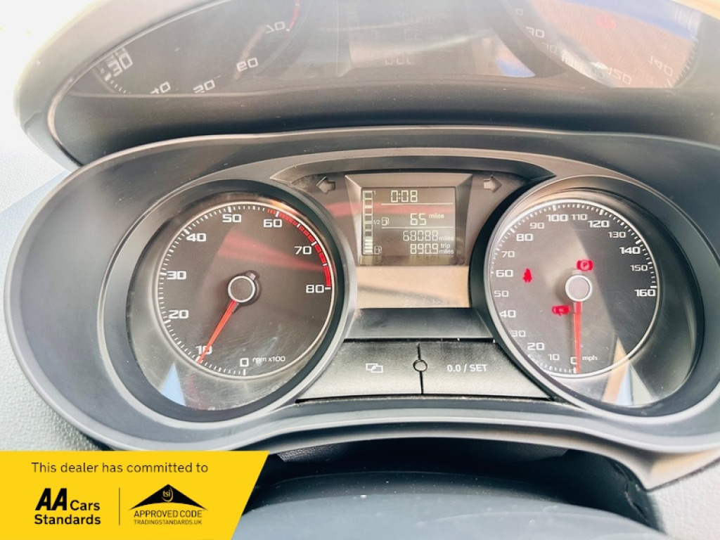 SEAT IBIZA 1.2 TSI 105 FR BLACK Hatchback DVSA MILEAGE-20k (13/01/2018), 25k (11/01/2019), 30k (23/10/2019), 35k (09/09/2020), 42k (07/09/2021), 50k (01/09/2022), 55k (29/08/2023), 62k (17/09/2024), 67k (20/08/2025).Air Conditioning Parking Sensor(s) Half Leather Trim Tyre Inflation Kit 17' Alloy Wheels 12V Power Socket, ABS, Air Conditioning, Bluetooth, Brake Assist, Central Locking, Cruise Control, Daytime Running Lights, ESP, Electric Windows, Front Airbags, Front Fog Lights, Heated Door Mirrors, Hill-Start Assist, LED Lights, Power Assisted Steering, Privacy/Tinted Glass, Radio, Safety Belts, Satellite Navigation, Side Impact Airbags, Sports Seats, Sports Suspension, Steering Wheel Controls, Surround Sound System