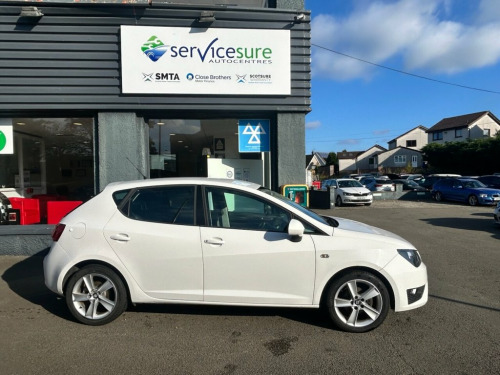 Here we have a cracking SEAT IBIZA 1.2 TSI FR Hatchback 5dr Petrol Manual Euro 5 (105 ps) which has done 59157 wIth a service history. The car will also come supplied with a 1 Year MOT, 1 Year Scot Sure Warranty and fully serviced . IF YOU WOULD LIKE TO ARRANGE A VIEWING or TESTDRIVE please CALL us on 01786813476, or MESSAGE us on Facebook -Search "KILGANNONMOTORS". ++ABOUT US - Kilgannon Motors is a family run business based in Bannockburn, Stirling, Established in 1990 By Jamie Kilgannon. We Carefully select our STOCK from sources we have built up over the years allowing us the confidence we have in our cars. All our cars undergo a full visual health check and a full HPI check before being offered for sale. We look forward to helping you in the process of buying your next car! Visit our website or visit us on facebook for a full range of our stock 10.7-litre Glovebox with Light, 12 Volt Power Supply in Centre Console, 16in Alloy Wheels - Cartago, Active Front Head Restraints, Air Conditioning, Airbags - Driver, Airbags - Front Passenger, Airbags - Head and Thorax, Alarm - Volumetric, Anti-Lock Braking System - ABS, Anti-Theft Roof Antenna, Automatic Warning Lights, AUX-In Port, Bluetooth Audio Streaming, Bluetooth Phone Connection, Body-Coloured Door Handles, Body-Coloured Door Mirrors, Bumpers - Exclusive FR Front and Rear, Child Locks on Rear Doors, Cornering Function, Cruise Control, Cupholders - x3, Daytime Running Lights, Deadlocks, Dust and Pollen Filter, Easy Entry, EBA - Electronic Brake Assist, Eco Trainer, Electric Windows -