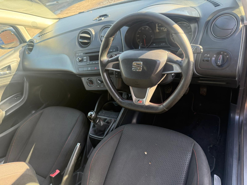 This 2014 SEAT Ibiza 1.2 TSI FR Hatchback with 87000 miles on the clock is a stylish and practical hatchback with a petrol engine and manual transmission. With 5 seats and 5 doors, this car is perfect for city driving and long journeys alike. It's also ULEZ compliant, meaning you can drive it in low emission zones without any hassle. The MOT is valid until 31/10/2026, giving you peace of mind for years to come. This Ibiza comes with features such as a 10.7-litre Glovebox with Light, Active Front Head Restraints, Air Conditioning, Cupholders - x3, and a Dust and Pollen Filter, making every drive comfortable and convenient. Don't miss out on this reliable and efficient hatchback. .7-litre glovebox with light, active front head restraints, air conditioning, cupholders - x3, dust and pollen filter, easy entry, head restraints - height adjustable front, height adjustable passenger seat with easy entry, height and reach adjustable steering wheel, height-adjustable drivers seat, illuminated boot, illuminated glovebox, leather gear knob, leather steering wheel, remote key - folding x2 with remote window functionality, roof light with map-reading lights, seat call, seats - pockets on front backrest, seats - split folding rear, seats - sports exclusive fr, steering wheel - audio controls, steering wheel - exclusive fr, storage - front door, sunvisors with passengers vanity mirror, two height-adjustable rear headrests, 12 volt power supply in centre console, aux-in port, anti-theft roof antenna, bluetooth audio streaming, bluetooth phone connection, fm-am radio, mp3 compatible cd player, pre-installation for seat portable system, sd card slot, seat portable system, satellite navigation system, six speakers, 16in alloy wheels - cartago, body-coloured door handles, body-coloured door mirrors, bumpers - exclusive fr front and rear, cornering function, electric windows - front with one-touch and anti-squeeze, electrically adjustable and heated door mirrors, emergency tyre repair kit, exclusive fr styling details, exhaust pipe - twin, locking wheel bolts, seat logo tailgate release, tinted windows, airbags - driver, airbags - front passenger, airbags - head and thorax, alarm - volumetric, anti-lock braking system - abs, automatic warning lights, child locks on rear doors, deadlocks, eba - electronic brake assist, electronic stability control - esc, front passenger airbag de-activation, front side airbags, hill hold control, isofix points with top tether on rear seats, rear wiper, remote central locking, seatbelt reminder - front, cruise control, eco trainer, electro-mechanical power steering - speed-sensitive, electronic differential lock system - xds, gearshift indicator, low fuel warning light, sports suspension, trip computer - advanced, tyre pressure monitoring system, daytime running lights, front fog lights with cornering function, headlights - coming home function, headlights - electric adjustment, led rear light clusters, led taillights, lights left on warning buzzer
