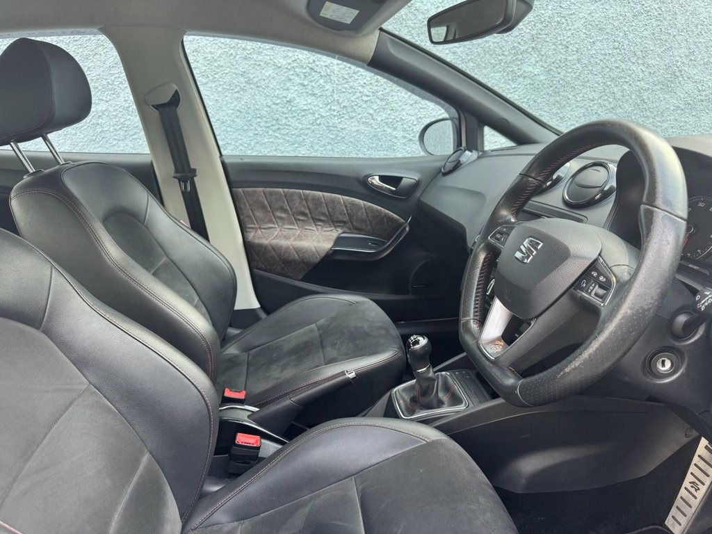 Beautiful Ibiza FR with a few extra cosmetic touches. Standard features include Sat Nav, Bluetooth, Cruise Control, FR Styling and more. Previous owner has also added some extra touches such as carbon fibre wrap on the wing mirrors and installed genuine Seat sideskirts as well as Alcantara seats and door card inserts. The car is also lowered on Bilstein B14 coilovers. Well maintained and cared for car. Privately owned by a member of staff for over 2 years. Only £35 a year Tax! 10.7-litre Glovebox with Light, 12 Volt Power Supply in Centre Console, 16in Alloy Wheels - Stratos, Active Front Head Restraints, Air Conditioning, Alarm - Perimeter and Interior Monitorin, Anti-Lock Braking System - ABS, Anti-Theft Roof Antenna, Auto-Headlights, Automatic Warning Lights, Bluetooth Audio Streaming with Handsfree, Body-Coloured Door Handles, Body-Coloured Door Mirrors, Bumpers - Body Coloured with Integrated , Bumpers - Exclusive FR Front and Rear, Child Locks on Rear Doors, Coming Home - Leaving Home Headlight Fun, Convenience Pack, Cruise Control, Cupholders - x3, Digital Audio Broadcasting - DAB - Digit, Digital Clock, Door Pockets - Front, Driver and Front Passenger Airb