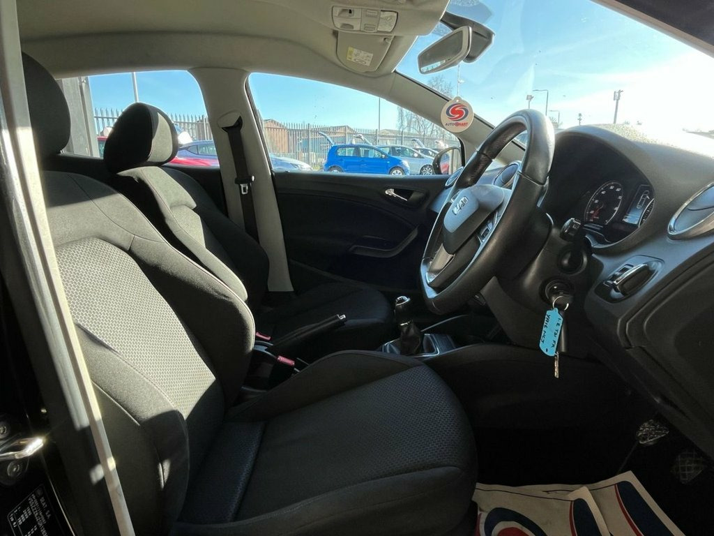 Moto Vation Car Sales are proud to offer this Seat Ibiza FR in a desirable colour- Black with FR interior. Low miles for the age- 83K and with only Two previous owners from new, it is clear it has been loved. Would make a great first time car with its low running and insurance costs. Supplied with a full years MOT and Service History attached- last in our Service Centre in 02/26! Bosting a great specification including a Flat Bottom Multi Functional Steering Wheel, AUX, USB, 16" Alloys, Auto Headlights, Sat Nav, Bluetooth, Remote Central Locking and Voice Command. Only £35 annual tax. Please confirm with a Sales Executive how many keys this vehicle comes with. All of our vehicles come with a 3 months Nationwide warranty and a 12 months basic AA breakdown cover. Please read our reviews! Please note- the above vehicle specification is confirmed and correct. The vehicle specification listed elsewhere may sometimes be inaccurate so please check with the Sales team when enquiring to clarify this prior to purchase. Satellite Navigation System, SEAT Sound System, Alcantara - Black, 10.7-litre Glovebox with Light, 12 Volt Power Supply in Centre Console, 16in Alloy Wheels - Stratos, Active Front Head Restraints, Air Conditioning, Alarm - Perimeter and Interior Monitorin, Anti-Lock Braking System - ABS, Anti-Theft Roof Antenna, Auto-Headlights, Automatic Warning Lights, Bluetooth Audio Streaming with Handsfree, Body-Coloured Door Handles, Body-Coloured Door Mirrors, Bumpers - Body Coloured with Integrated , Bumpers - Exclusive FR Front and Rear, Child Locks on Rear Doors, Coming Home - Leaving Home Headlight Fun, Convenience Pack, Cruise Control, Cupholders - x3, Digital Audio Broadcasting - DAB - Digit, D