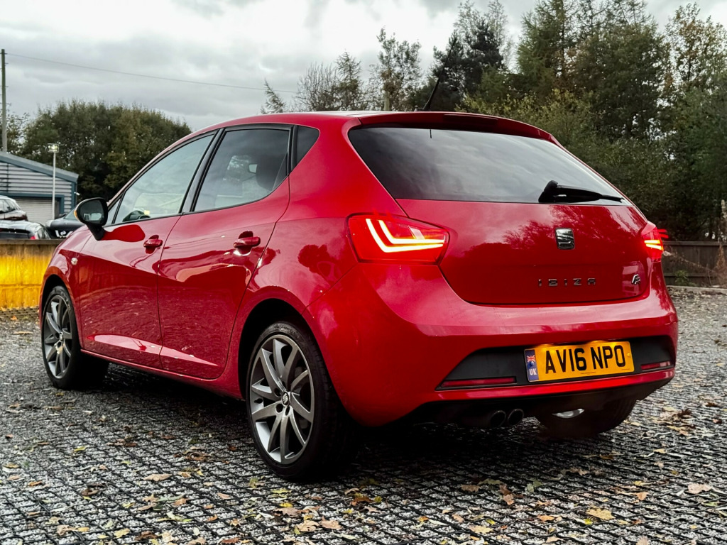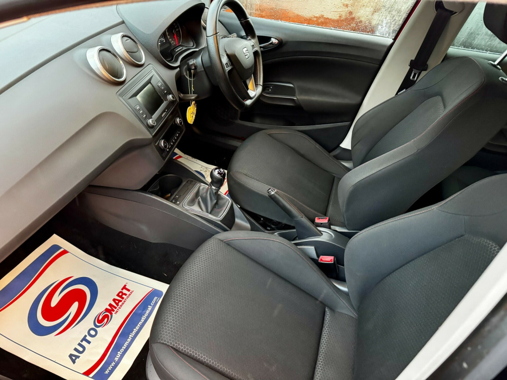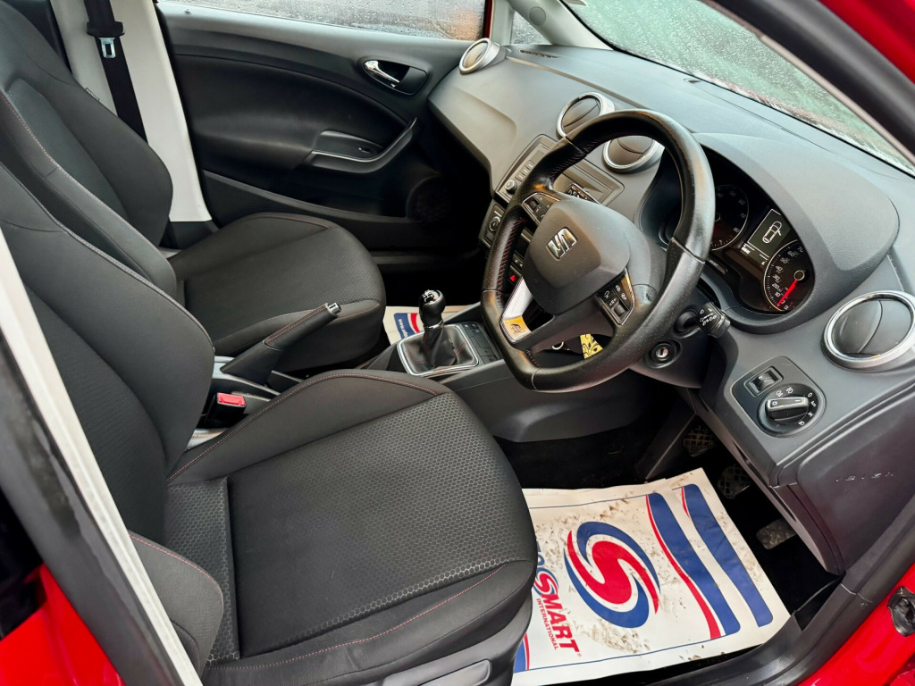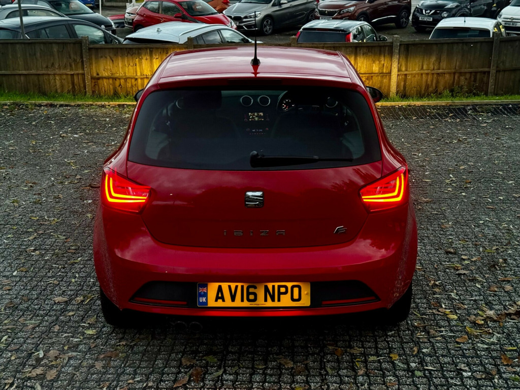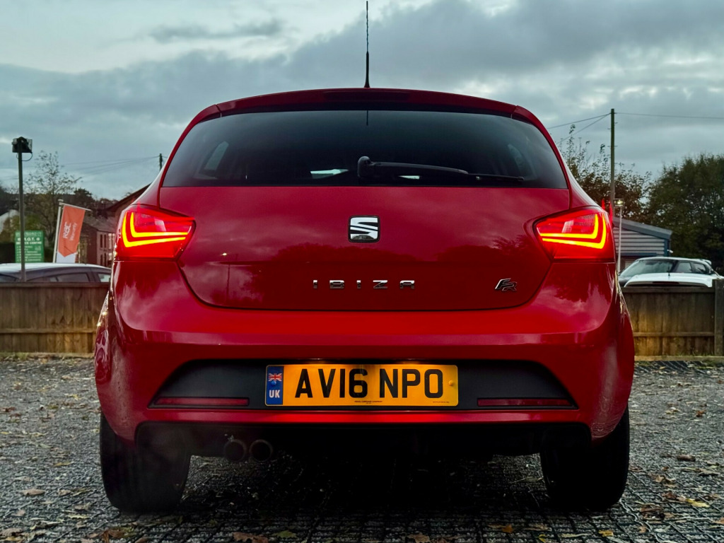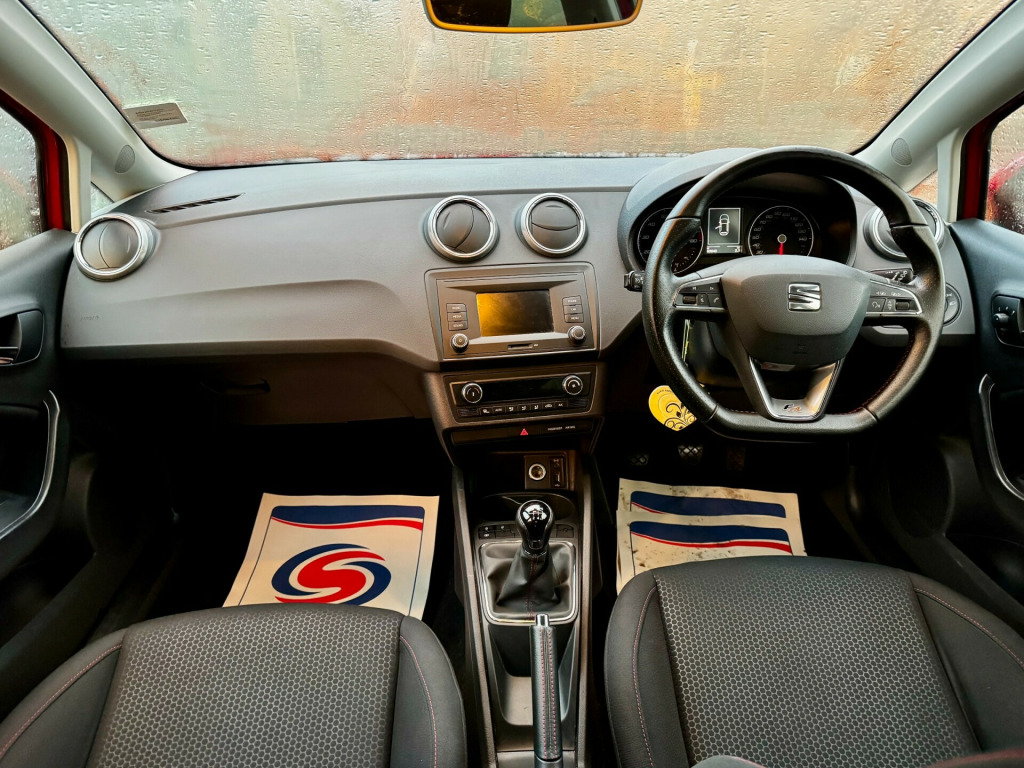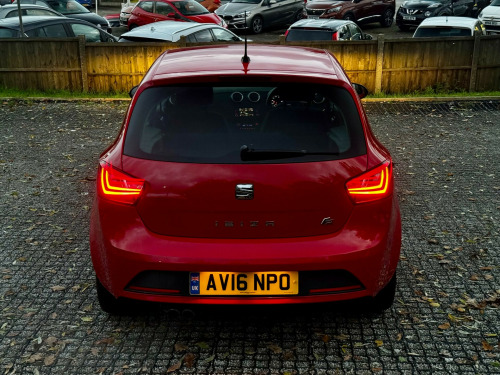SEAT IBIZA FR TSI - RED - SPORTY 5DR HATCHBACK?2016 (16) 1.2L Petrol 6-Speed Manual Emocin Red Gloss 5-Door Hatchback £35 Annual Road TaxA striking SEAT Ibiza FR TSI, finished in vibrant Emocin Red Gloss with FR styling and sporty 17'' Tagus alloy wheels. Combining lively turbocharged performance, low running costs, and modern design, this Ibiza is the perfect mix of style and substance. Key Features:- 1.2L TSI Petrol Engine - 6-Speed Manual- ULEZ Compliant - £35 Annual Road Tax- Emocin Red Gloss Paintwork- FR Specification - Sporty Styling- Dual-Zone Climate Control- 17'' Tagus Alloy Wheels- Dark Tinted Rear Windows- Touchscreen Media System- Bluetooth Phone & Audio Connectivity- Cruise Control & Trip Computer- Multi-Function Flat-Bottom Steering Wheel- Electric Windows & Mirrors- LED Daytime Running Lights- ISOFIX Seating- MOT Valid Until October 2026- Peace of Mind Included:- Fully Serviced & Ready to Go- RAC Warranty Included- 12 Months RAC Breakdown Assistance- Nationwide Delivery Available- Finance Options Available- Part-Exchange WelcomeCall Now to Arrange a Viewing or Test Drive?V5 Present - HPI Clear - Drives BeautifullyCondition commensurate with age and mileage - a clean, sporty Ibiza with great spec and performance.www.regalcar.co.uk volt power supply in centre console, aux-in port, anti-theft roof antenna, bluetooth audio streaming, bluetooth phone connection, digital audio broadcasting - dab - digital radio, fm-am radio, media system colour, media system touch, pre-installation for seat portable system, sd card slot, six speakers, touch screen - colour 5in, usb port, 16in alloy wheels - stratos, body-coloured bumpers, body-coloured door handles, body-coloured door mirrors, bumpers - exclusive fr front and rear, electric windows - front with one-touch and anti-squeeze, electrically folding door mirrors, emergency tyre repair kit, exhaust pipe - twin, gloss black b and c-pillars, locking wheel bolts, seat logo tailgate release, tinted windows, air conditioning, auto-dimming rear view mirror, convenience pack, cupholders - x3, door pockets - front, driver pack, driver and passengers sunvisors with covered mirrors, dust and pollen filter, exclusive fr interior styling details, front courtesy light, glovebox, head restraints - height adjustable front, height adjustable passenger seat, height and reach adjustable steering wheel, height-adjustable drivers seat, illuminated boot, illuminated glovebox, instrument lighting with brightness control, leather gear knob, rain sensing wipers, reading light - front map, remote key - folding x2 with remote window functionality, seats - pockets on front backrest, seats - sports fr, split folding rear seats - 60-40, steering wheel - audio controls, steering wheel - leather - flat bottomed - exclusive fr, two height-adjustable rear headrests, airbags - driver, airbags - front passenger, alarm - perimeter and interior monitoring with tow away protection, anti-lock braking system - abs, automatic warning lights, child locks on rear doors, deadlocks, eba - emergency brake assist, electronic engine immobiliser, electronic stability control - esc, front passenger airbag de-activation, front side airbags, hill hold control, isofix points with top tether on rear seats, multi-collision brake, rear wiper, remote central locking, seatbelt reminder - front, tcs - traction control system, visible vin in windscreen, cruise control, digital clock, electro-mechanical power steering - speed-sensitive, electronic differential lock system - xds, exterior temperature indicator, gearshift indicator, low fuel warning light, sports suspension, tiredness recognition system, trip computer, tyre pressure monitoring system, front fog lights with cornering function, headlights - auto-on - light sensor, headlights - coming home function, headlights - electric adjustment, headlights - halogen, led daytime running lights, led taillights, lights left on warning buzzer