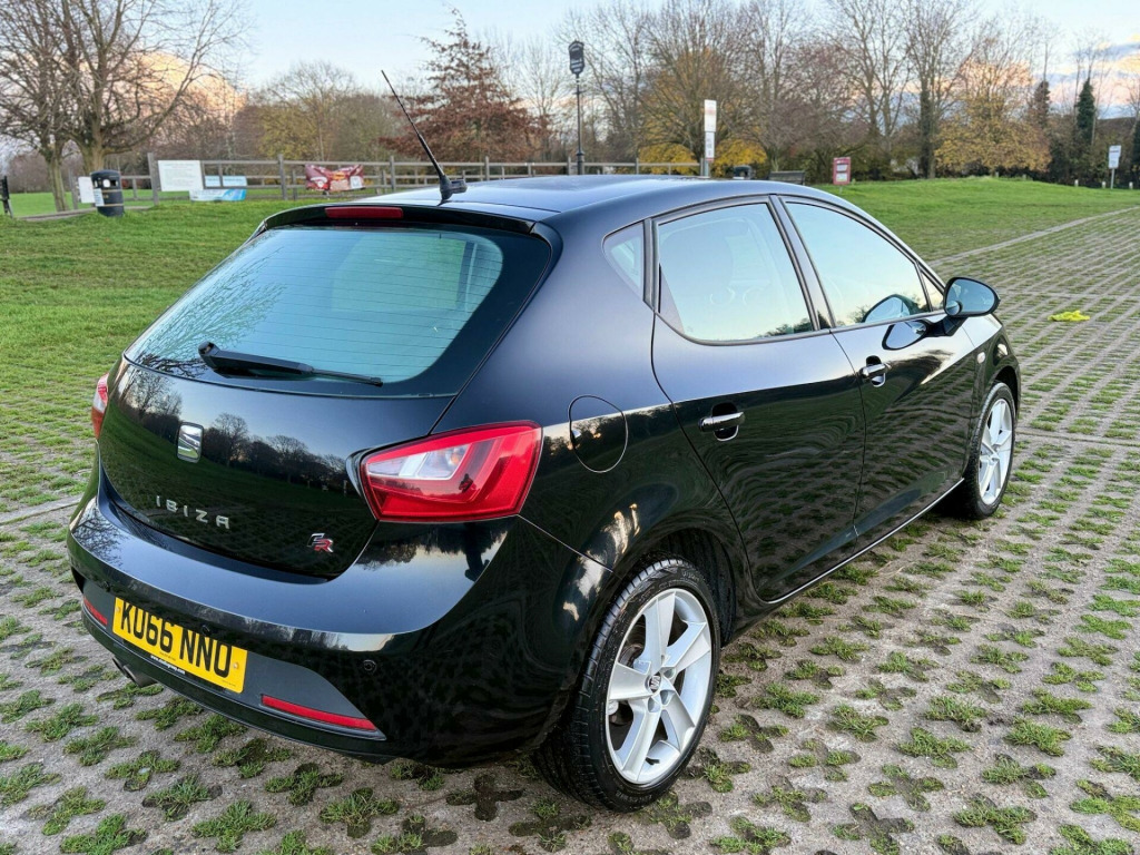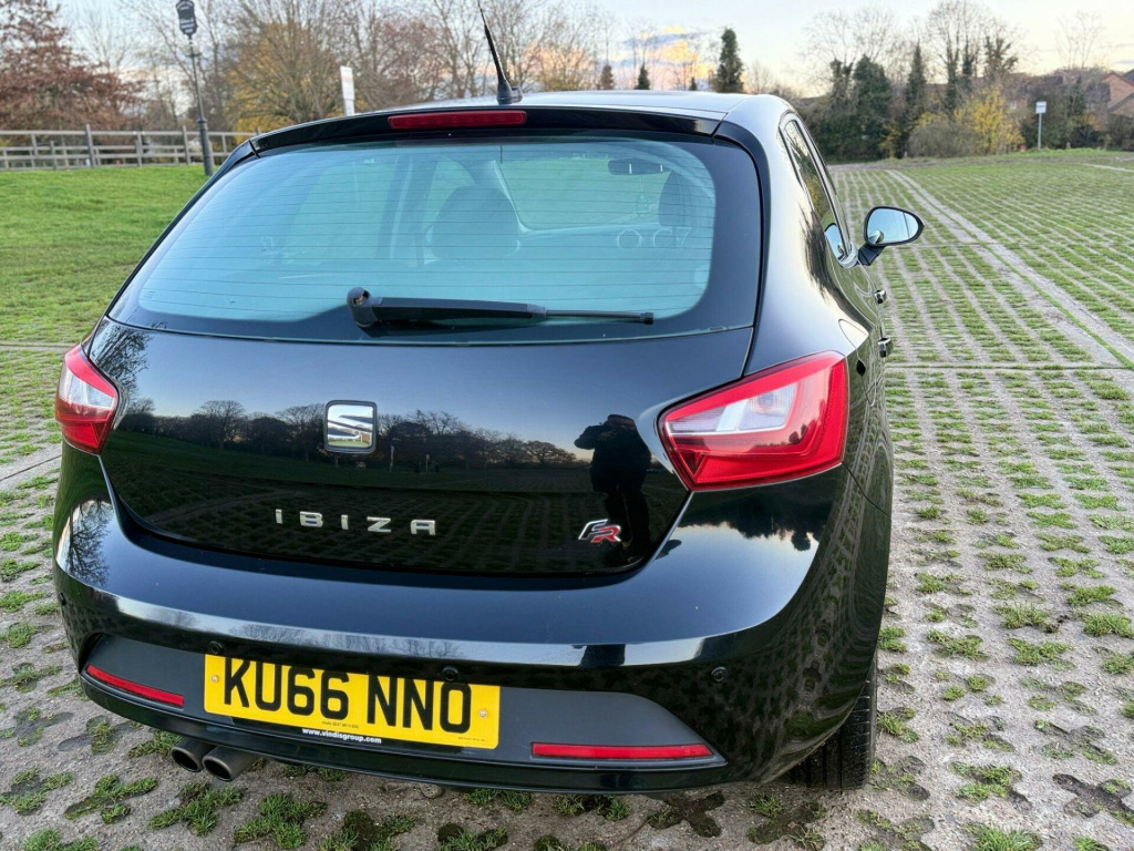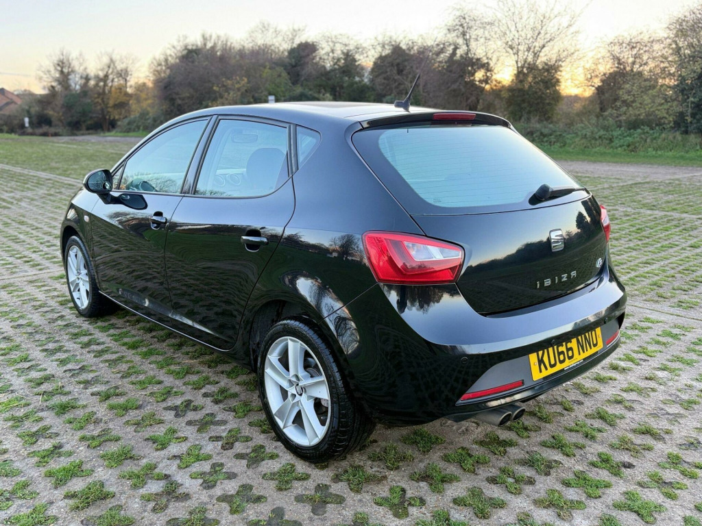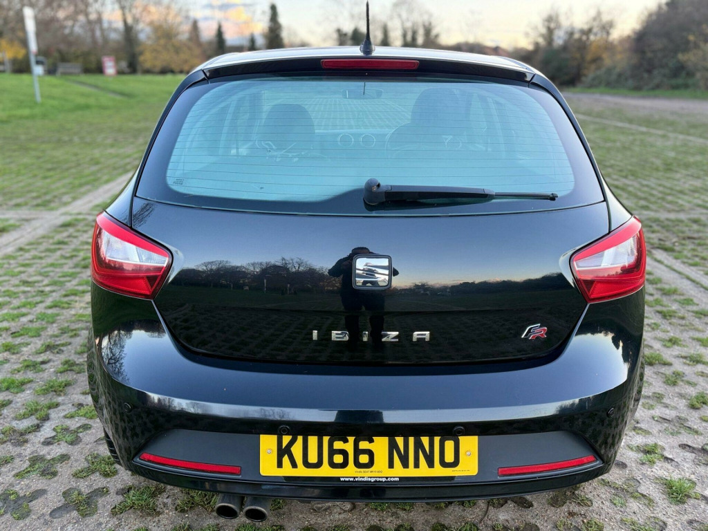 SEAT Ibiza 1.2 TSI FR Hatchback 5dr Petrol Manual Euro 6 (90 ps)KU66 NNO - 2016 (66) - 77,000 miles - Black - 2 Owners - ULEZ CompliantKey FeaturesFR Model - Sporty Styling & DriveSatellite NavigationAlloy WheelsAir ConditioningLow Insurance & Very EconomicalEuro 6 - ULEZ FreeHPI ClearWarranted MileageMechanical & ConditionMechanically spot-on and very well maintainedEngine pulls stronglyGearbox & suspension extremely smoothComfortable seats & solid build qualityDrives superbly throughoutJust buy and drive - no issues at allFirst to see will buyWarranty & Extras3 Months Warranty IncludedExtendable up to 2 YearsFresh Service & Fresh MOT IncludedFree Breakdown CoverNationwide Delivery AvailablePart Exchange Welcome volt power supply in centre console, 16in alloy wheels - stratos, aux-in port, air conditioning, airbags - driver, airbags - front passenger, alarm - perimeter and interior monitoring with tow away protection, anti-lock braking system - abs, anti-theft roof antenna, auto-dimming rear view mirror, automatic warning lights, bluetooth audio streaming, bluetooth phone connection, body-coloured bumpers, body-coloured door handles, body-coloured door mirrors, bumpers - exclusive fr front and rear, child locks on rear doors, convenience pack, cruise control, cupholders - x3, deadlocks, digital audio broadcasting - dab - digital radio, digital clock, door pockets - front, driver pack, driver and passengers sunvisors with covered mirrors, dust and pollen filter, eba - emergency brake assist, electric windows - front with one-touch and anti-squeeze, electrically folding door mirrors, electro-mechanical power steering - speed-sensitive, electronic differential lock system - xds, electronic engine immobiliser, electronic stability control - esc, emergency tyre repair kit, exclusive fr interior styling details, exhaust pipe - twin, exterior temperature indicator, fm-am radio, front courtesy light, front fog lights with cornering function, front passenger airbag de-activation, front side airbags, gearshift indicator, gloss black b and c-pillars, glovebox, head restraints - height adjustable front, headlights - auto-on - light sensor, headlights - coming home function, headlights - electric adjustment, headlights - halogen, height adjustable passenger seat, height and reach adjustable steering wheel, height-adjustable drivers seat, hill hold control, isofix points with top tether on rear seats, illuminated boot, illuminated glovebox, instrument lighting with brightness control, led daytime running lights, led taillights, leather gear knob, lights left on warning buzzer, locking wheel bolts, low fuel warning light, media system colour, media system touch, multi-collision brake, pre-installation for seat portable system, rain sensing wipers, reading light - front map, rear wiper, remote central locking, remote key - folding x2 with remote window functionality, sd card slot, seat logo tailgate release, seatbelt reminder - front, seats - pockets on front backrest, seats - sports fr, six speakers, split folding rear seats - 60-40, sports suspension, steering wheel - audio controls, steering wheel - leather - flat bottomed - exclusive fr, tcs - traction control system, tinted windows, tiredness recognition system, touch screen - colour 5in, trip computer, two height-adjustable rear headrests, tyre pressure monitoring system, usb port, visible vin in windscreen