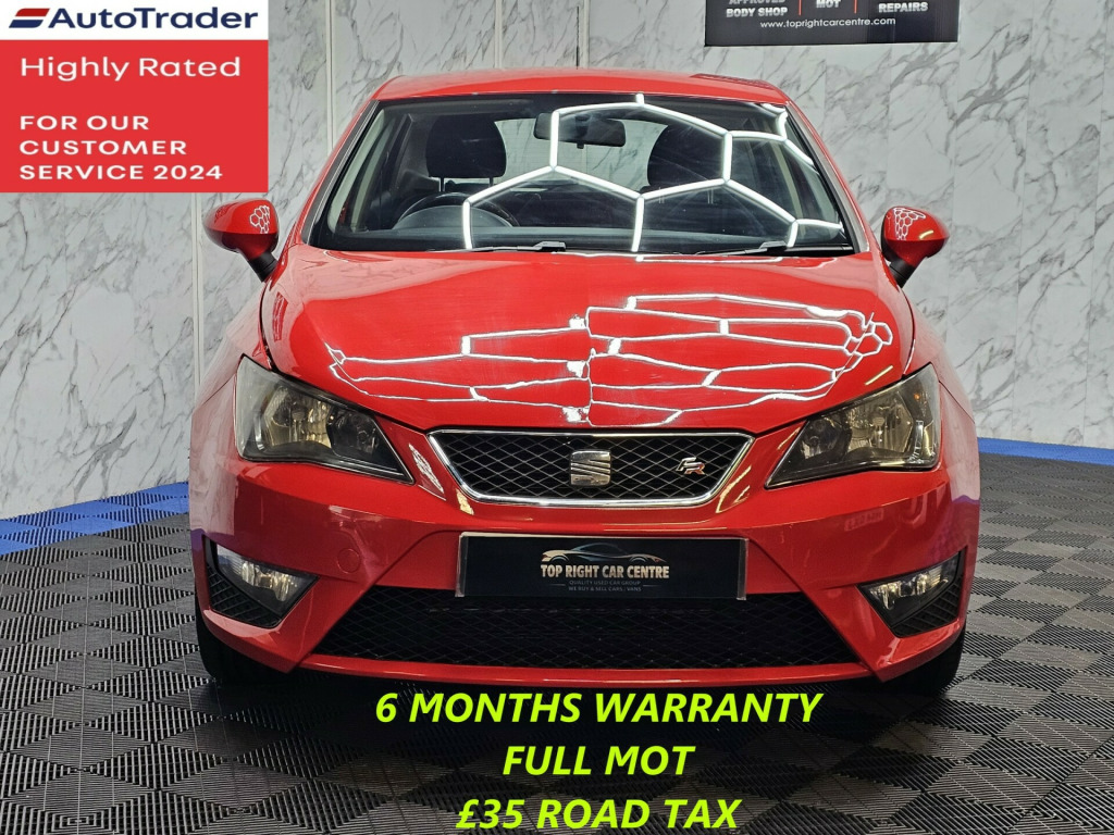 *** NIL DEPOSIT FINANCE AVAILABLE ***6 MONTHS WARRANTY AND BREAKDOWN COVER WITH THIS CAR.Low 35 pounds road tax per year.FULL SERVICE HISTORY. FULL MOT ON SALE. This stunning Seat Ibiza has been sourced directly from its Previous Private Owner. Every now and again, a car comes into stock at Top Right Car Centre, that you cannot help but fall in love with.Top Spec FR has electric windows. cruise control. Clean Car in red colour. Great comfortable family car. Well maintained body work and interior. Bullet fast response. Checked by our engineers. Professionally detailed. Good reliable runner. Price checked. We've just completed a full pre delivery inspection on the car to give you complete piece of mind. We just done the fresh service. Central locking key. Smooth gear box. Clean alloy wheels. Excellent condition tyres. Multimedia has RADIO CD mp3 Aux. Run with no fault strong reliable engine. Good fuel economy. First to see will buy it this well looked after car. cat N. p/x welcome. We do price our cars/van as competitively as possible and because of this we sell cars/vans very quickly. BE QUICK! MISS IT - MISS OUT. With so much variety, quality and highly rated award winner 2024, it is no wonder we are super busy all the time. Why Buy From Top Right Car Centre?Thoroughly Inspected Cars. All our vehicles are quality-checked and HPi verified, giving you peace of mind with every purchase.Award-Winning Family Business. As a trusted family-run business, we have earned awards for our customer service and expertise.Hand-Picked, Quality Cars. We carefully select only the finest cars with full service histories, so you can drive away with confidence.Test Driven for Assurance. Each car is personally test-driven by our team, ensuring it meets our high standards.Flexible Finance Options. We offer competitive and tailored finance solutions to suit your needs and budget.Looking to upgrade? We are happy to take your current car in part exchange.Your Perfect Car, Found. If we do not have what you are looking for, we will find it for you at no extra cost.Delivery Service. Need it delivered? We have got you covered.Please visit our website www.toprightcarcentre.com ights on' reminder warning buzzer, cruise control, digital clock, low fuel warning light, outside temperature gauge, seat logo boot release, service interval indicator, speed sensitive power steering, trip computer, sports suspension, auxiliary input socket, mp3 compatible radio/single cd player, steering column with mounted audio controls, body colour door handles, body colour door mirrors, body coloured bumpers, coming home headlight function, cornering front fog lights, electric headlight adjustment, electrically adjustable and heated door mirrors, exclusive fr front and rear bumpers, led tail lights, one touch electric front windows, rear wiper, roof antenna, twin exhaust pipes, 12v accessory power point in centre console, 3 cupholders, driver/passenger sunvisors and vanity mirrors, front door pockets, front seat and rear pockets, grab handles, height adjustable driver, height adjustable front/rear head restraints, height adjustable passenger seat, height/reach adjust steering wheel, illuminated boot, illuminated glovebox, interior centre roof light, isofix system on outer rear seats, leather steering wheel and gear knob, map and reading lights, pollen filter, split folding rear seats, sports seats, underfloor storage compartments in luggage area, 3 point seatbelts on all 3 rear seats, abs, child locks on rear doors, driver and passenger airbags, esp+eba+edl, front passenger airbag deactivation, front side airbags, seatbelt warning, 2 folding remote keys with window open/close function, deadlocks, immobiliser, remote central locking, volumetric alarm with back up horn, 16'' Alloys