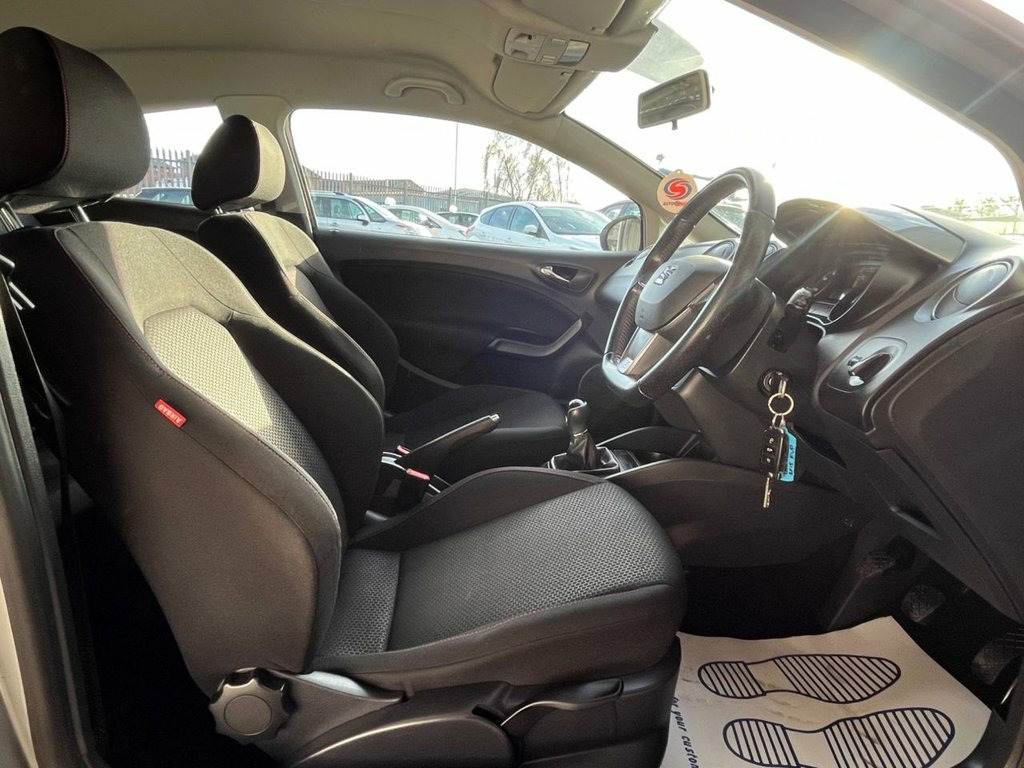 Moto Vation Car Sales are proud to offer this Seat Ibiza in a desirable colour with FR interior. Low miles for the age- 81K and with only one previous owner from new, it is clear it has been loved. Would make a great first time car with its low running and insurance costs. Supplied with a Full Years MOT and Full Service History attached with 9 stamps- last in our Service Centre in 12/25! Bosting a great specification including a Flat Bottom FR Multi Functional Steering Wheel, AUX, USB, Sat Nav, Bluetooth, 17" Alloy Wheels, Cruise Control, Remote Central Locking and Voice Command. Only £35 annual tax! Please confirm with a Sales Executive how many keys this vehicle comes with. All of our vehicles come with a 3 months Nationwide warranty and a 12 months basic AA breakdown cover. Please read our reviews! Please note- the above vehicle specification is confirmed and correct. The vehicle specification listed elsewhere may sometimes be inaccurate so please check with the Sales team when enquiring to clarify this prior to purchase. Ice Silver, 17in Alloy Wheels - Tagus, 10.7-litre Glovebox with Light, 12 Volt Power Supply in Centre Console, 16in Alloy Wheels - Cartago, AUX-In Port, Active Front Head Restraints, Air Conditioning, Airbags - Driver, Airbags - Front Passenger, Airbags - Head and Thorax, Alarm - Volumetric, Anti-Lock Braking System - ABS, Anti-Theft Roof Antenna, Automatic Warning Lights, Bluetooth Audio Streaming, Bluetooth Phone Connection, Body-Coloured Door Handles, Body-Coloured Door Mirrors, Bumpers - Exclusive FR Front and Rear, Cornering Function, Cruise Control, Cupholders - x3, Daytime Running Lights, Deadlocks, Dust and Pollen Filter, EBA - Electronic Brake Assist, Easy Entry, Eco Trainer, Electr