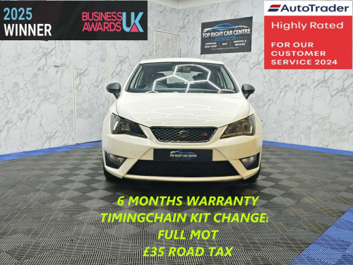 *** NIL DEPOSIT FINANCE AVAILABLE *** 6 MONTHS WARRANTY AND BREAKDOWN COVER WITH THIS CAR.Low 35 pounds road tax per year. We just replaced the Timing chain kit.FULL SERVICE HISTORY. FULL MOT ON SALE. We just done the fresh service.This stunning SEAT Ibiza has been sourced directly from its Previous Private Owner. Every now and again, a car comes into stock at Top Right Car Centre, that you cannot help but fall in love with.Top Spec FR Sport has all electric windows, cruise control. Clean Car in White colour. Great comfortable family car. Well maintained body work and interior. Bullet fast response. Checked by our engineers. Professionally detailed. Good reliable runner. Price checked. We've just completed a full pre delivery inspection on the car to give you complete piece of mind. central locking key. Smooth gear box. Excellent condition tyres. Multimedia has RADIO AUX cd mp3. Run with no fault strong reliable engine. Good fuel economy. First to see will buy it this well looked after car. cat N. p/x welcome. We do price our cars/van as competitively as possible and because of this we sell cars/vans very quickly. BE QUICK! MISS IT - MISS OUT. With so much variety, quality and highly rated award winner 2024, it is no wonder we are super busy all the time. Why Buy From Top Right Car Centre?Thoroughly Inspected Cars. All our vehicles are quality-checked and HPi verified, giving you peace of mind with every purchase.Award-Winning Family Business. As a trusted family-run business, we have earned awards for our customer service and expertise.Hand-Picked, Quality Cars. We carefully select only the finest cars with full service histories, so you can drive away with confidence.Test Driven for Assurance. Each car is personally test-driven by our team, ensuring it meets our high standards.Delivery Service. Need it delivered? We have got you covered.Please visit our website www.toprightcarcentre.com .7-litre glovebox with light, active front head restraints, air conditioning, cupholders - x3, dust and pollen filter, head restraints - height adjustable front, height adjustable passenger seat with easy entry, height and reach adjustable steering wheel, height-adjustable drivers seat, illuminated boot, illuminated glovebox, leather gear knob, leather steering wheel, roof light with map-reading lights, seats - pockets on front backrest, seats - split folding rear, seats - sports fr, steering wheel - audio controls, storage - front door, sunvisors with passengers vanity mirror, two height-adjustable rear headrests, 12 volt power supply in centre console, aux-in port, anti-theft roof antenna, four speakers, mp3 compatible cd player, seat portable system, 16in alloy wheels - cartago, black door handles, black door mirrors, body-coloured door handles, bumpers - exclusive fr front and rear, cornering function, electric windows - front with one-touch and anti-squeeze, electrically adjustable and heated door mirrors, emergency tyre repair kit, exclusive fr styling details, exhaust pipe - twin, locking wheel bolts, seat logo tailgate release, tinted windows, airbags - driver, airbags - front passenger, airbags - head and thorax, alarm - volumetric with tow away protection (tilt sensor), anti-lock braking system - abs, automatic warning lights, deadlocks, eba - electronic brake assist, electronic stability control - esc, front passenger airbag de-activation, isofix points with top tether on rear seats, rear wiper, remote central locking, seatbelt reminder - front, cruise control, electro-mechanical power steering - speed-sensitive, electronic differential lock system - xds, gearshift indicator, low fuel warning light, sports suspension, trip computer, daytime running lights, front fog lights with cornering function, headlights - coming home function, headlights - electric adjustment, led rear light clusters, lights left on warning buzzer