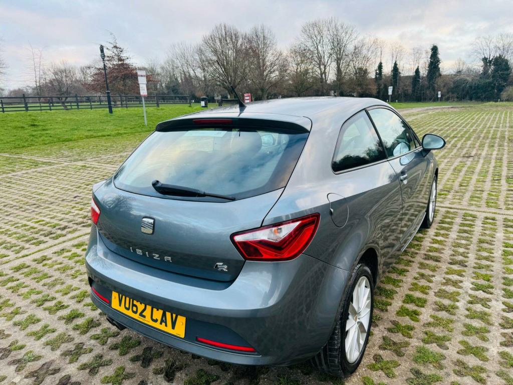 SEAT Ibiza 1.2 TSI FR Sport Coupe Euro 5 (3dr)Fuel Type: PetrolTransmission: ManualColour: GreyOwners: 3Body Type: 3-Door CoupeHPI Status: ClearULEZ Compliant / ULEZ FreeKey Features & SpecificationFR Sport SpecificationAlloy WheelsAir ConditioningLow Insurance GroupVery Economical to RunCondition & DriveThis SEAT Ibiza FR Sport Coupe has been very well maintained and looks and drives brilliantly.The 1.2 TSI engine is smooth, responsive, and economical, the gearbox and suspension operate perfectly, and the car offers a comfortable and sporty drive. Clean interior and tidy exterior. Mechanically perfect - just buy and drive.Warranted MileageMechanically Sound Throughout3 Months Warranty IncludedFRESH SERVICE FRESH MOT FREE BREAKDOWN COVERNATIONWIDE DELIVERY AVAILABLEPart Exchange WelcomeView by Appointment OnlySummaryA sporty, reliable, and economical SEAT Ibiza FR Sport Coupe, perfect for city driving or enthusiasts and fully ULEZ compliant.First to see will buy. .7-litre glovebox with light, 12 volt power supply in centre console, 16in alloy wheels - cartago, aux-in port, active front head restraints, air conditioning, airbags - driver, airbags - front passenger, airbags - head and thorax, alarm - volumetric with tow away protection (tilt sensor), anti-lock braking system - abs, anti-theft roof antenna, automatic warning lights, black door handles, black door mirrors, body-coloured door handles, bumpers - exclusive fr front and rear, cornering function, cruise control, cupholders - x3, daytime running lights, deadlocks, dust and pollen filter, eba - electronic brake assist, electric windows - front with one-touch and anti-squeeze, electrically adjustable and heated door mirrors, electro-mechanical power steering - speed-sensitive, electronic differential lock system - xds, electronic stability control - esc, emergency tyre repair kit, exclusive fr styling details, exhaust pipe - twin, four speakers, front fog lights with cornering function, front passenger airbag de-activation, gearshift indicator, head restraints - height adjustable front, headlights - coming home function, headlights - electric adjustment, height adjustable passenger seat with easy entry, height and reach adjustable steering wheel, height-adjustable drivers seat, isofix points with top tether on rear seats, illuminated boot, illuminated glovebox, led rear light clusters, leather gear knob, leather steering wheel, lights left on warning buzzer, locking wheel bolts, low fuel warning light, mp3 compatible cd player, rear wiper, remote central locking, roof light with map-reading lights, seat logo tailgate release, seat portable system, seatbelt reminder - front, seats - pockets on front backrest, seats - split folding rear, seats - sports fr, sports suspension, steering wheel - audio controls, storage - front door, sunvisors with passengers vanity mirror, tinted windows, trip computer, two height-adjustable rear headrests